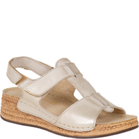 Sandały Syrena SST 995 beżowe - skórzane, na rzep, 4 cm koturna