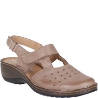 Sandały Syrena SST 995 beżowe - skórzane, na rzep, 4 cm koturna