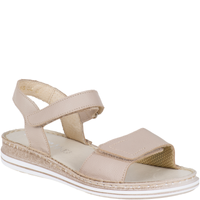 Sandały Syrena SST 995 beżowe - skórzane, na rzep, 4 cm koturna
