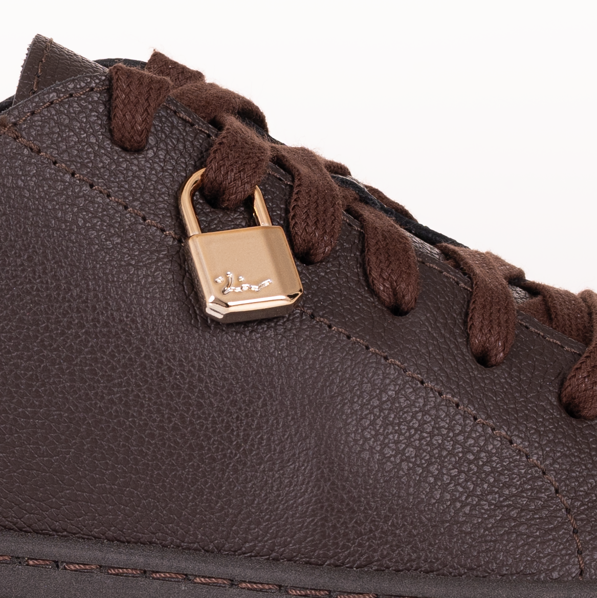 Półbuty damskie Syrena SLA 1145/298 w kolorze czekoladowym to idealny wybór dla kobiet, które poszukują wygodnych, stabilnych i stylowych butów na co dzień. Naturalna skóra licowa, sznurowanie z ozdobną zawieszką oraz 3,5-centymetrowa podeszwa sprawiają, że model ten łączy w sobie elegancję i komfort noszenia.