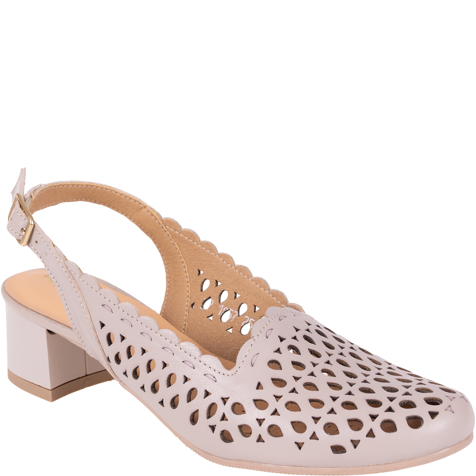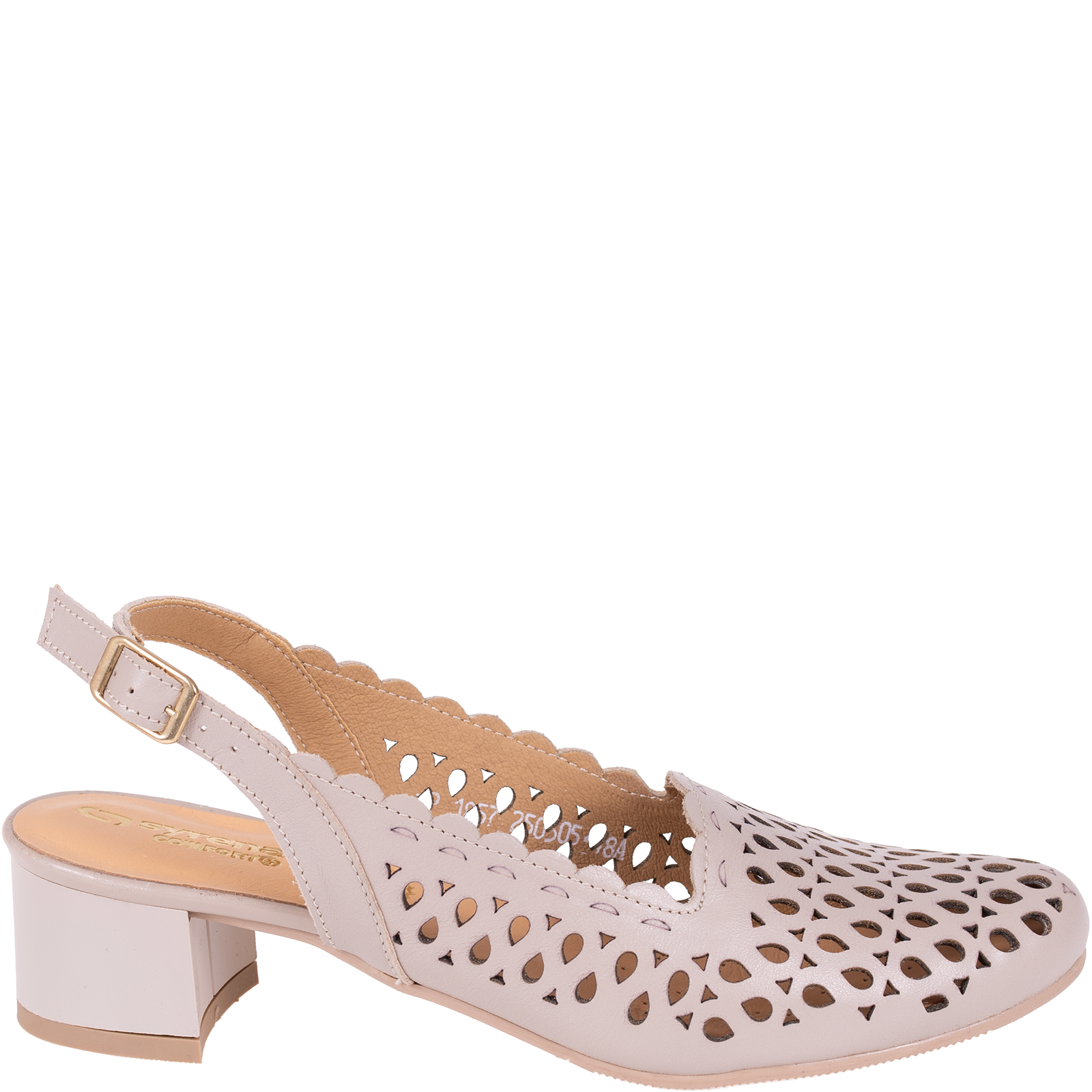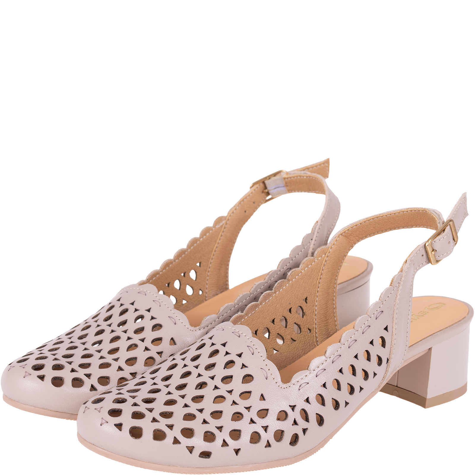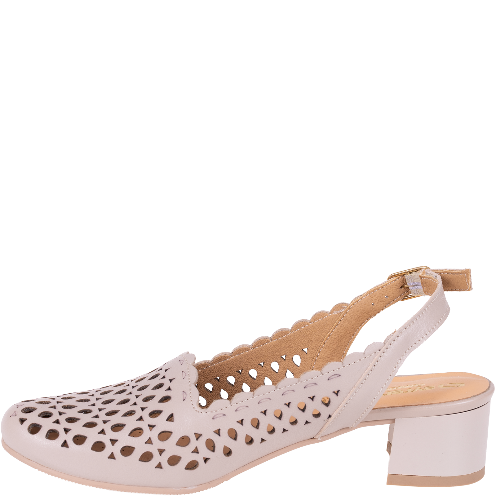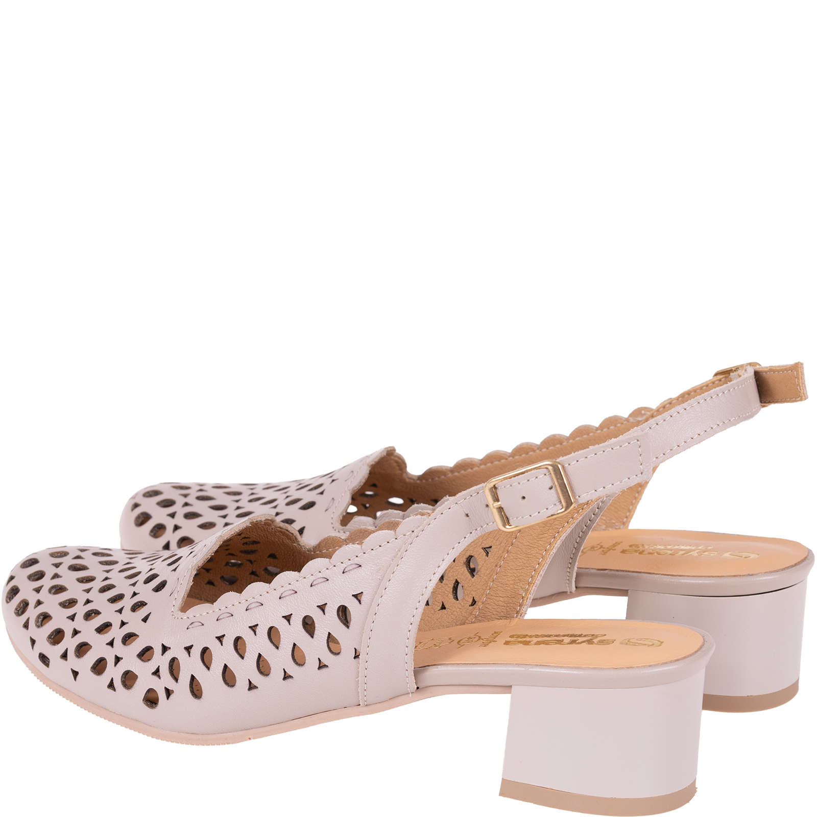 Ażurowe sandały skórzane Syrena SGO 1857 beż, obcas 4 cm