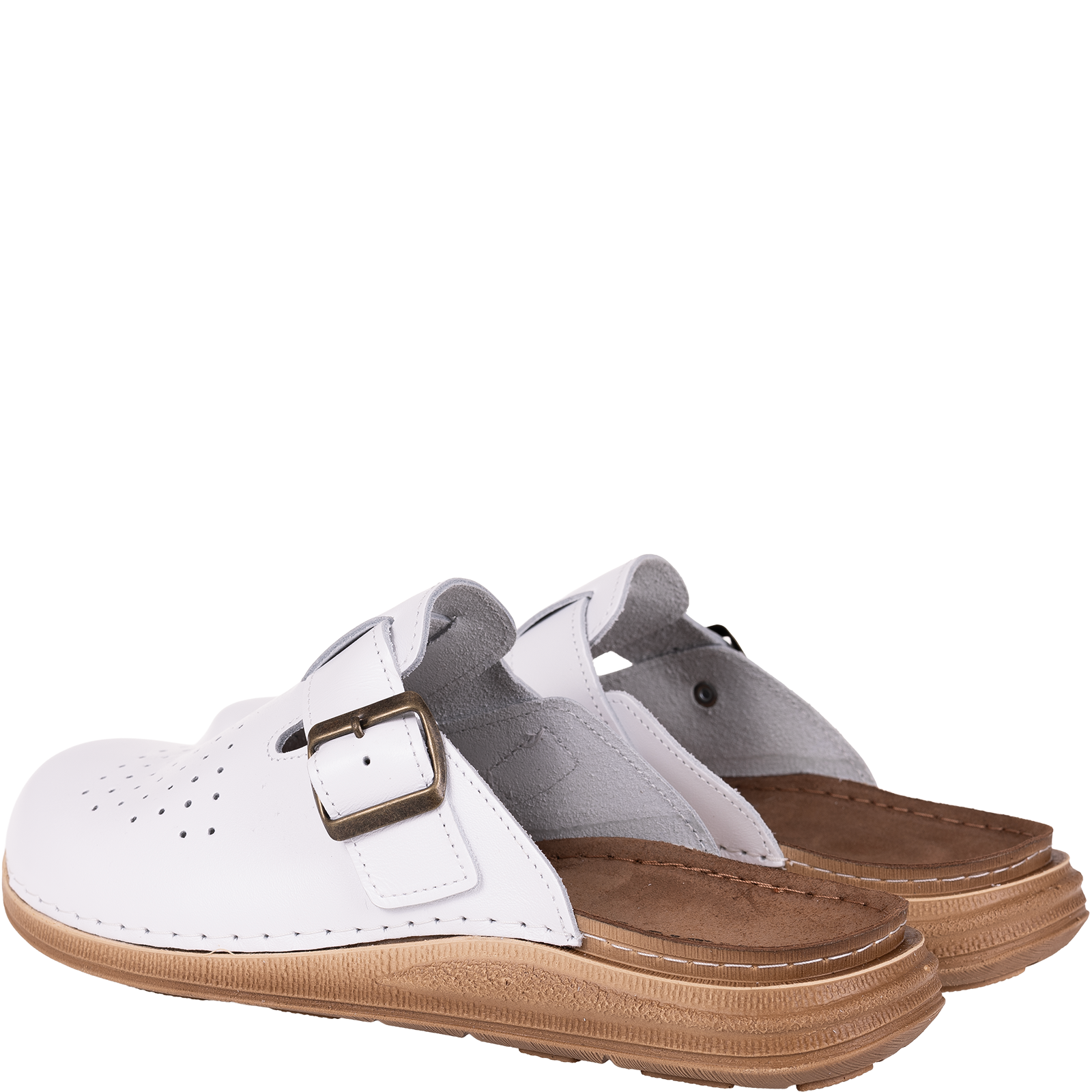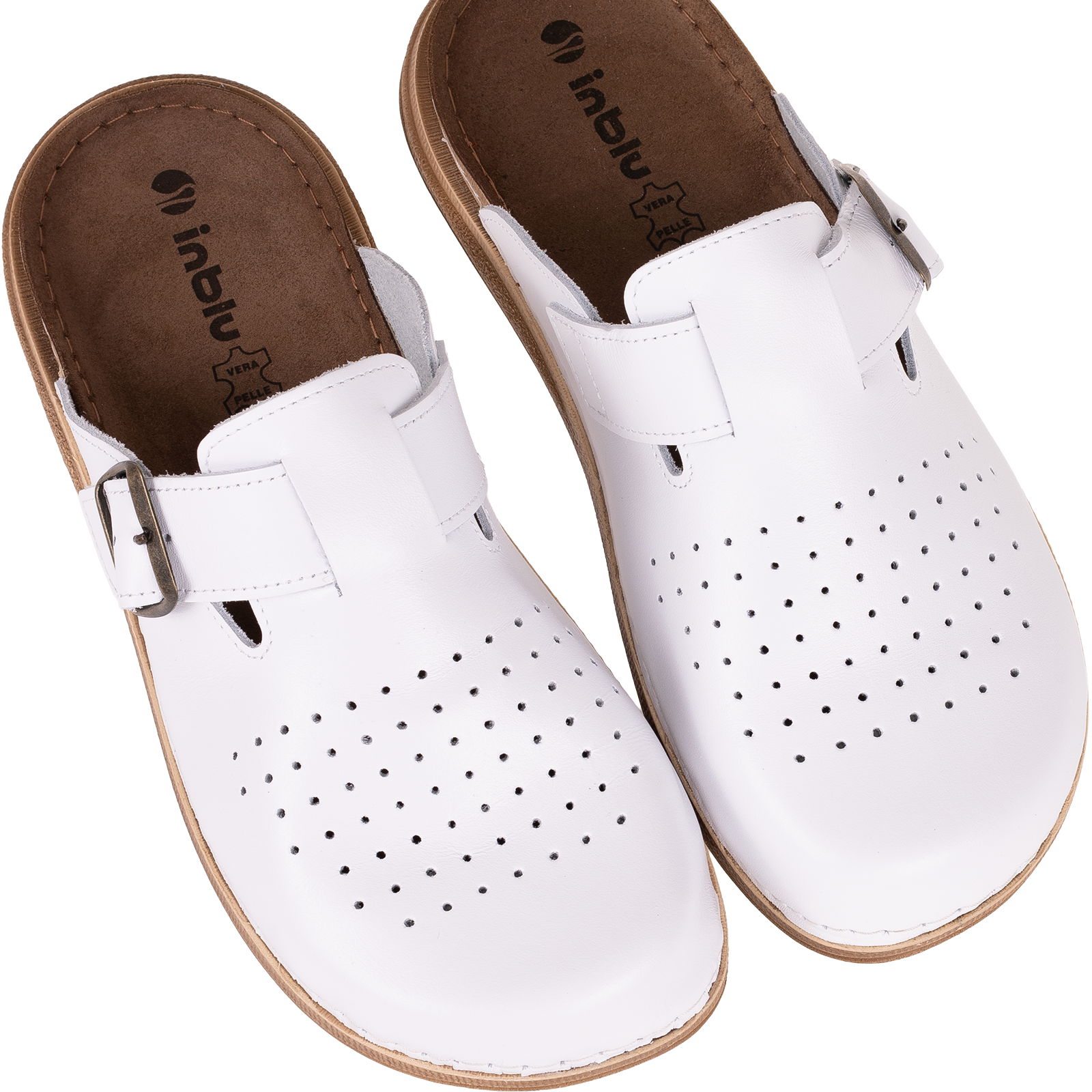 Białe skórzane klapki męskie Inblu VE0002KU sanitarne z klamrą