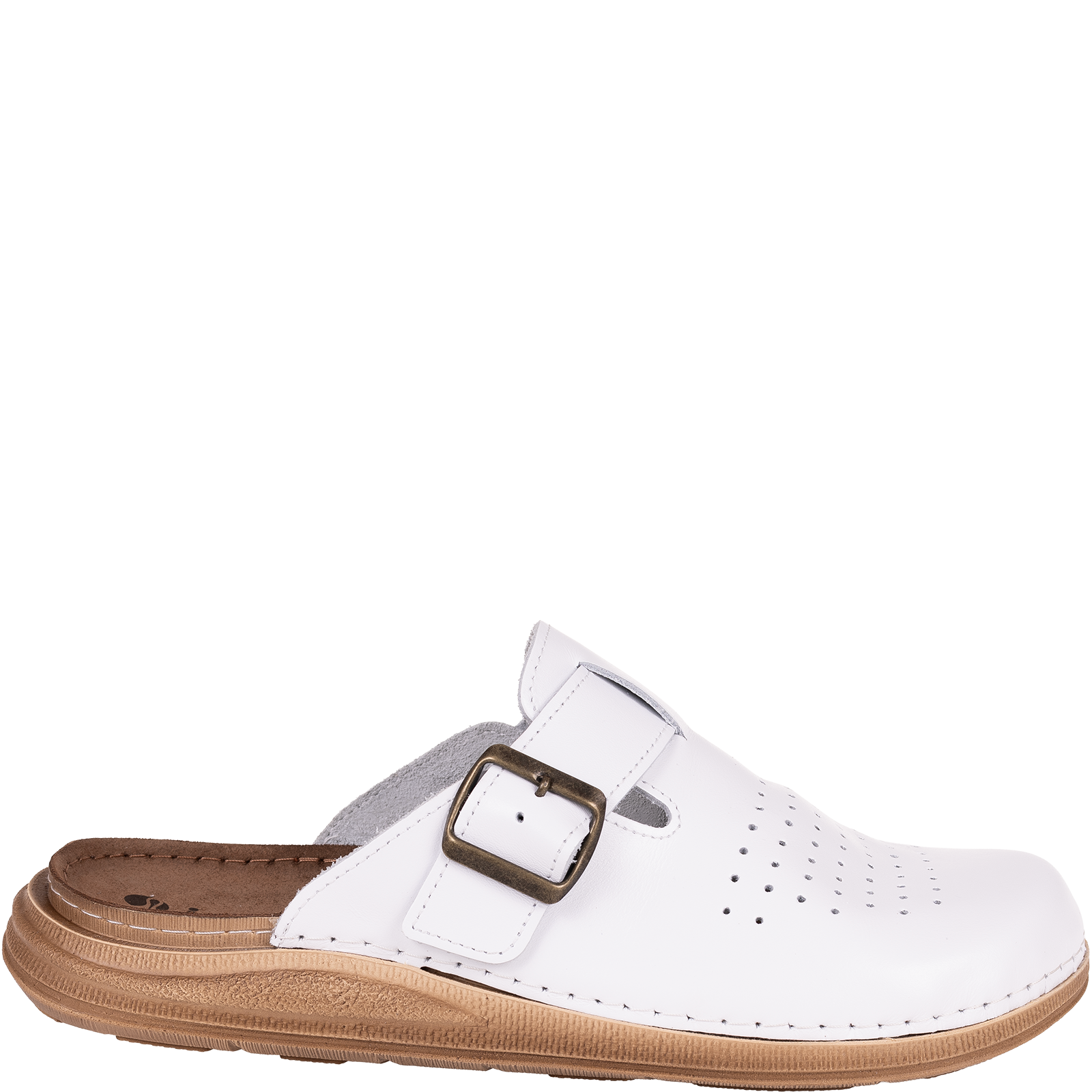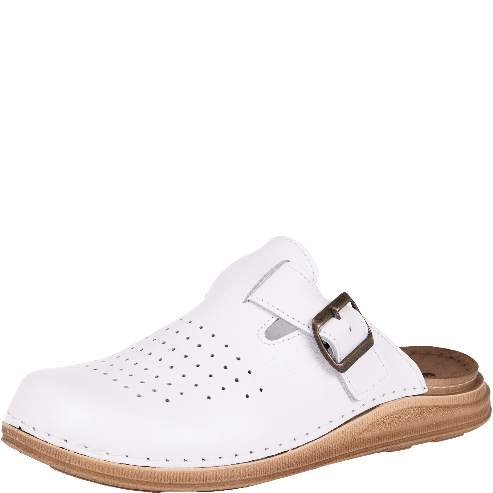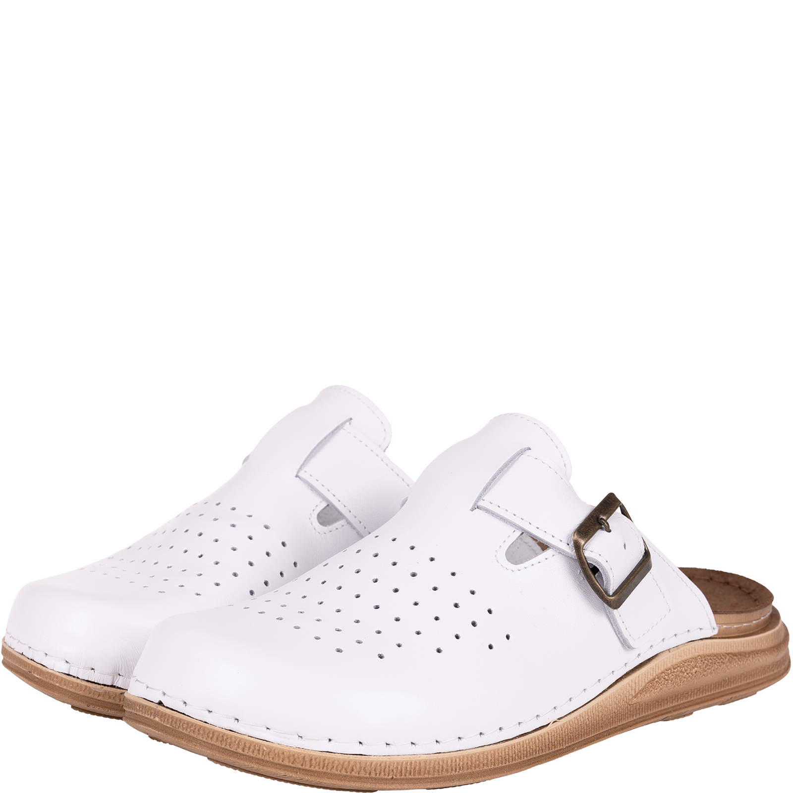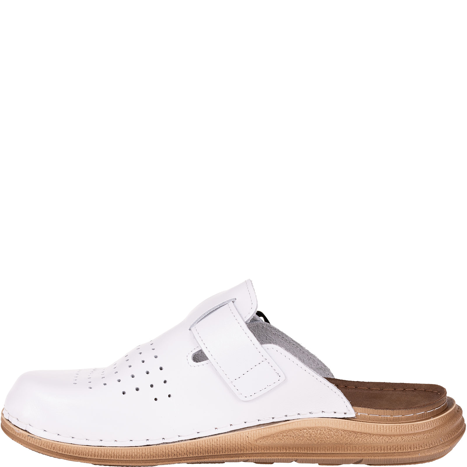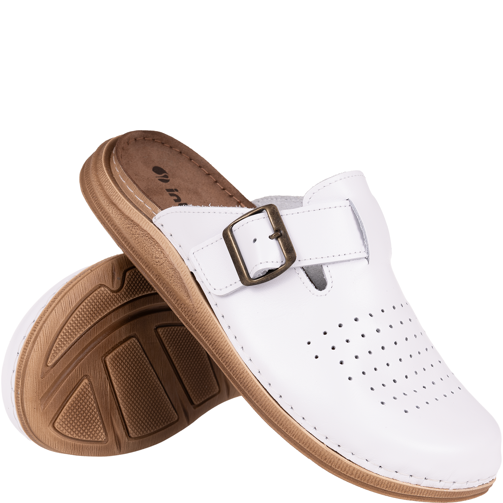 Klapki męskie Inblu VE0002KU to połączenie elegancji, funkcjonalności i wygody. Wykonane z wysokogatunkowej skóry naturalnej licowej, gwarantują trwałość oraz komfort użytkowania przez cały dzień. Ich uniwersalny biały kolor sprawia, że idealnie sprawdzą się jako obuwie sanitarne do pracy lub klapki codzienne do użytku domowego.