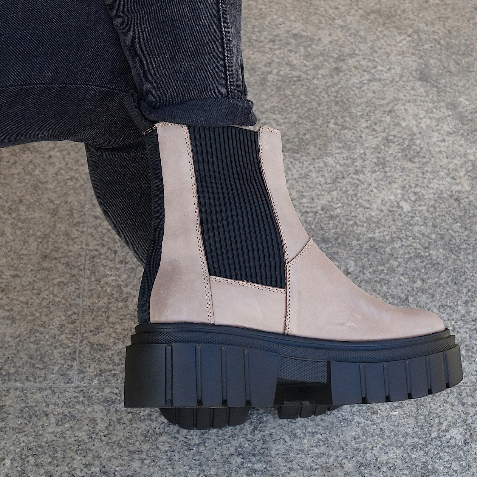 Z naszych najnowszych trendów są piękne botki damskie wykonane w 100 % z najlepszej jakości miękkiej skóry naturalnej licowej w kolorze cappuccino. Obuwie pięknie prezentuje się na nodze dzięki idealnie dobranym kolorom, który nadaje butom jeszcze więcej charakteru, oraz pasują niemal do wszystkiego. Mimo swojego modnego, grubego spodu buty są bardzo lekkie, porządnie wykonane. Idealne do codziennych stylizacji jak również na wyjątkowe wyjścia, z nimi stworzysz udany zestaw.
