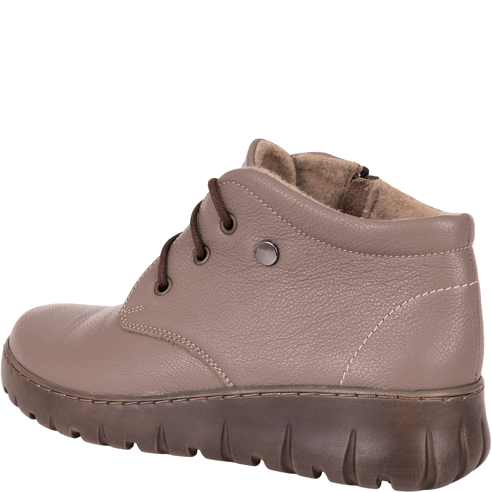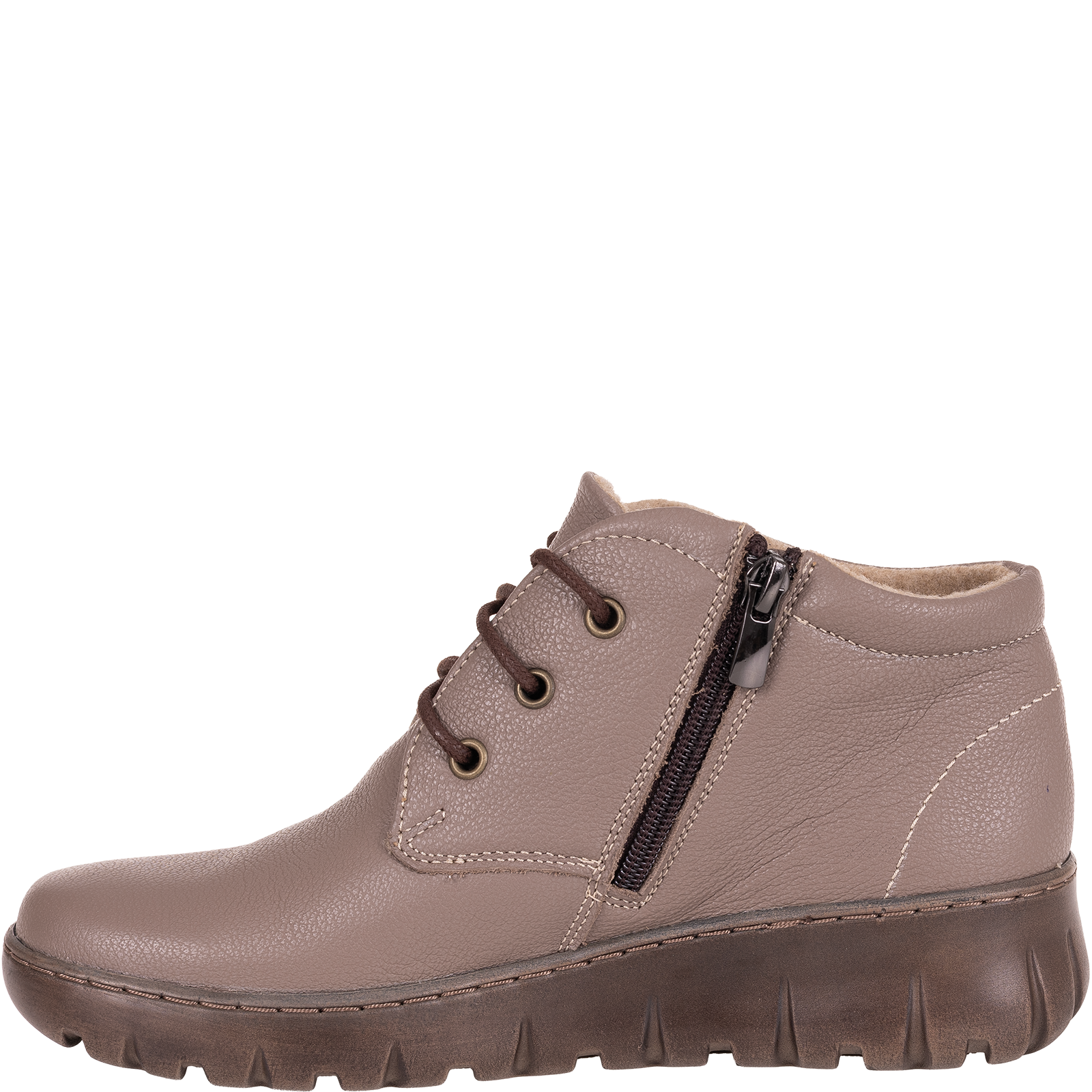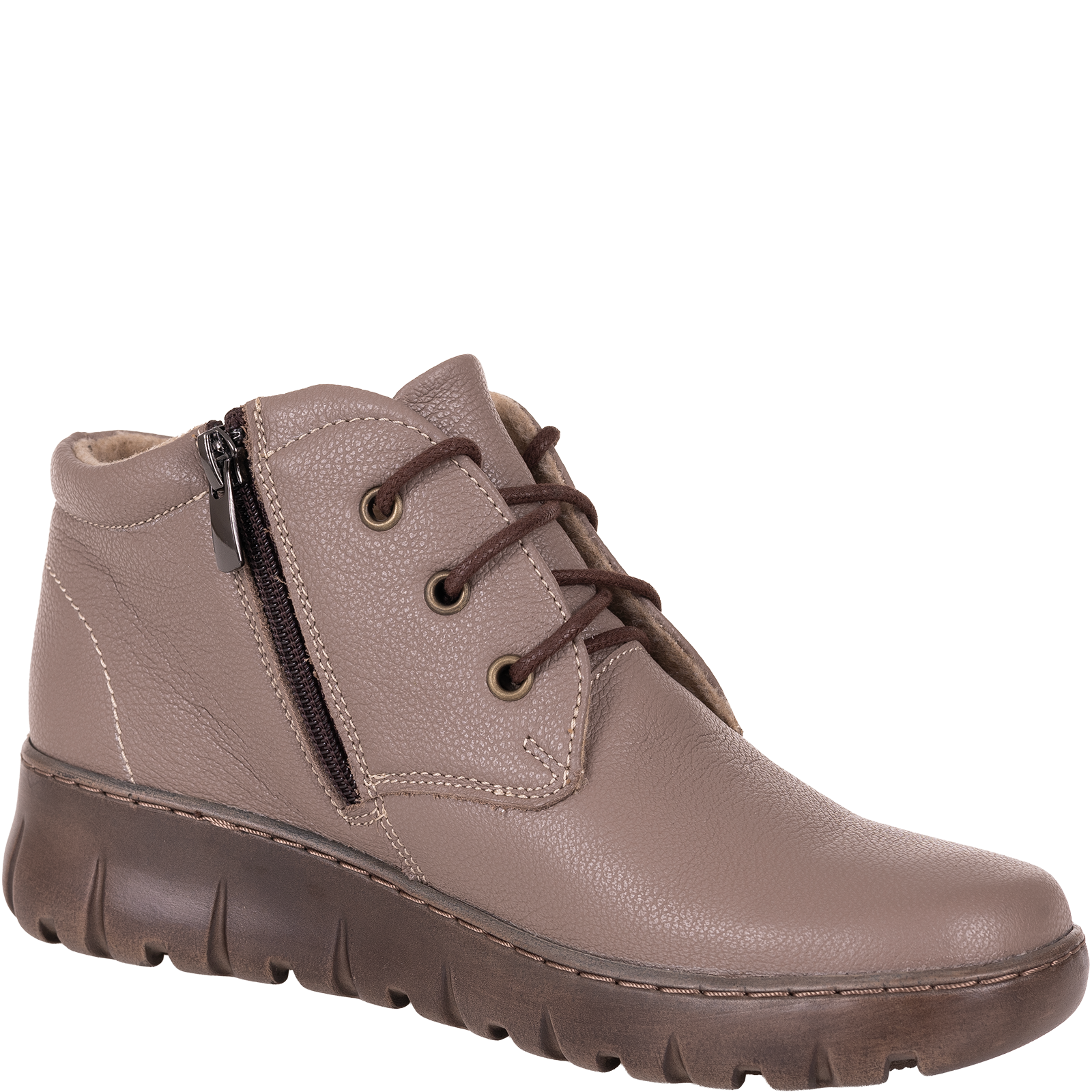 Buty posiadają podwójny system zapięcia - tradycyjne sznurowanie pozwala dopasować obuwie do kształtu stopy, a boczny zamek błyskawiczny umożliwia szybkie zakładanie i zdejmowanie. To praktyczne rozwiązanie dla kobiet ceniących wygodę i funkcjonalność w codziennym użytkowaniu.