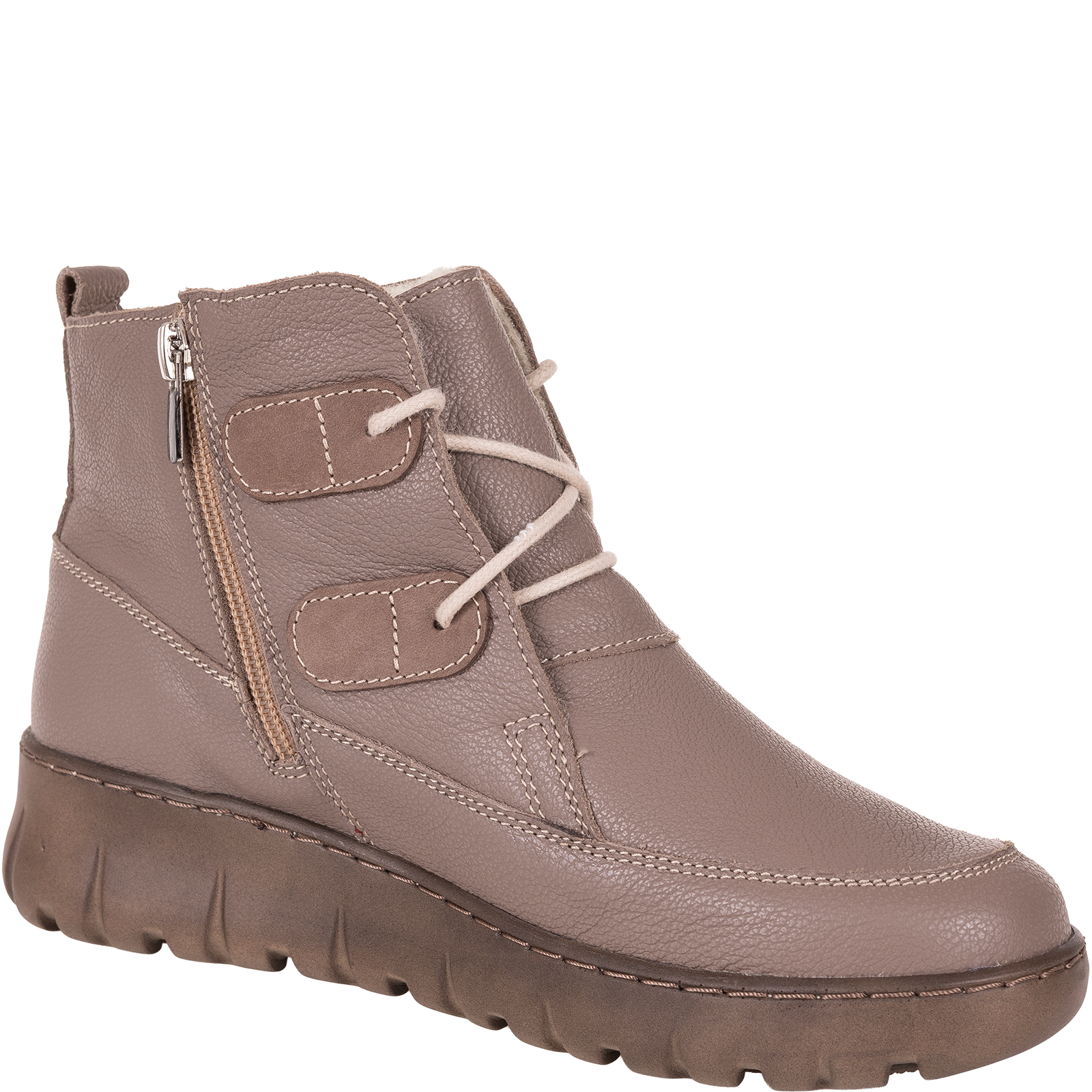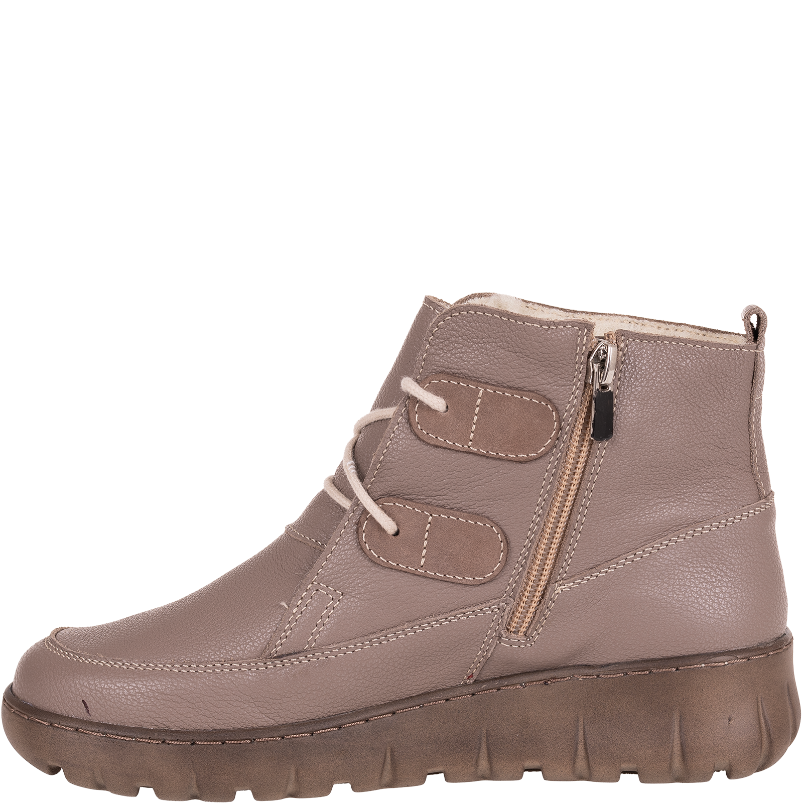 Buty posiadają podwójny system zapięcia - tradycyjne sznurowanie pozwala dopasować obuwie do kształtu stopy, a boczny zamek błyskawiczny umożliwia szybkie zakładanie i zdejmowanie. To praktyczne rozwiązanie dla kobiet ceniących wygodę i funkcjonalność w codziennym użytkowaniu.