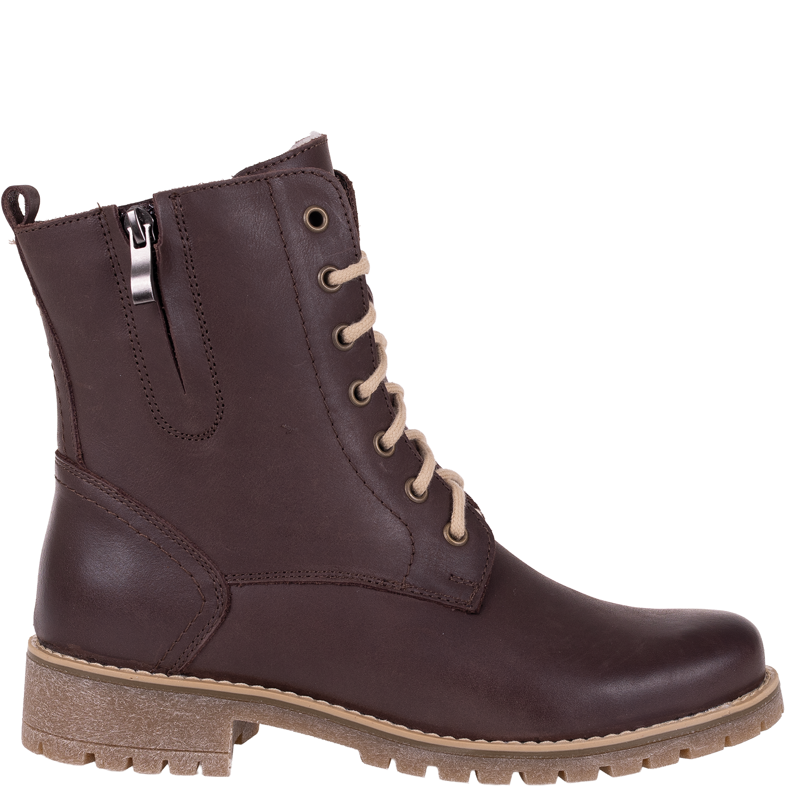 Cholewkę wykonano z wysokogatunkowej skóry naturalnej licowej, która łączy elegancki wygląd z dużą odpornością na użytkowanie. Produkcja z wykorzystaniem polskich materiałów to gwarancja jakości, z której znana jest marka Syrena.
