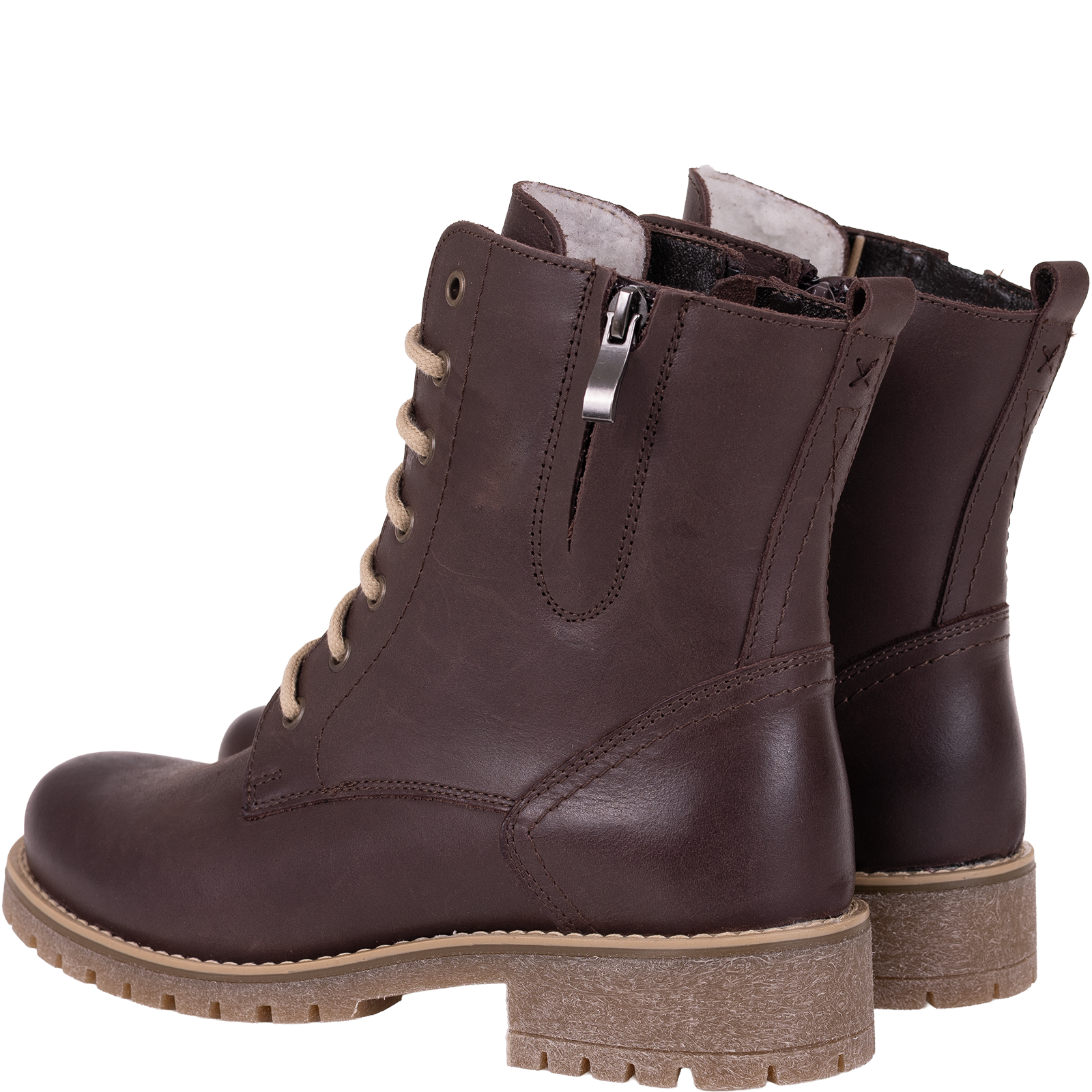 Botki damskie Syrena SST 4038 brązowe skórzane ocieplane misiem