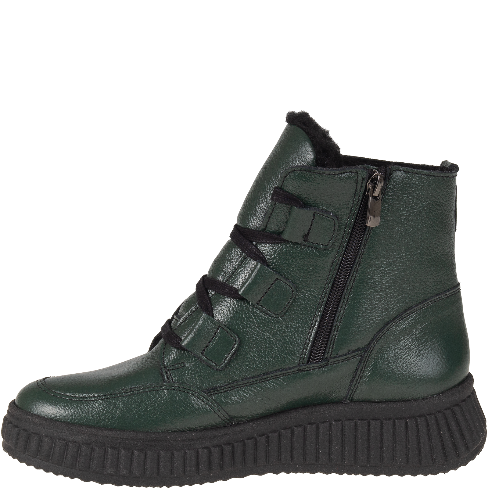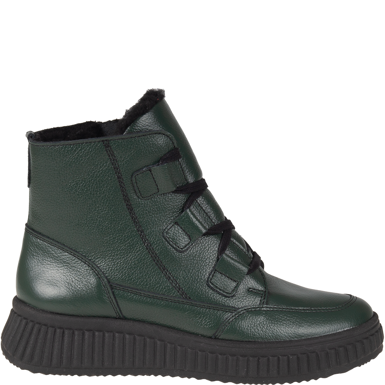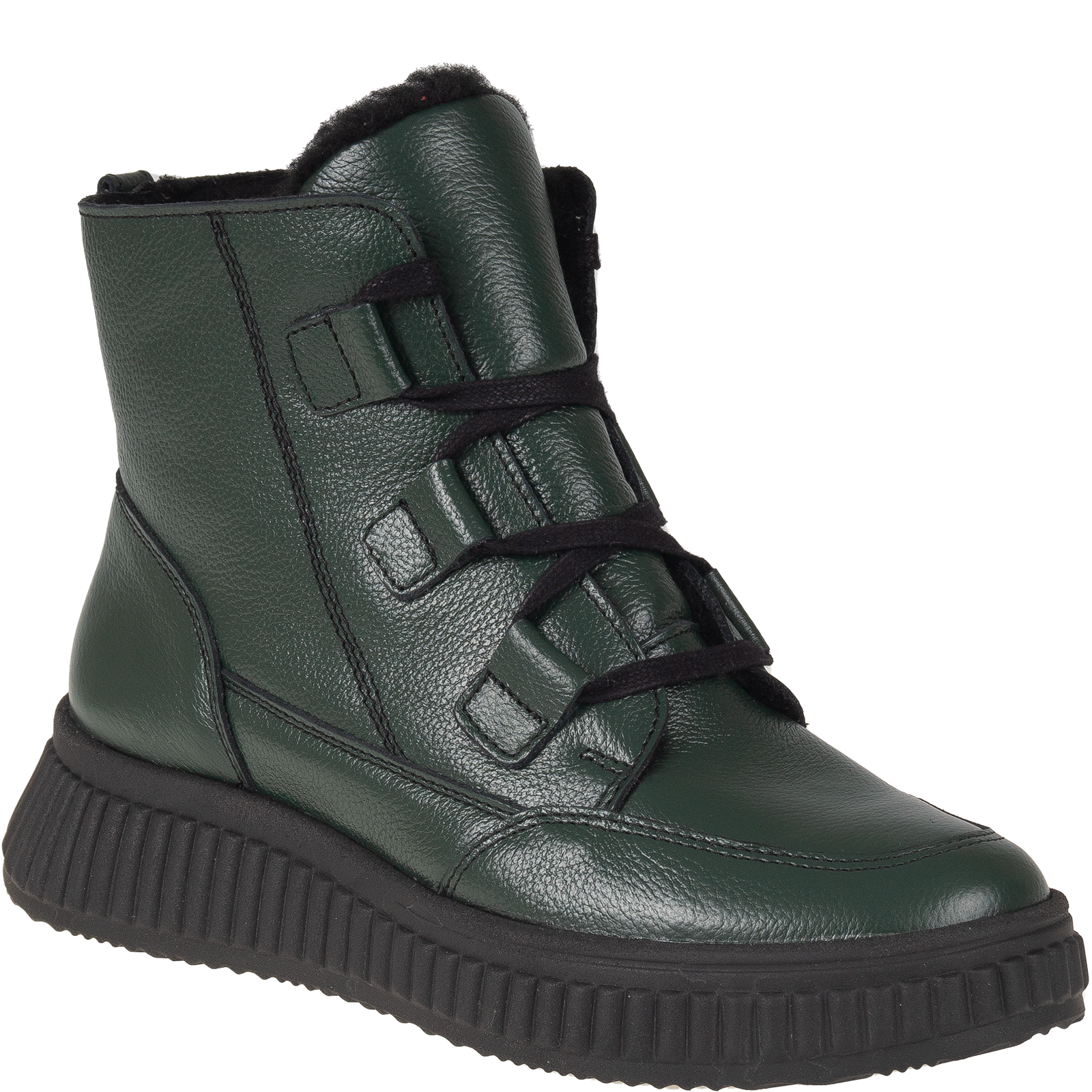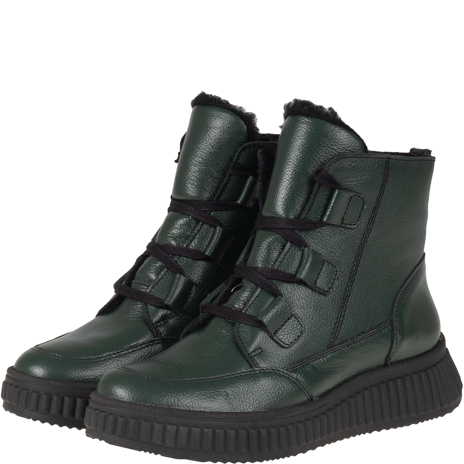 Botki damskie Syrena SH 559 to połączenie wygody i stylu. Wykonane z wysokiej jakości skóry naturalnej w odcieniu zielonym, są doskonałym wyborem na zimowe dni. Wnętrze butów jest ocieplone naturalną wełną, co zapewnia ciepło i komfort noszenia. Dodatkowe zapięcie na suwak ułatwia szybkie zakładanie, a sznurowadła pozwalają idealnie dopasować buty do stopy.