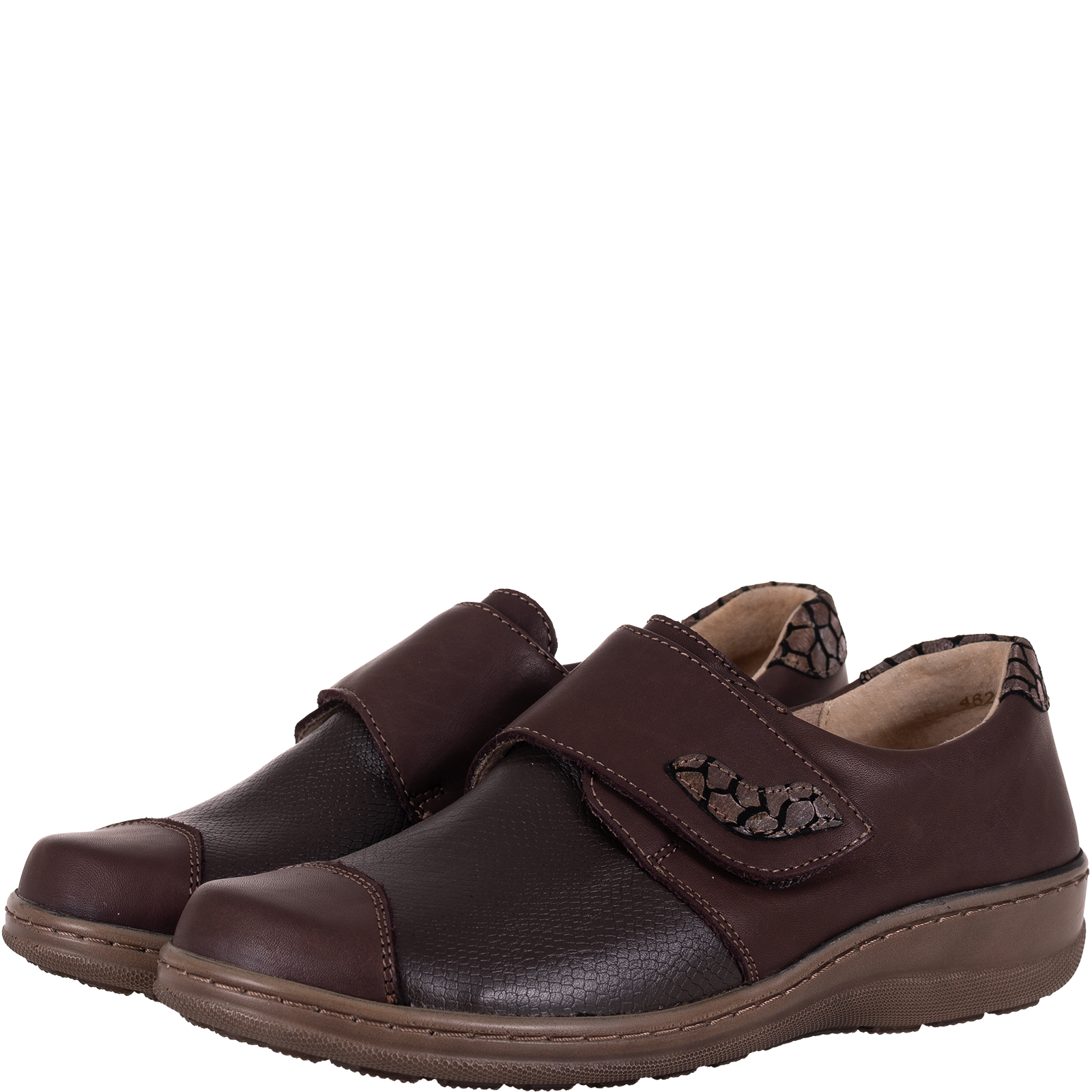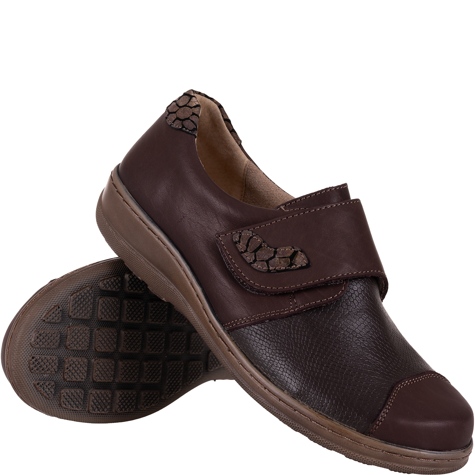Półbuty Syrena SH 462 wyposażono w zapięcie na rzepy, które ułatwia szybkie zakładanie i zdejmowanie. To rozwiązanie szczególnie docenią osoby ceniące praktyczność oraz pewne dopasowanie buta do stopy. Regulacja na rzepy pozwala także na noszenie obuwia przez panie z szerszą stopą lub delikatnymi dolegliwościami, takimi jak haluksy.