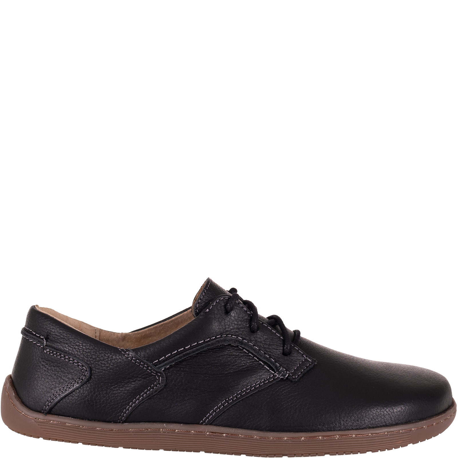 Model został zaprojektowany zgodnie z zasadami obuwia barefoot. Oznacza to pełną swobodę pracy stopy, jej naturalne ułożenie oraz dostosowanie do ruchu. Brak podwyższenia pięty (zero drop) wspiera prawidłową postawę, a cienka i elastyczna podeszwa pobudza receptory odpowiedzialne za równowagę i stabilizację.