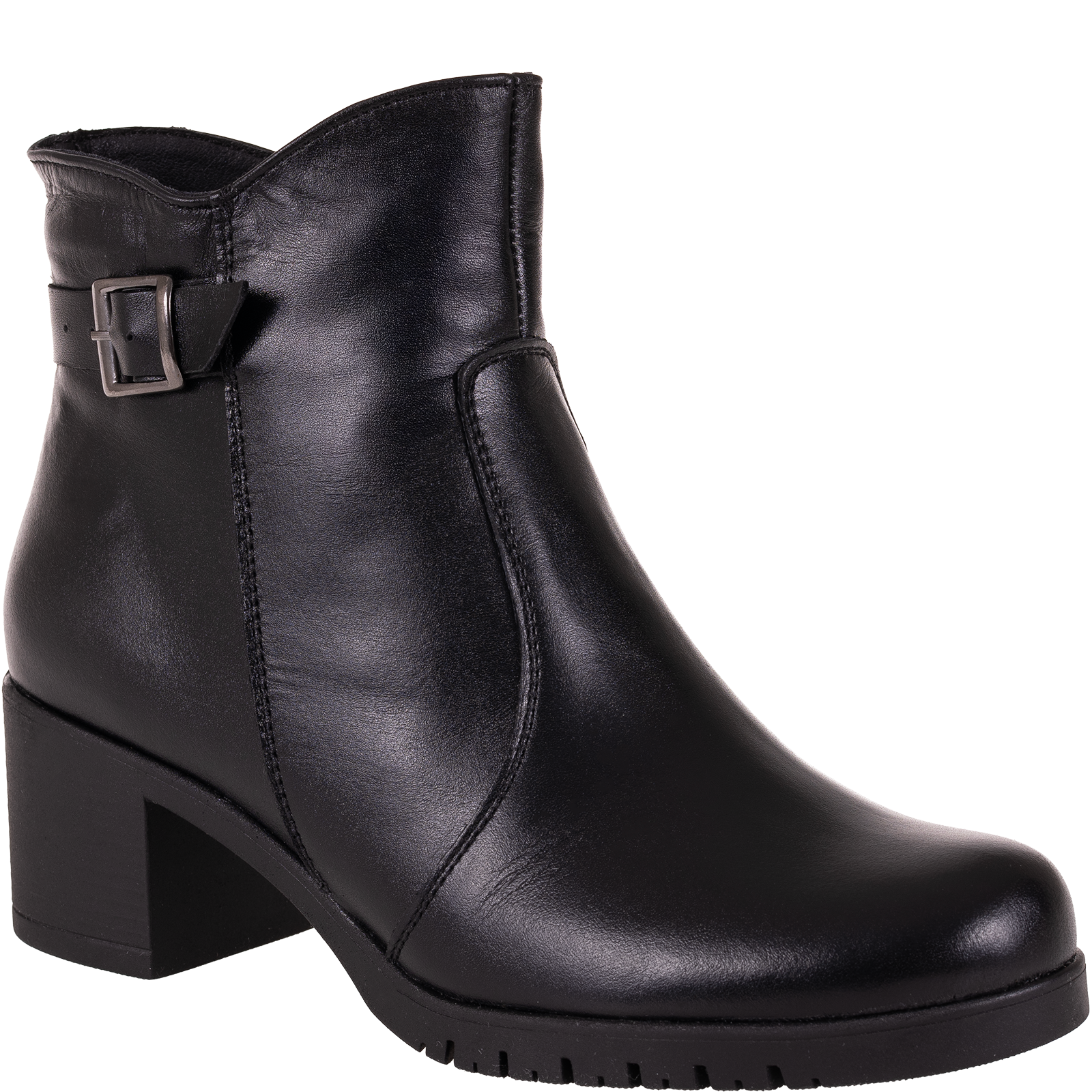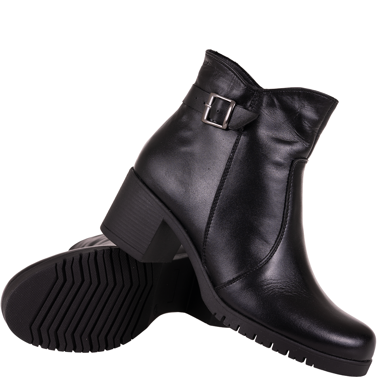 Czarne botki damskie skórzane na obcasie - Syrena SE 0632