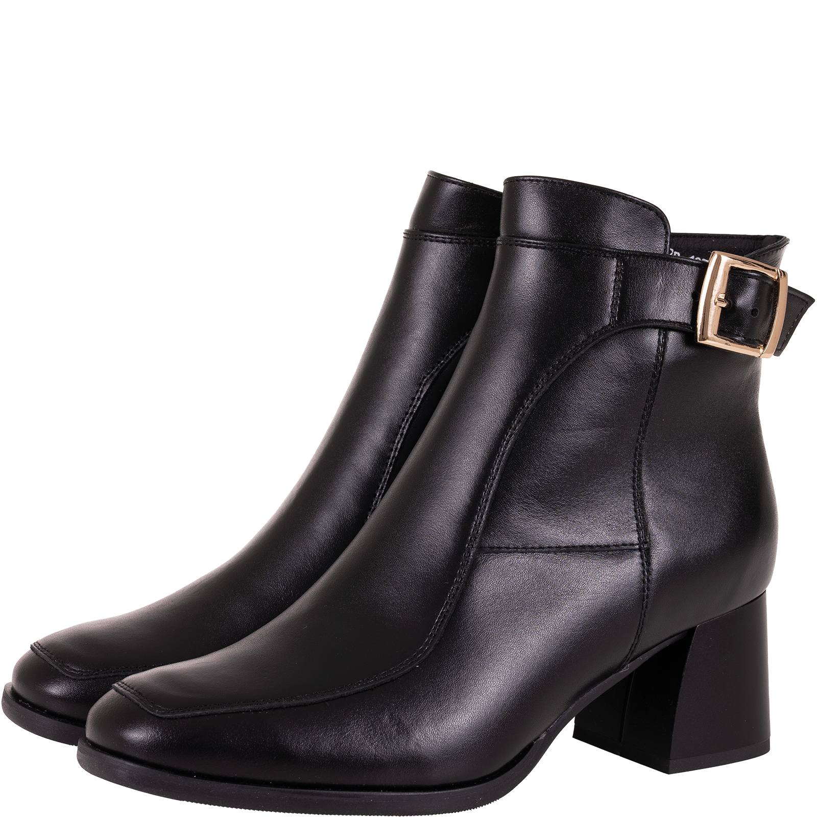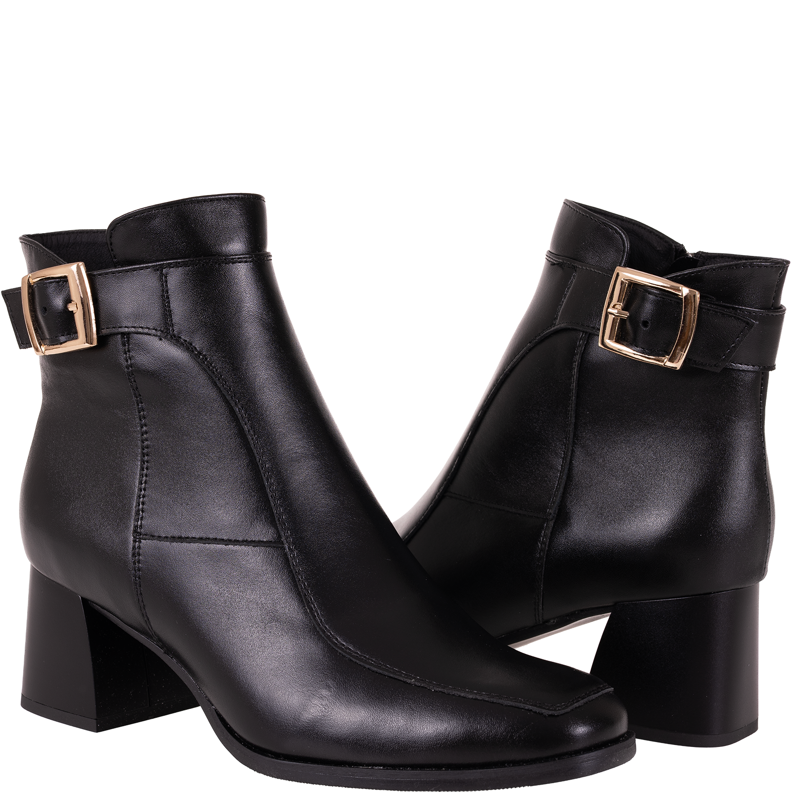 Czarne botki damskie skórzane na obcasie - Syrena SGO 1978