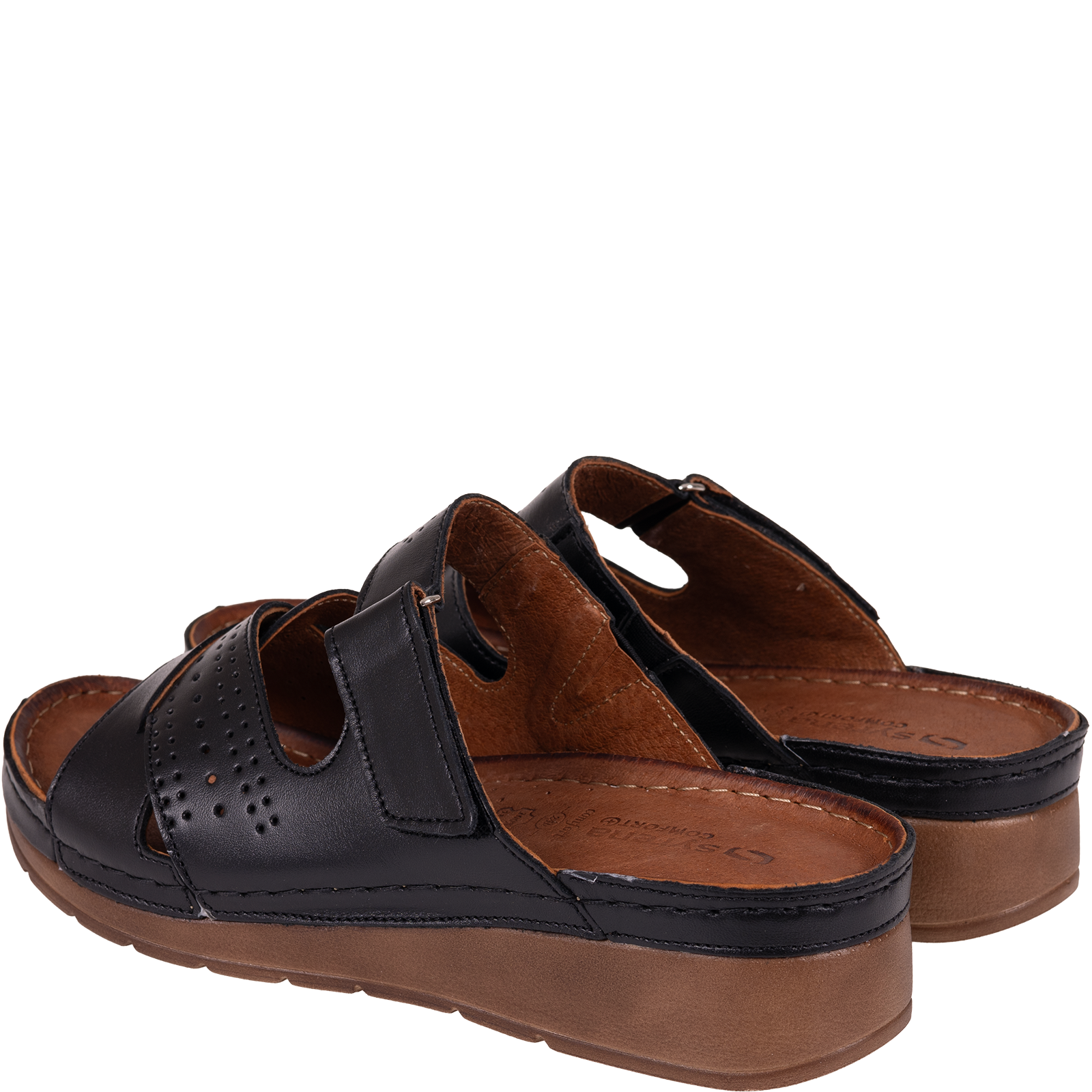 Syrena model SST 923 - czarne klapki to połączenie stylowego designu z niezrównanym komfortem noszenia. Wykonane z wysokiej jakości skóry naturalnej, wyłożone miękką skórzaną wyściółką, z wygodną skórzaną wkładką na stabilnej koturnie, te klapki spełnią oczekiwania nawet najbardziej wymagających klientek. Idealne na co dzień i na specjalne okazje. Wybierz Syrena model SST 923, jeśli cenisz sobie wyrafinowany wygląd i wygodę w jednym!