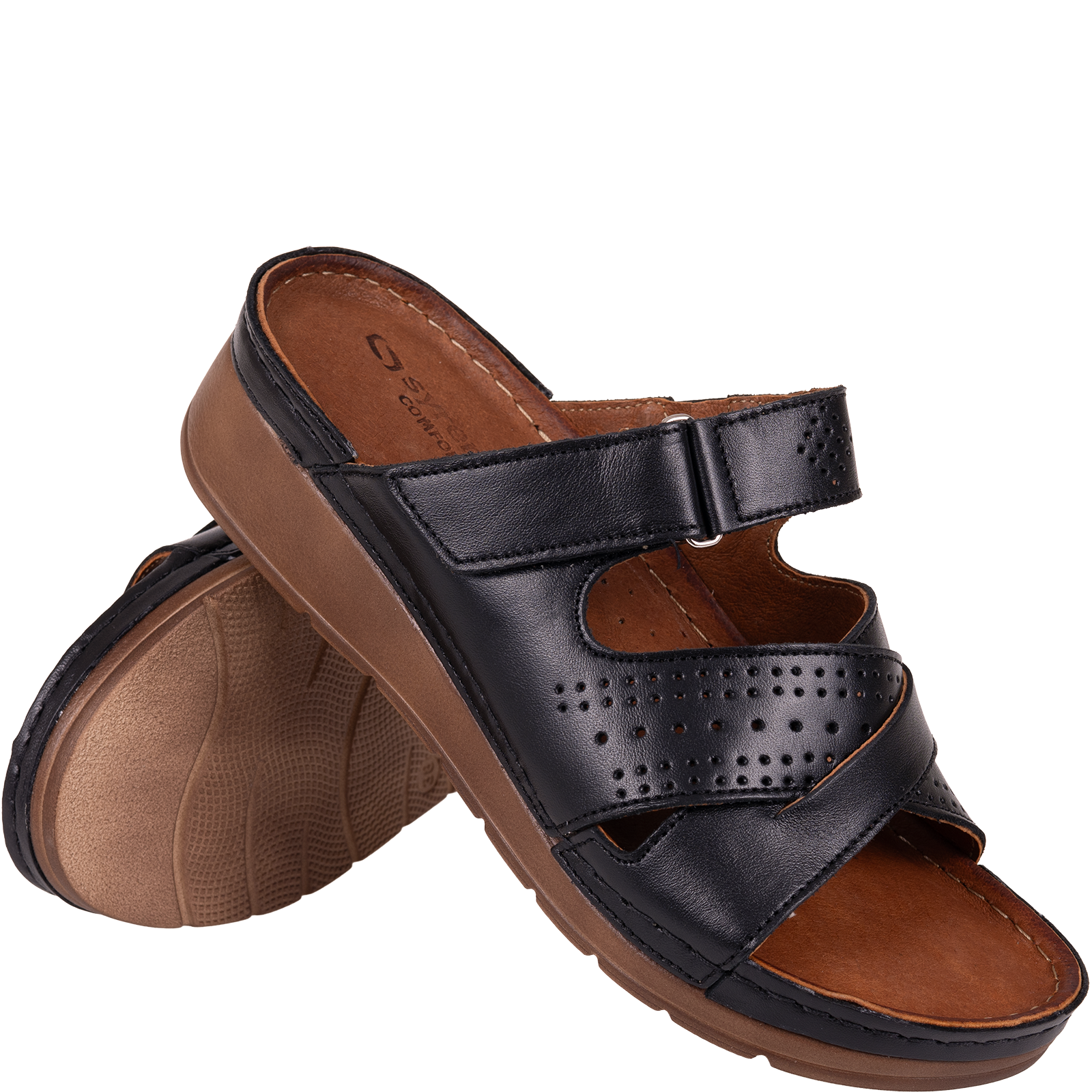 Syrena SST 923 - czarne klapki. Wyrafinowany design i niezrównany komfort