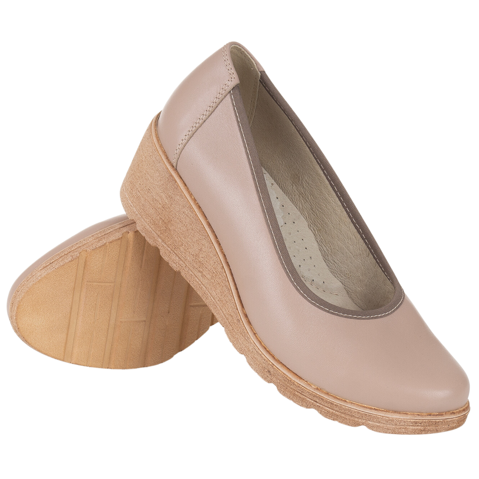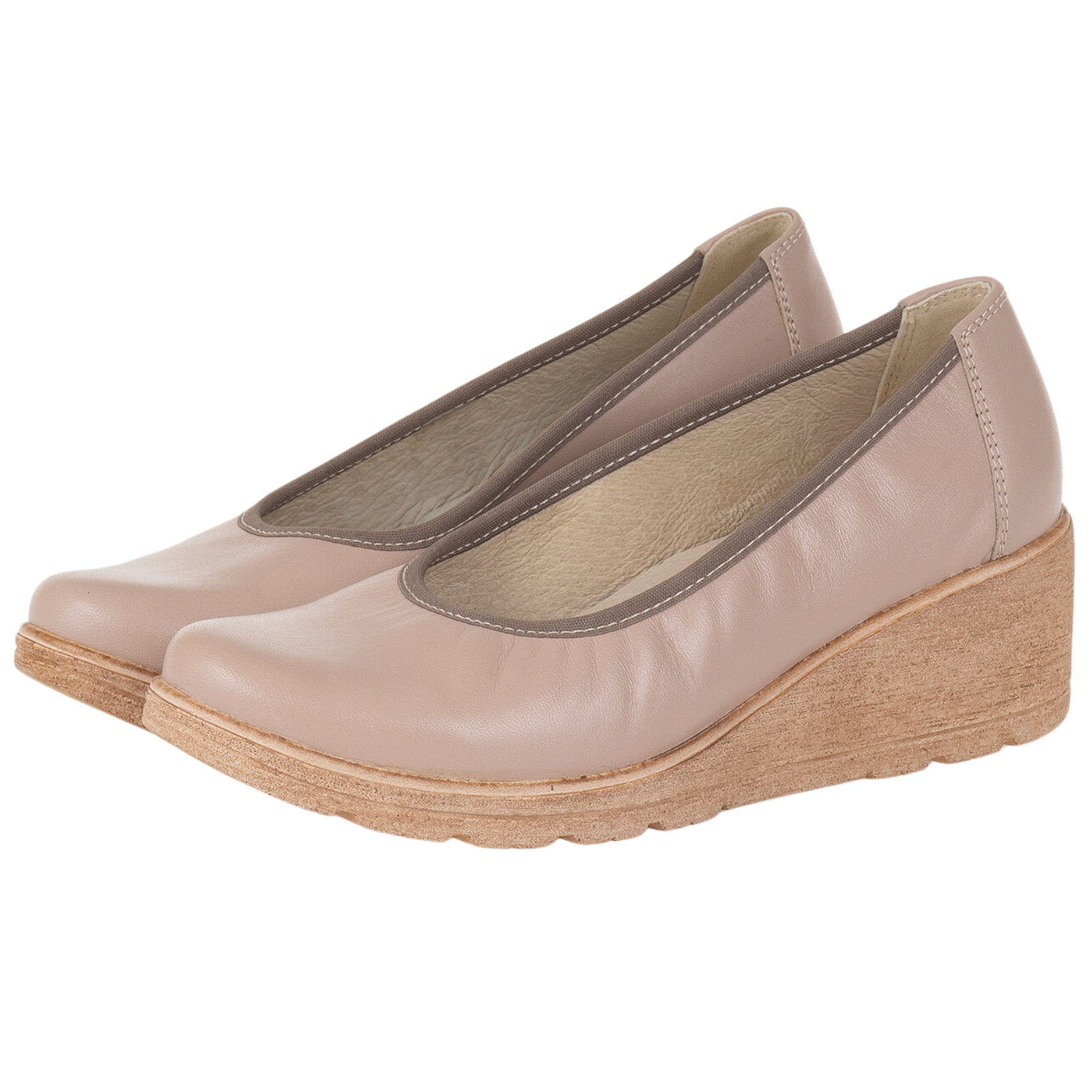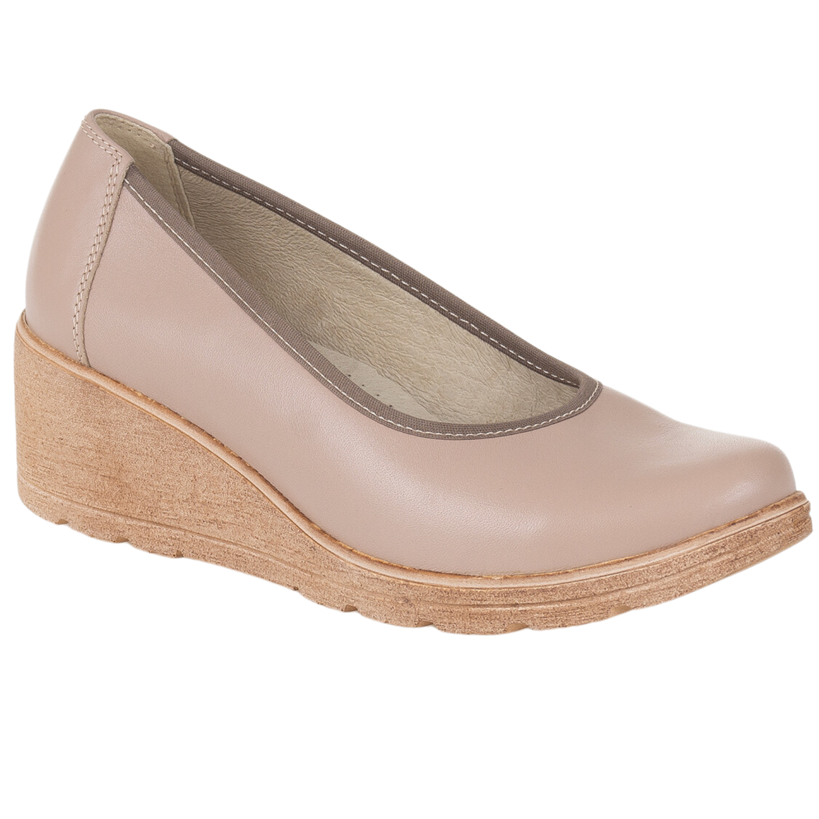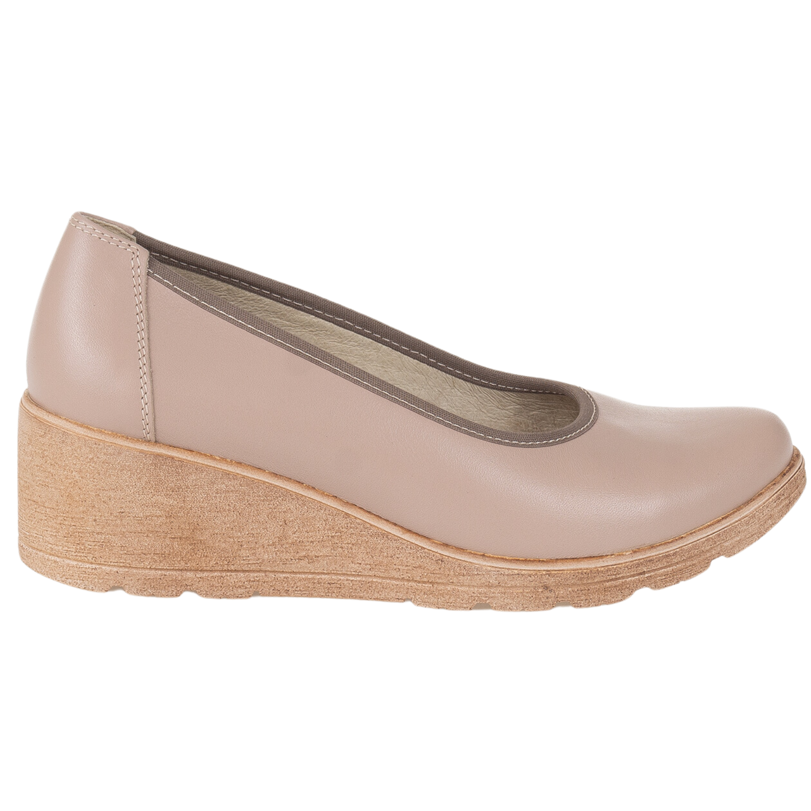 Czółenka na koturnie skórzane Syrena SWB 026/GŁ beżowe