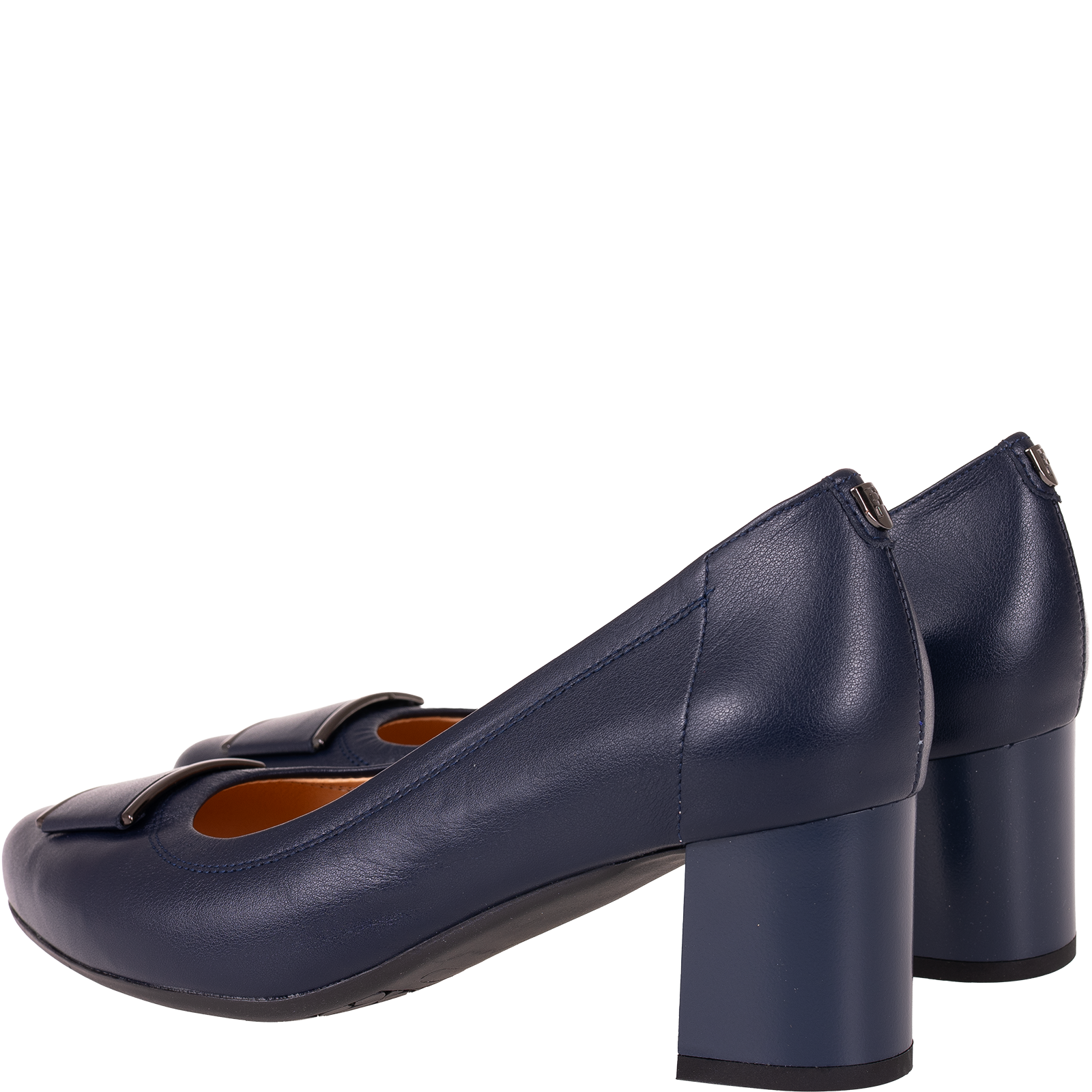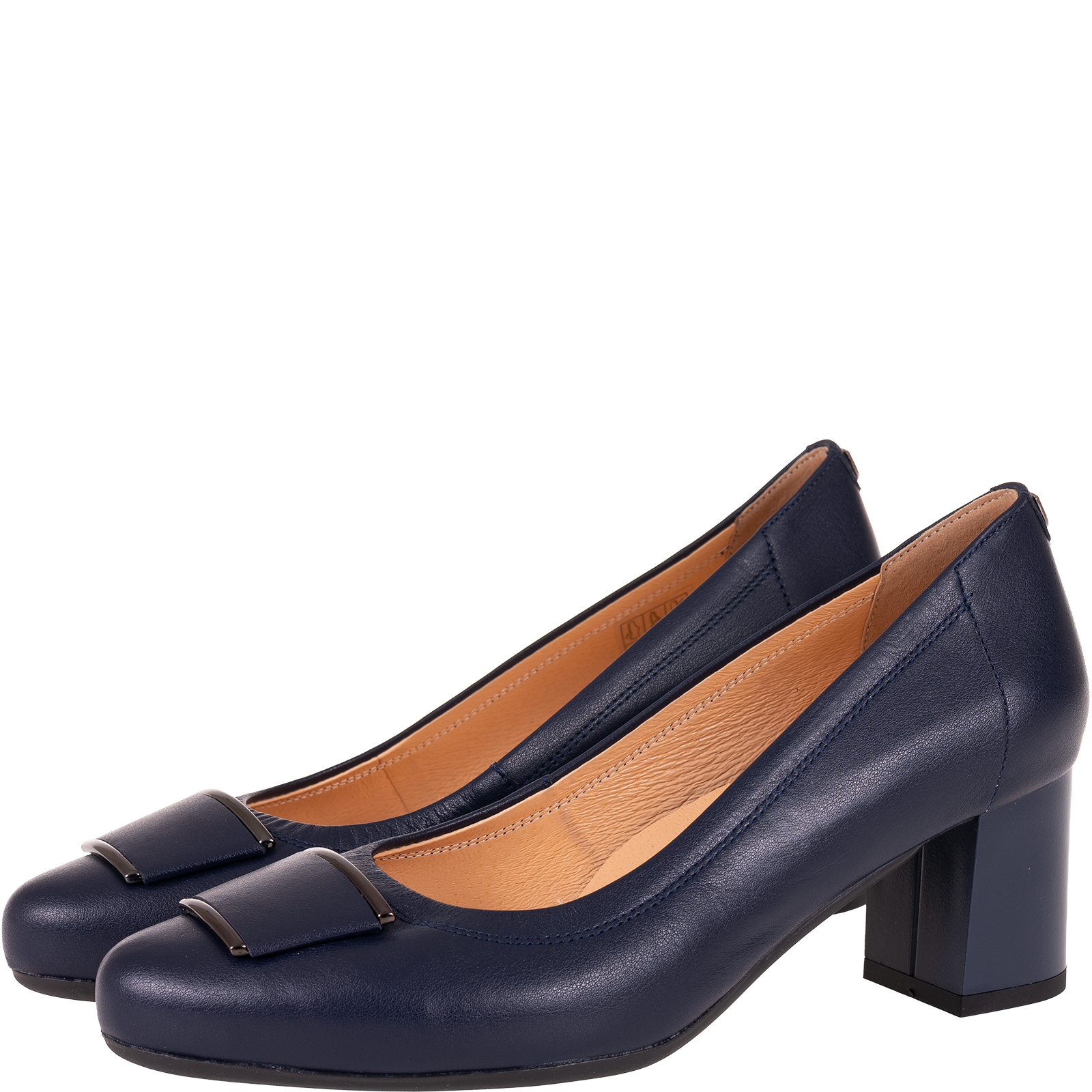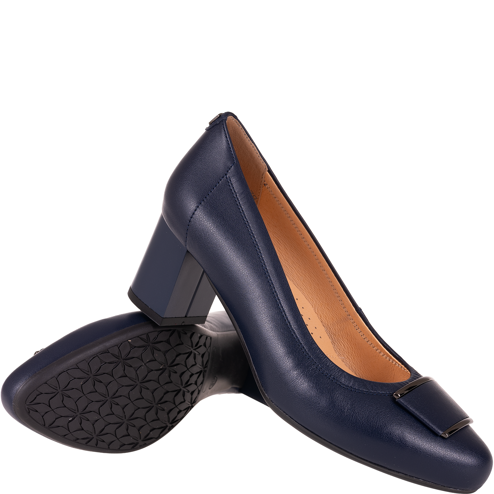 Czółenka skórzane Syrena SPU 1505 granatowe, obcas 6 cm
