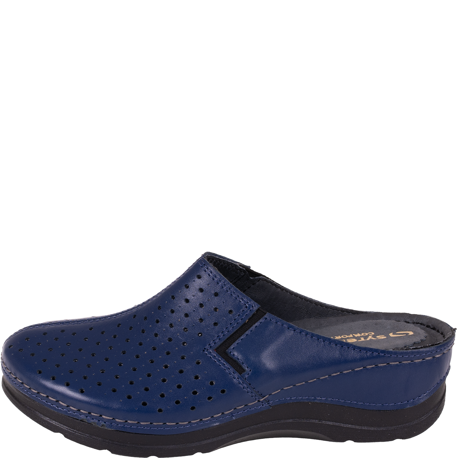 Klapki damskie Syrena SWB 562 w eleganckim granatowym kolorze to propozycja idealna dla kobiet szukających wygodnego, skórzanego obuwia na lato. Model ten został w całości wykonany z naturalnej skóry licowej, co przekłada się na doskonałą trwałość i komfort noszenia.