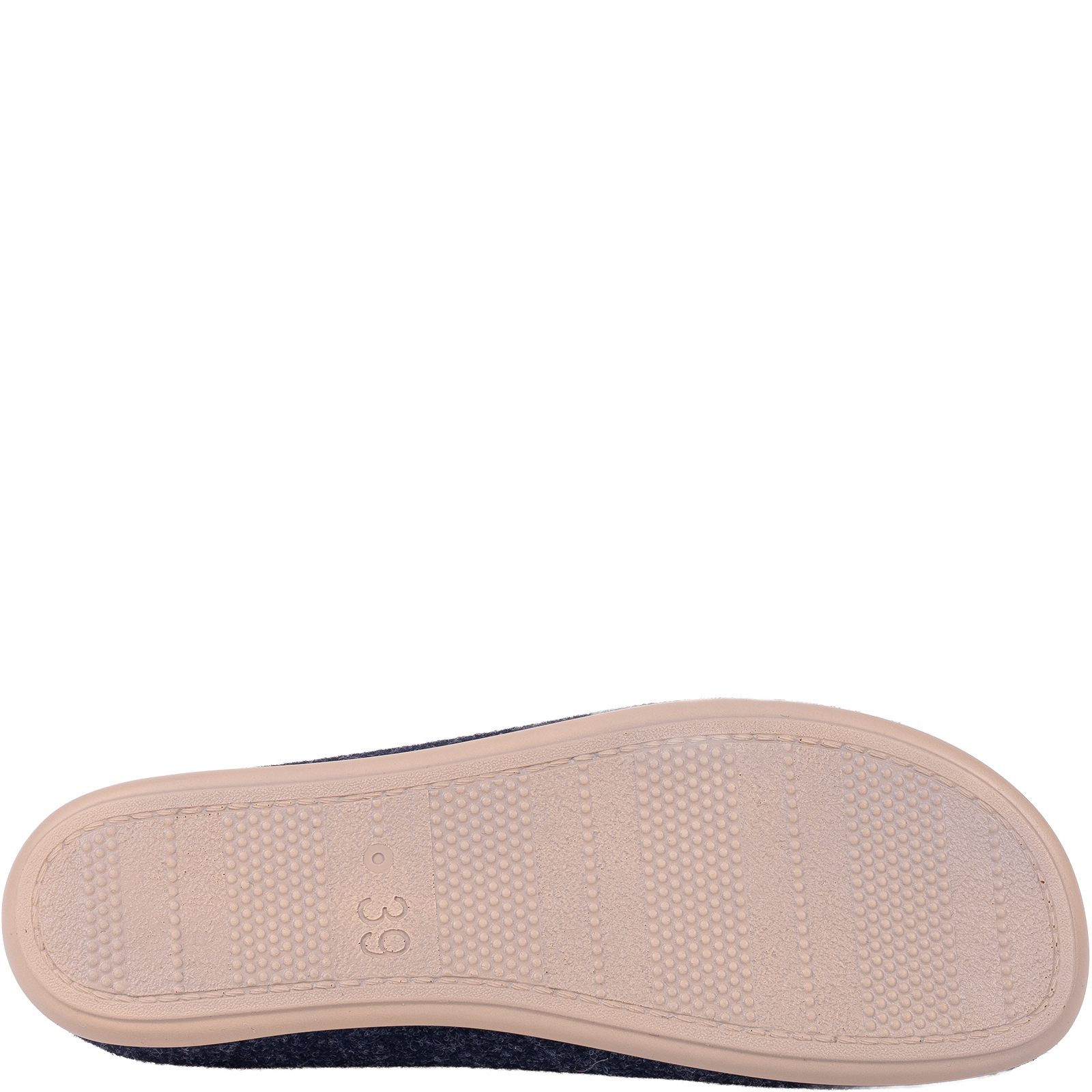 Filcowa cholewka i wkładka gwarantują wygodę, jednocześnie umożliwiając stopie swobodne oddychanie. Antypoślizgowa podeszwa z elastycznego tworzywa zwiększa stabilność, a wsuwany fason ułatwia szybkie zakładanie. Subtelny haft na cholewce dodaje uroku i kobiecego charakteru.