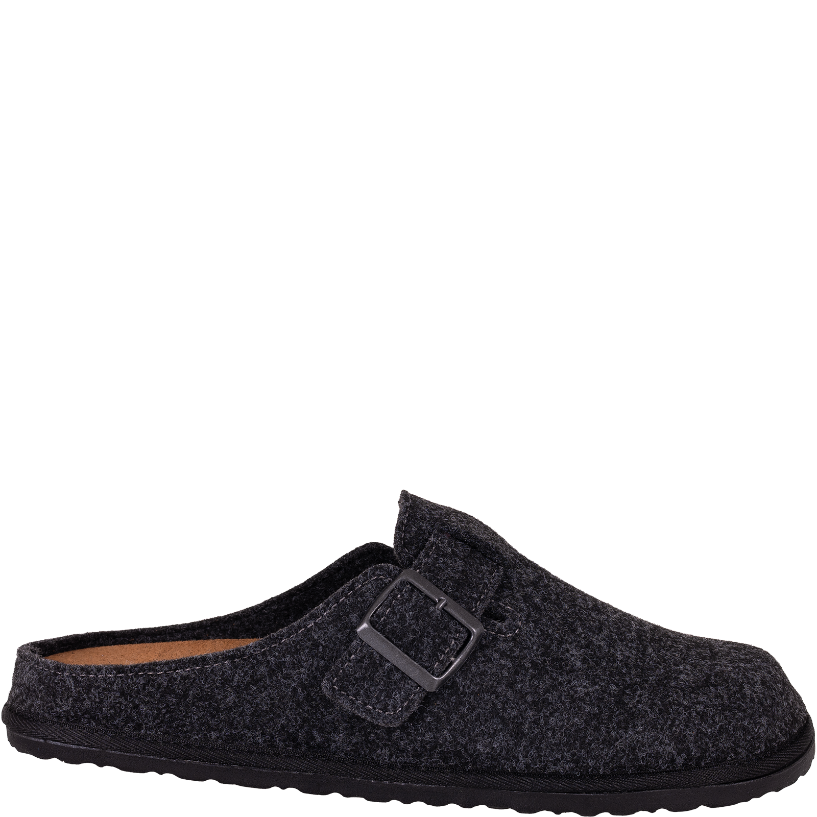 Kapcie wyposażono w naturalną skórzaną wkładkę, która gwarantuje oddychalność, higienę i komfort nawet przy długim noszeniu. Sprzączka z regulacją pozwala dopasować szerokość cholewki do indywidualnych potrzeb użytkownika, zapewniając doskonałe dopasowanie do stopy.