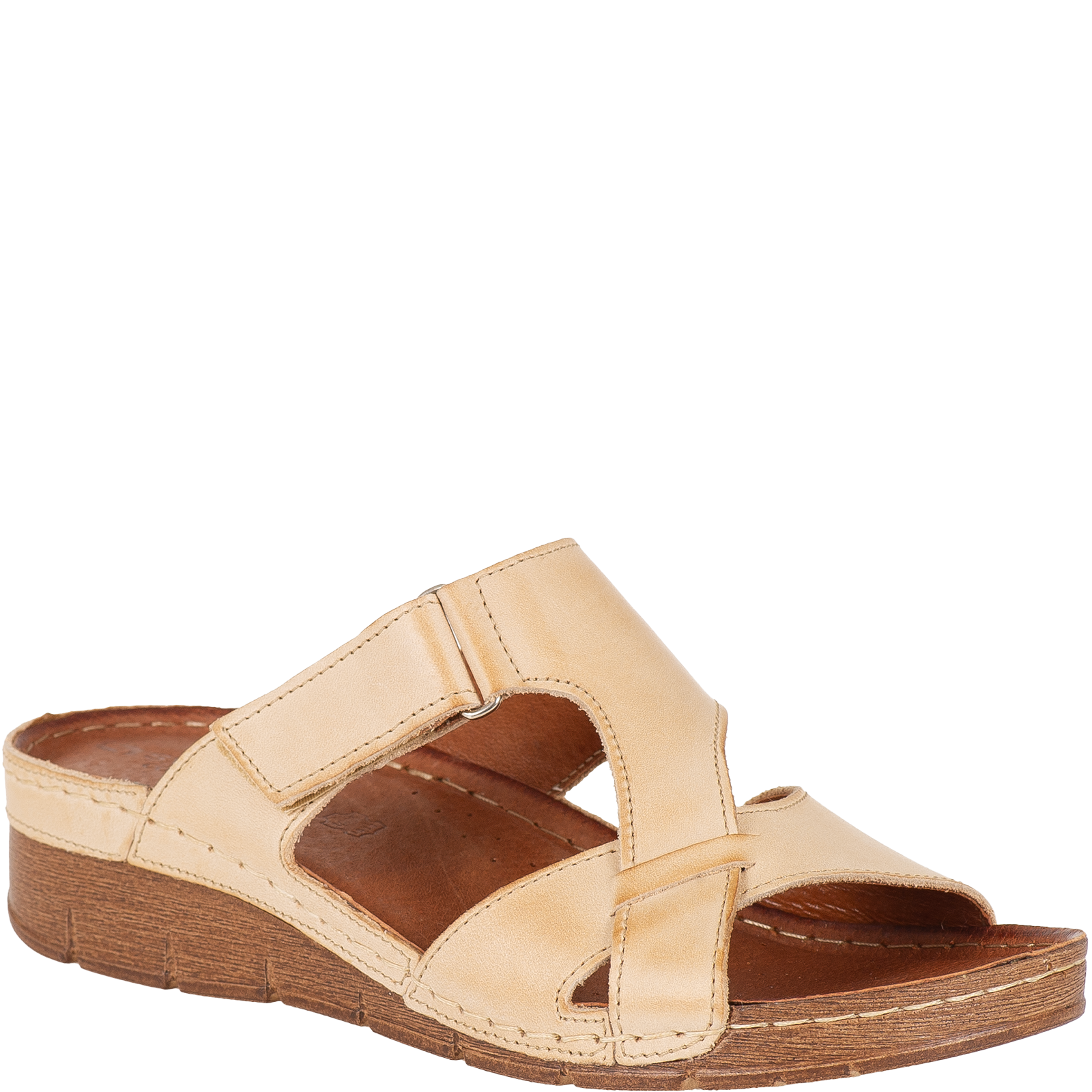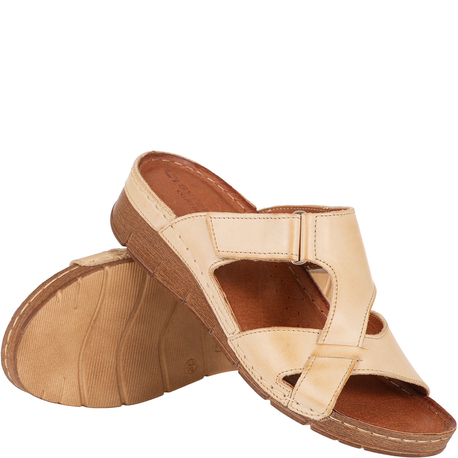 Klapki damskie skórzane marki Syrena SST 908/K beżowe
