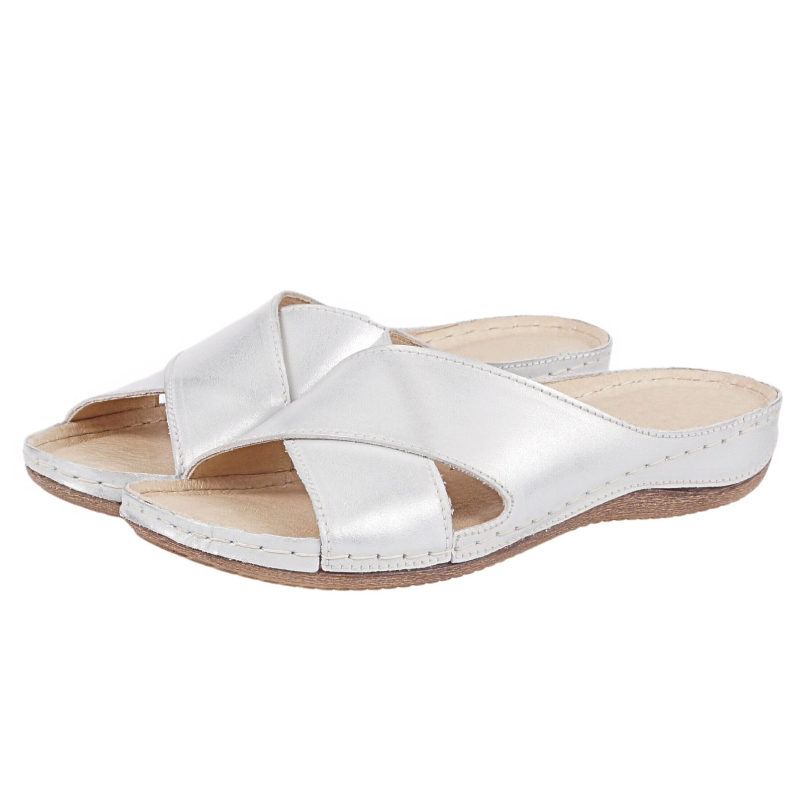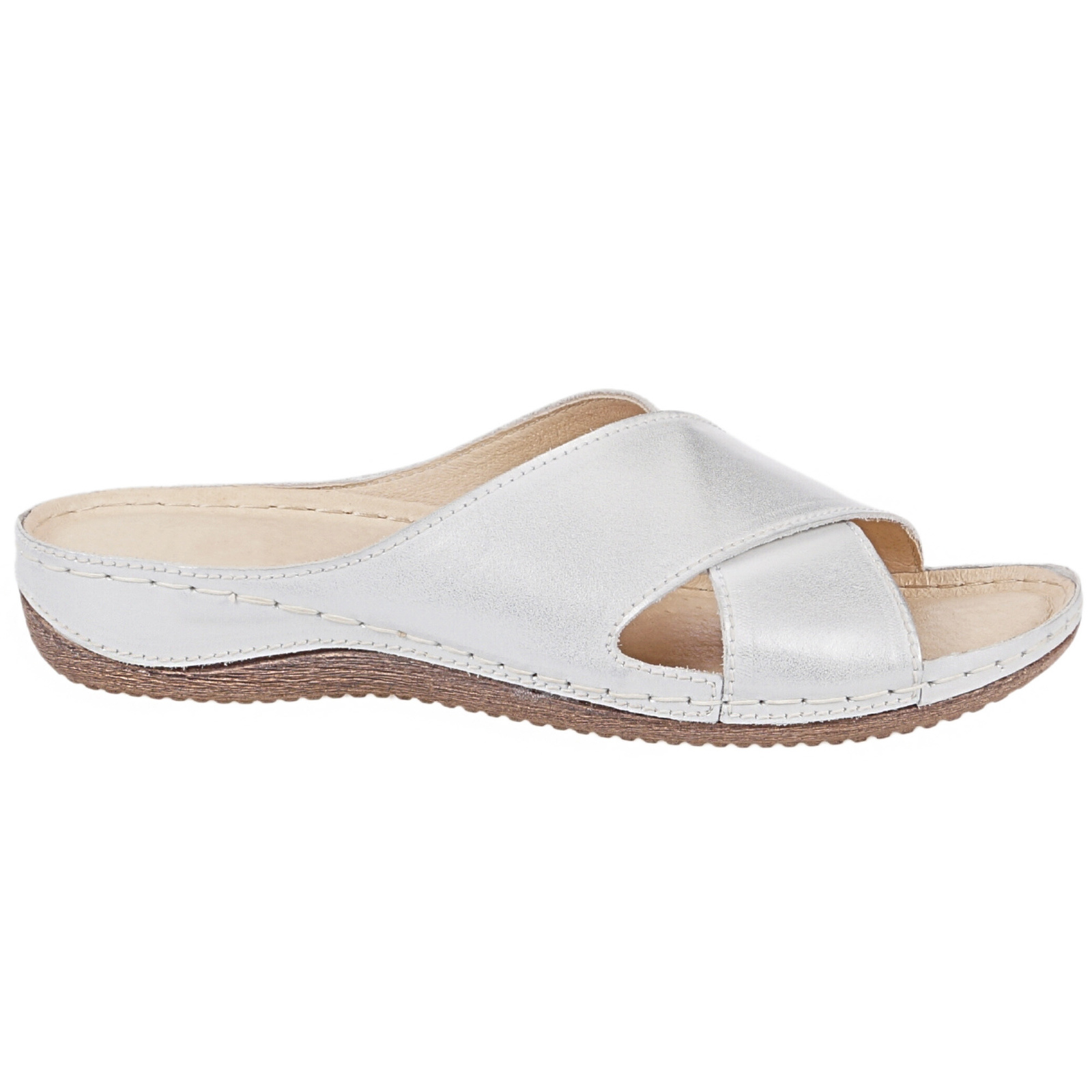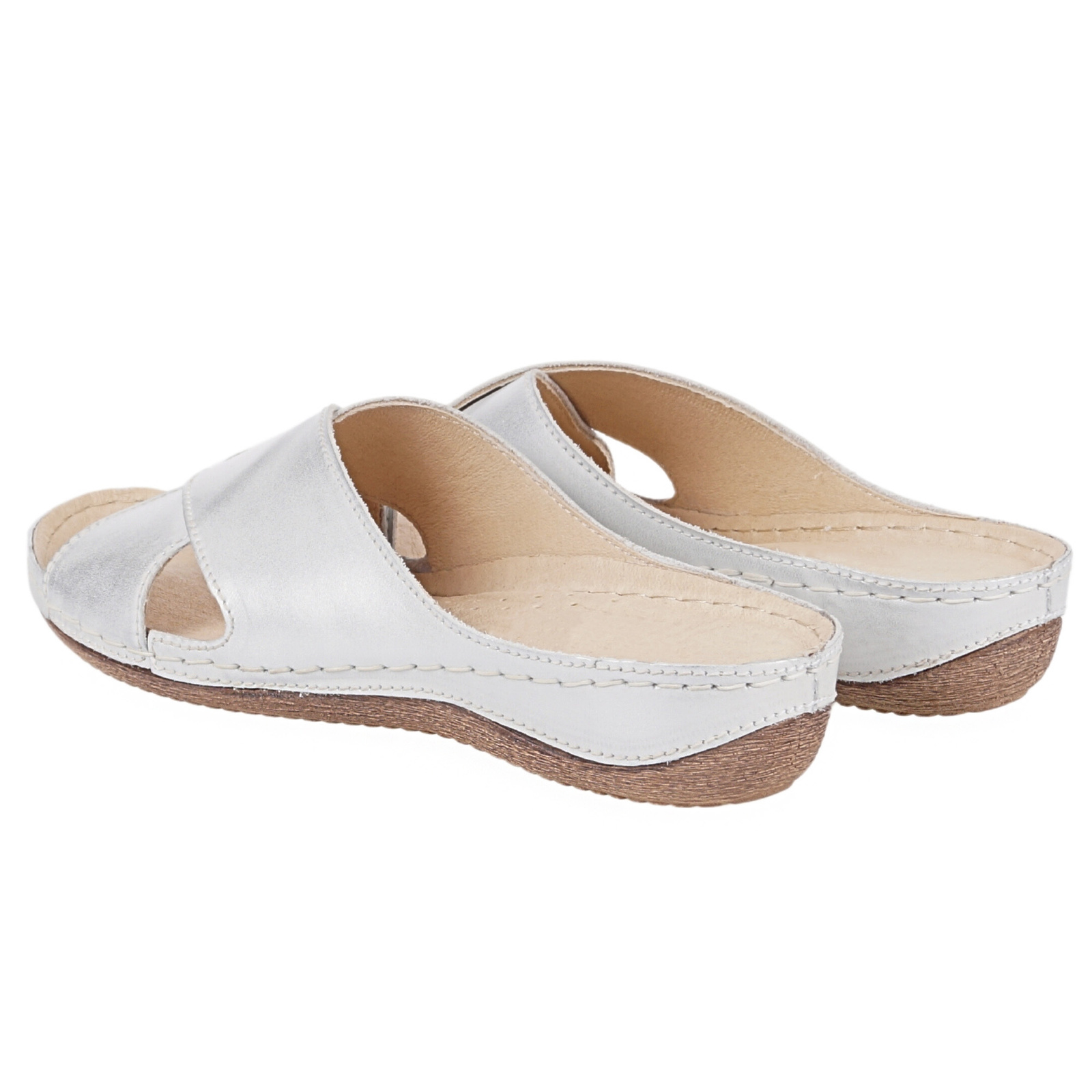 Klapki damskie skórzane Syrena SST 826 srebrne