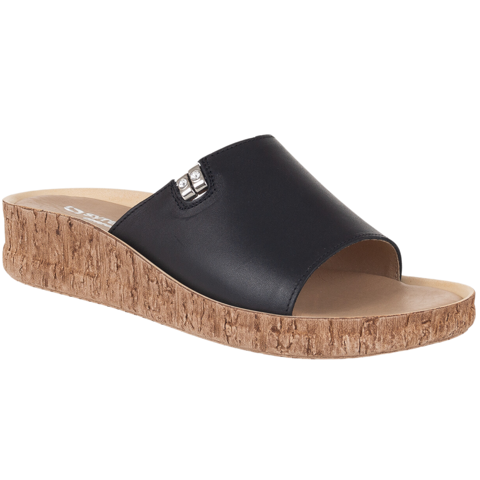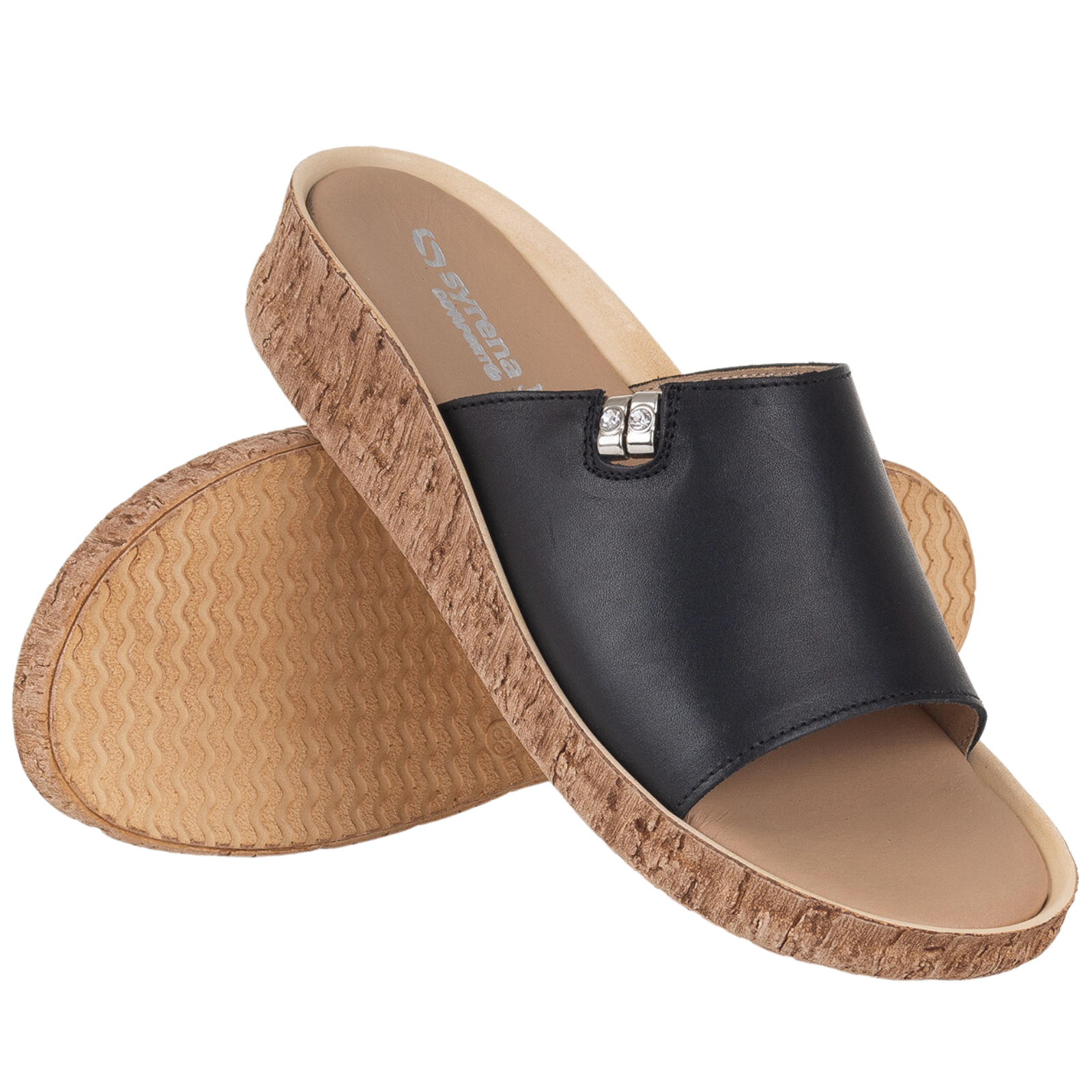 Klapki damskie Syrena Comfort SH 130 czarne | skóra naturalna