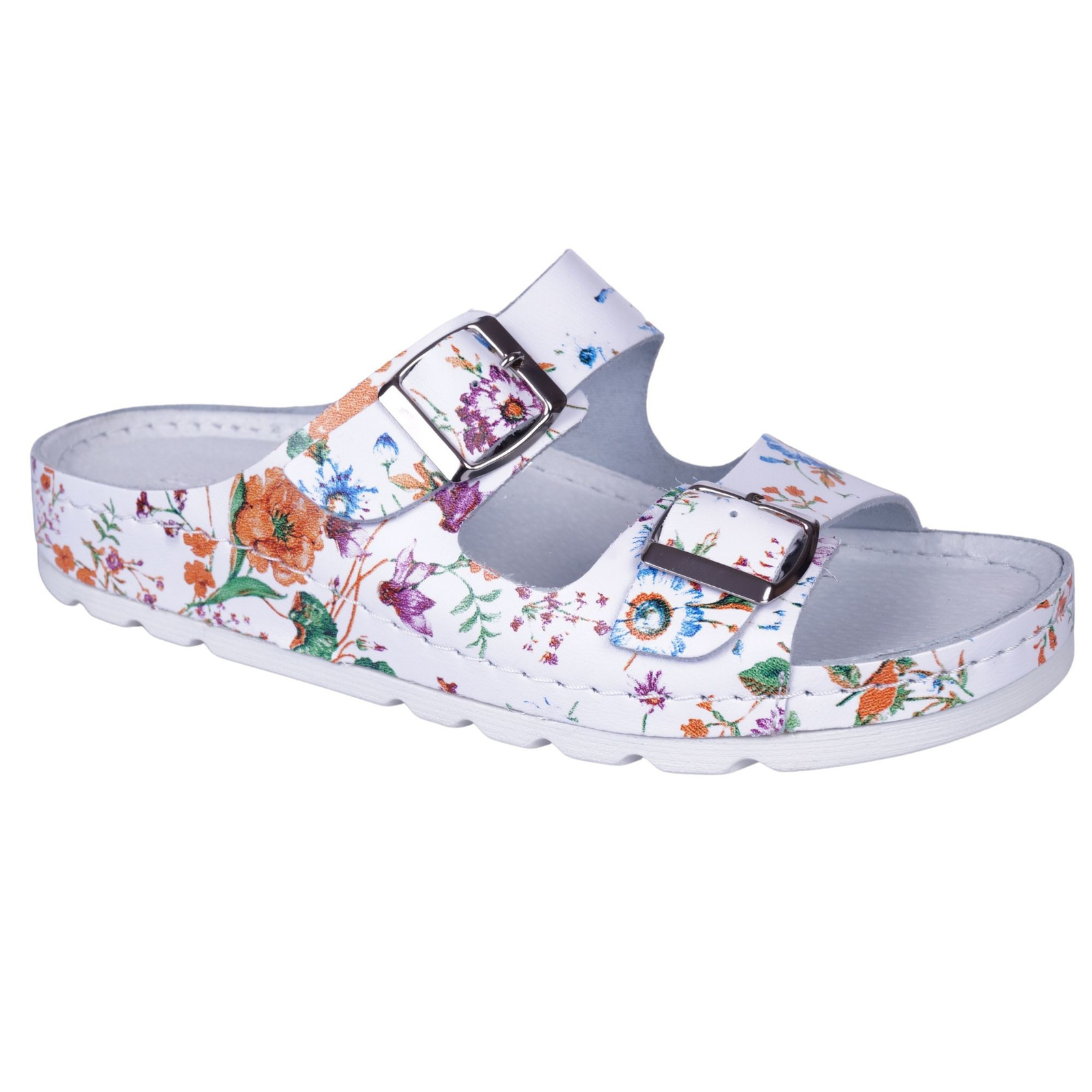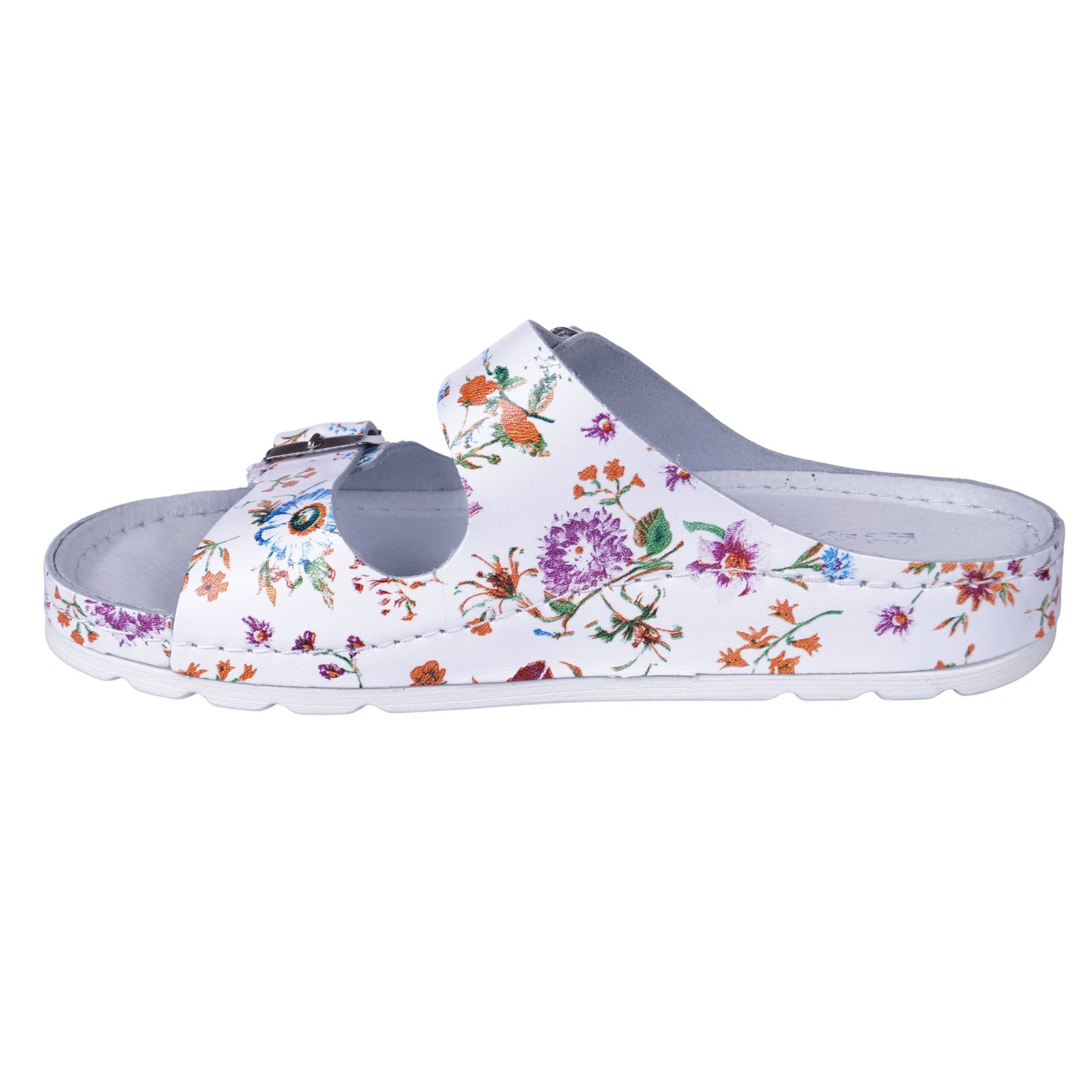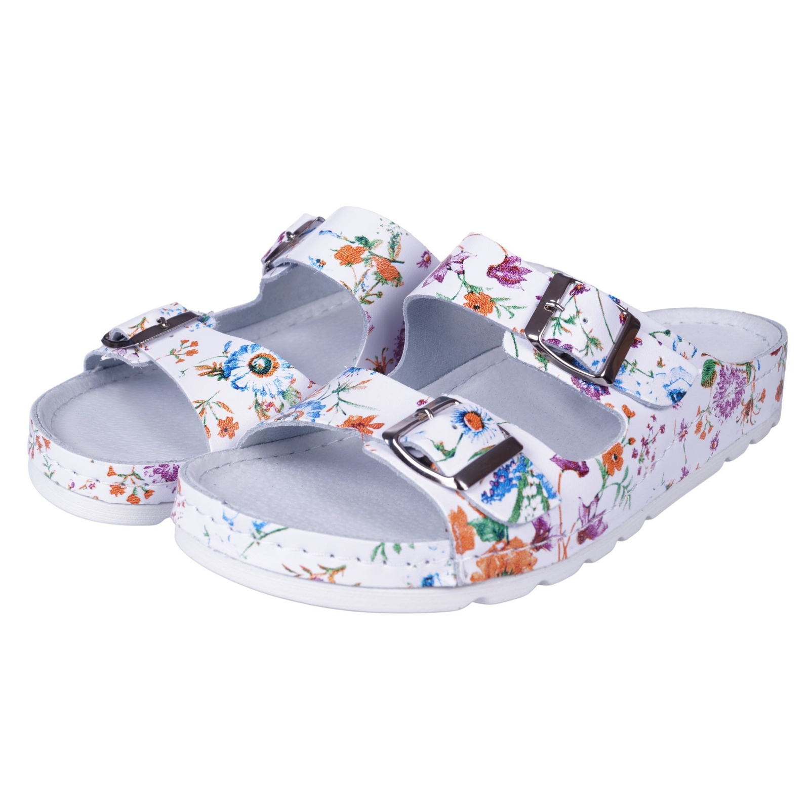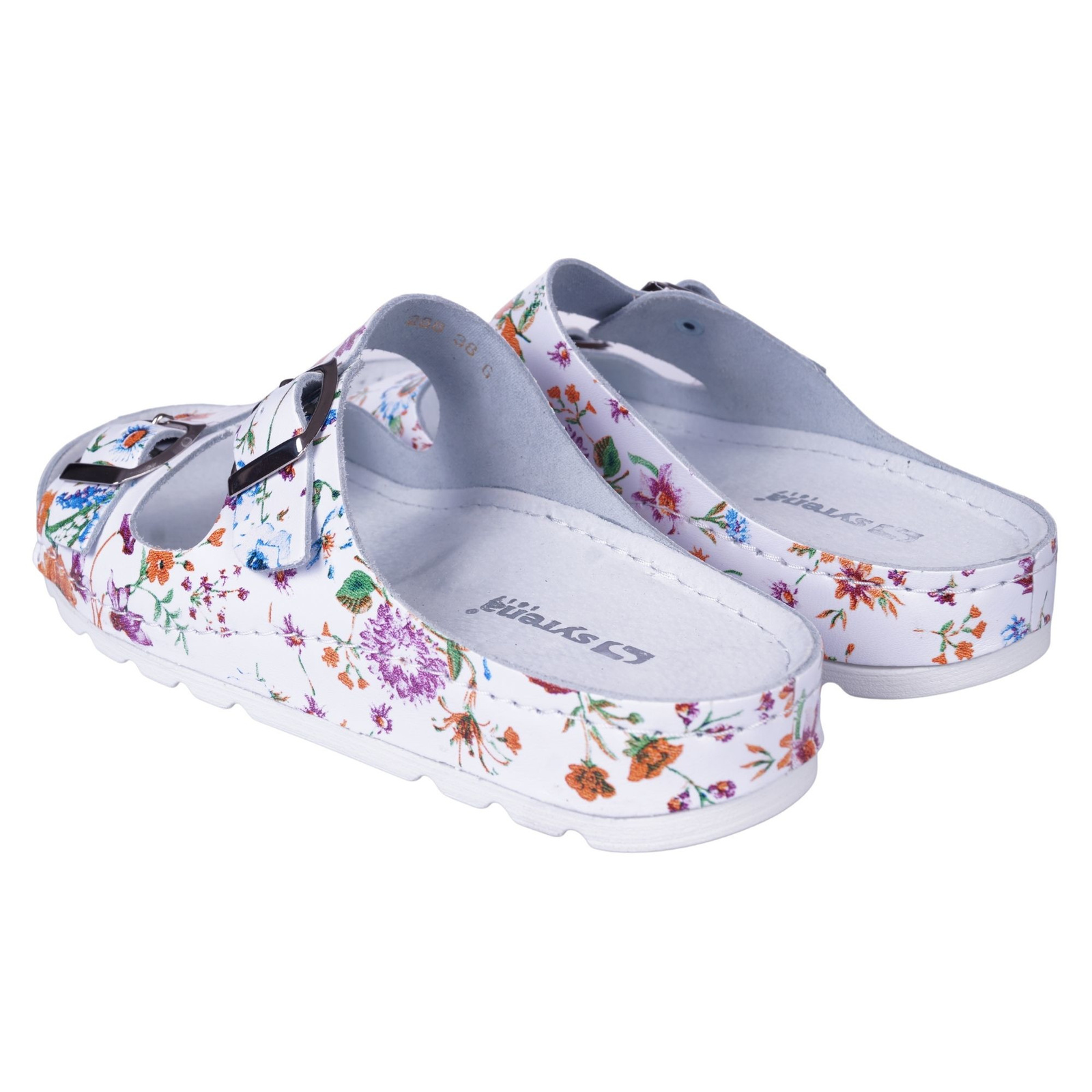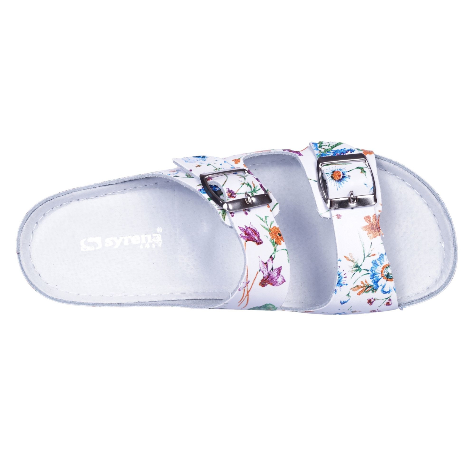 Klapki damskie w kwiaty skóra naturalna SYRENA SH 22288 białe