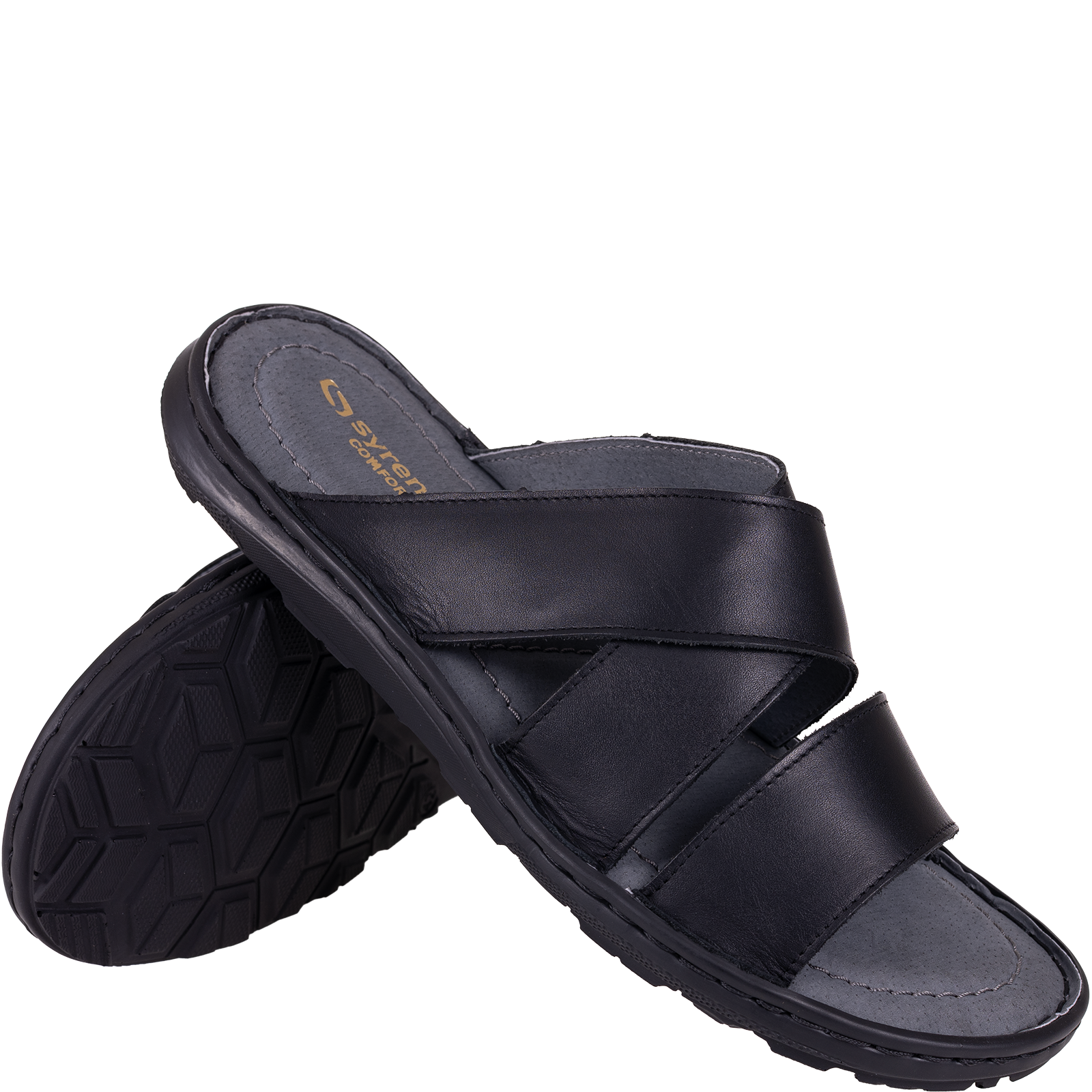Klapki męskie skórzane marki Syrena SI 375-459 czarne