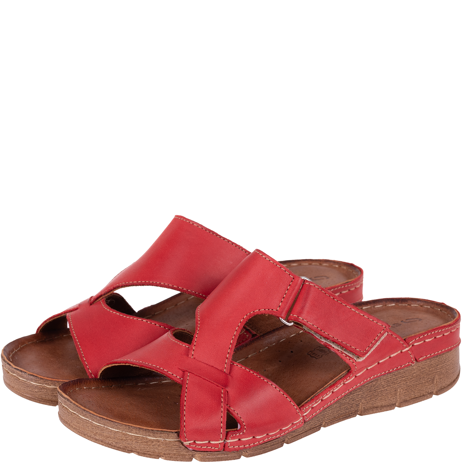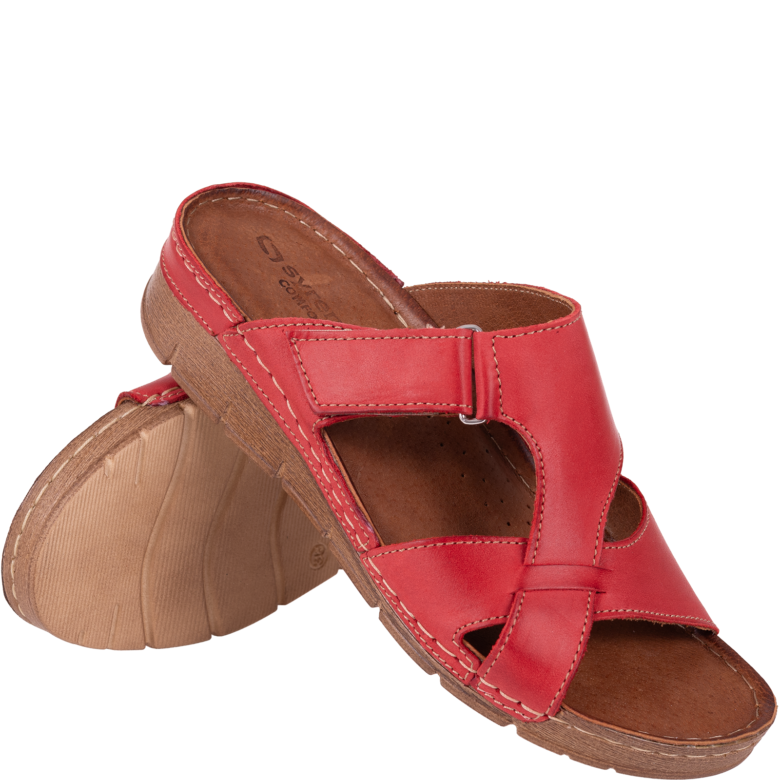 Klapki skórzane damskie marki Syrena SST 908/K czerwone