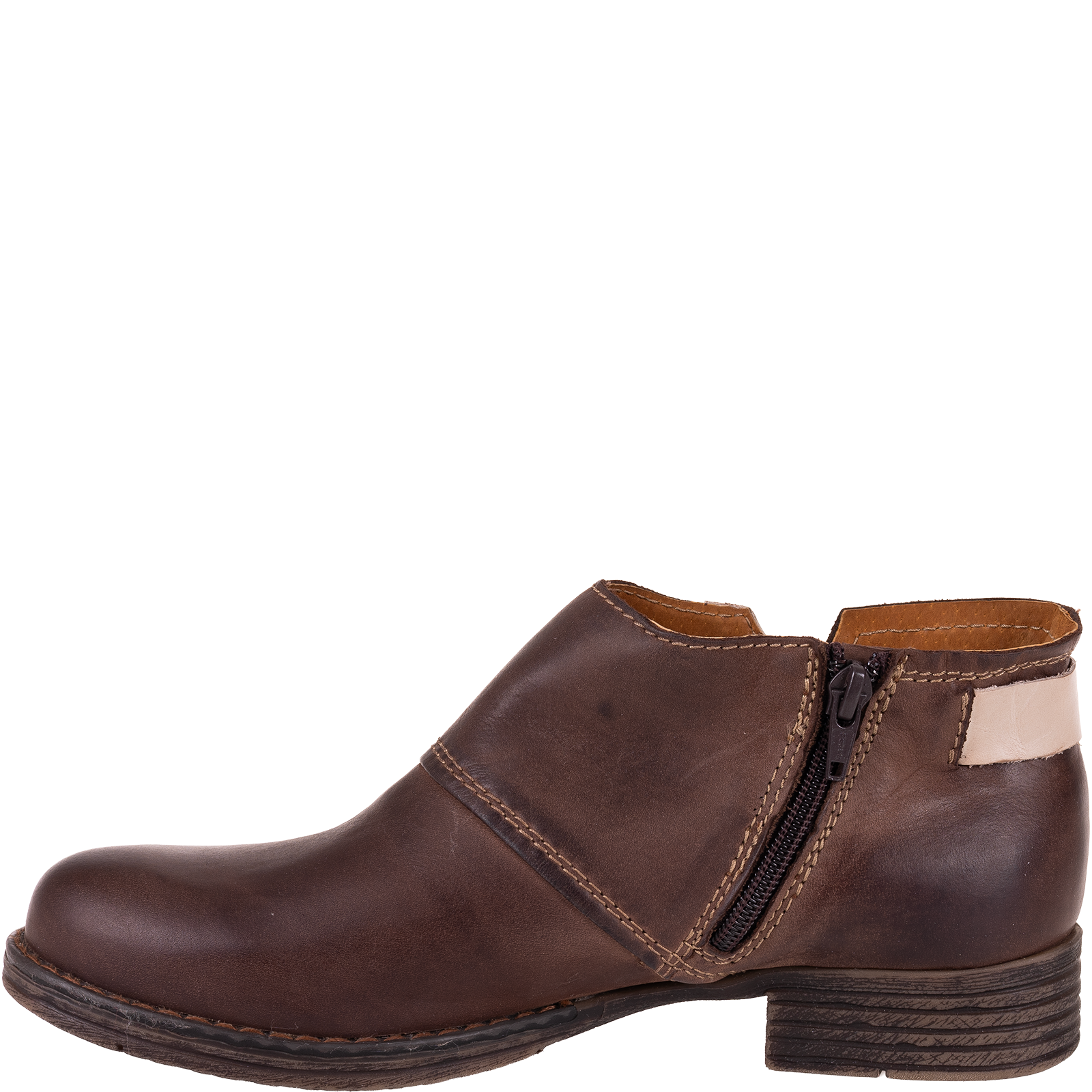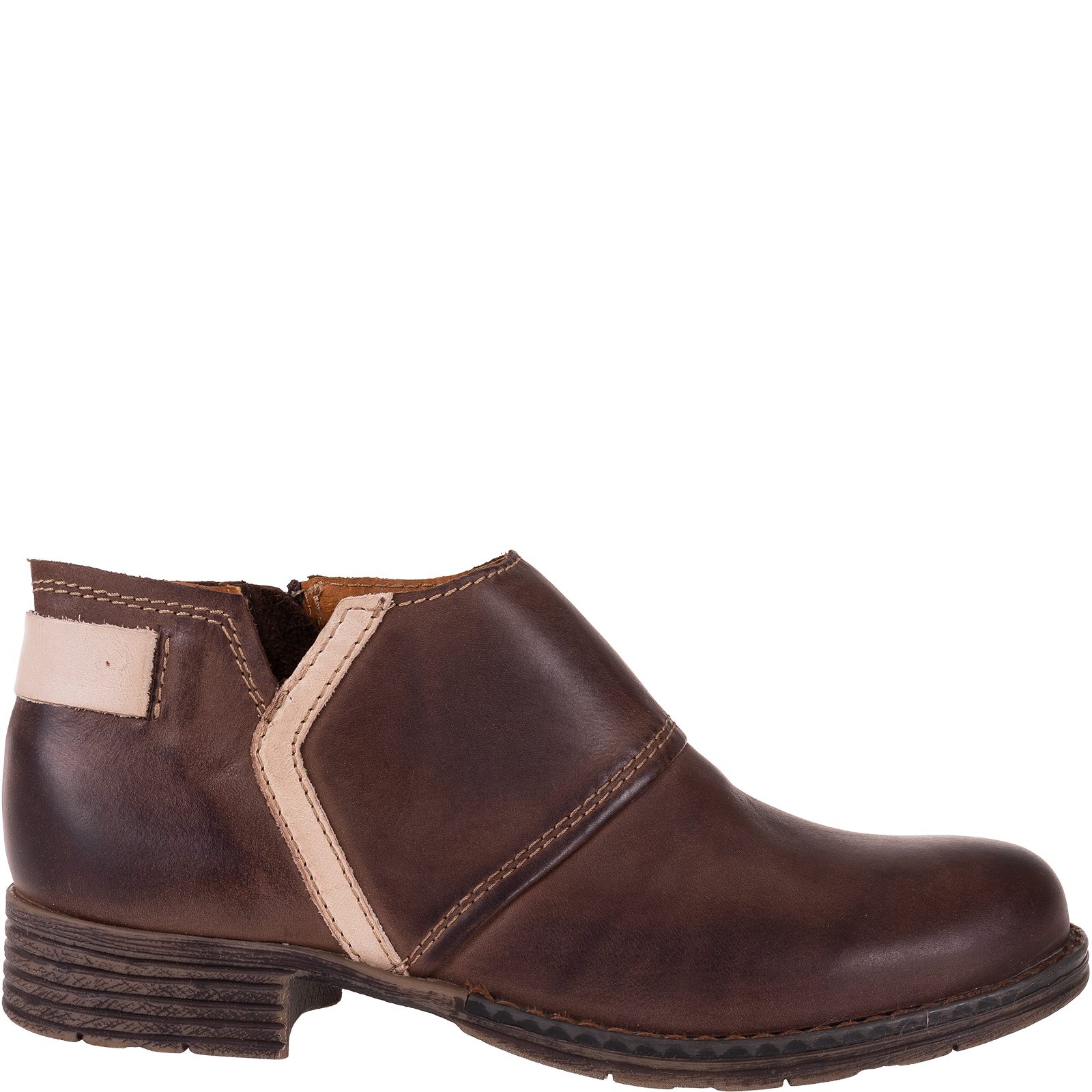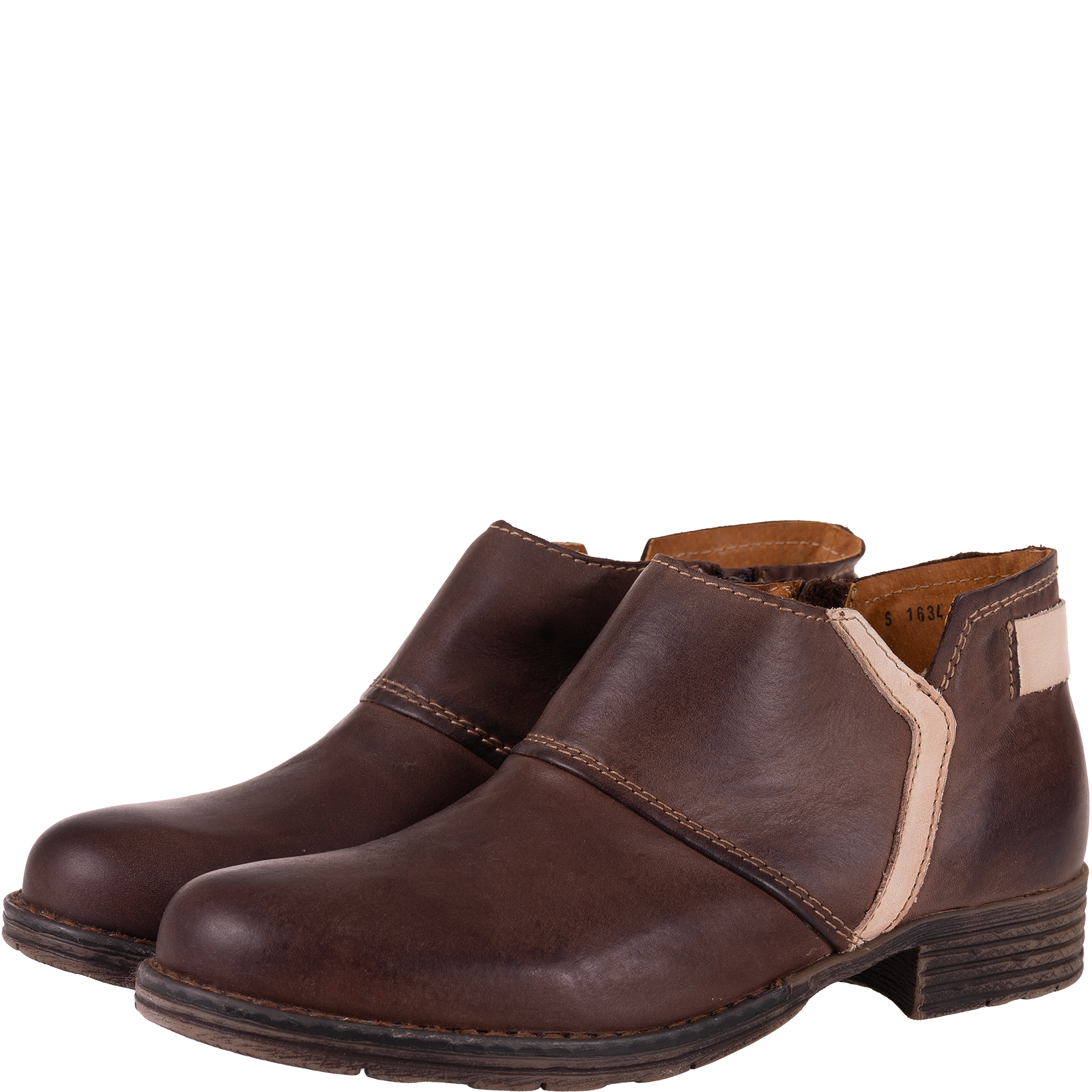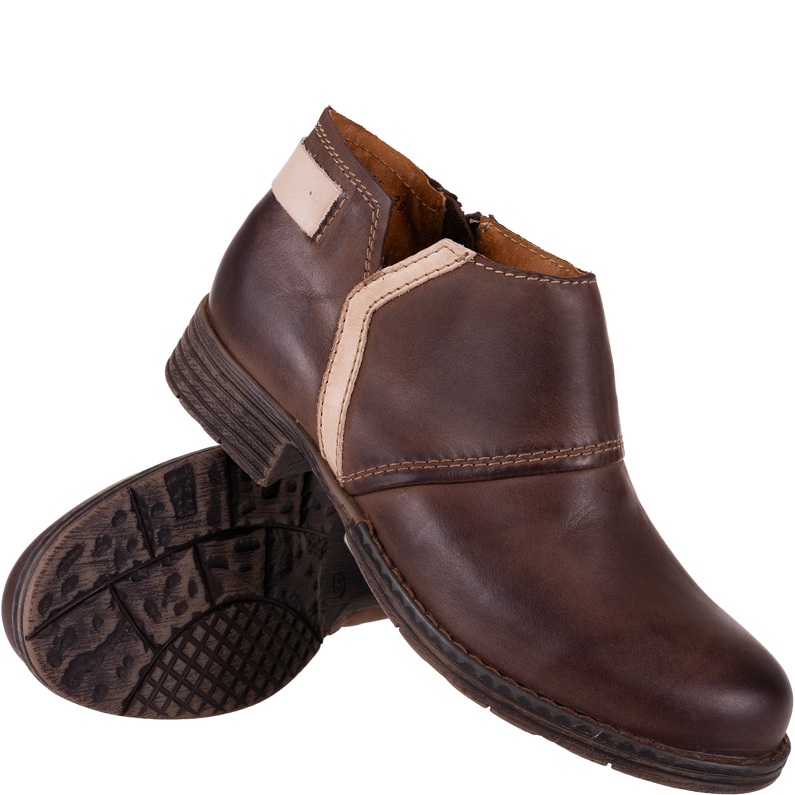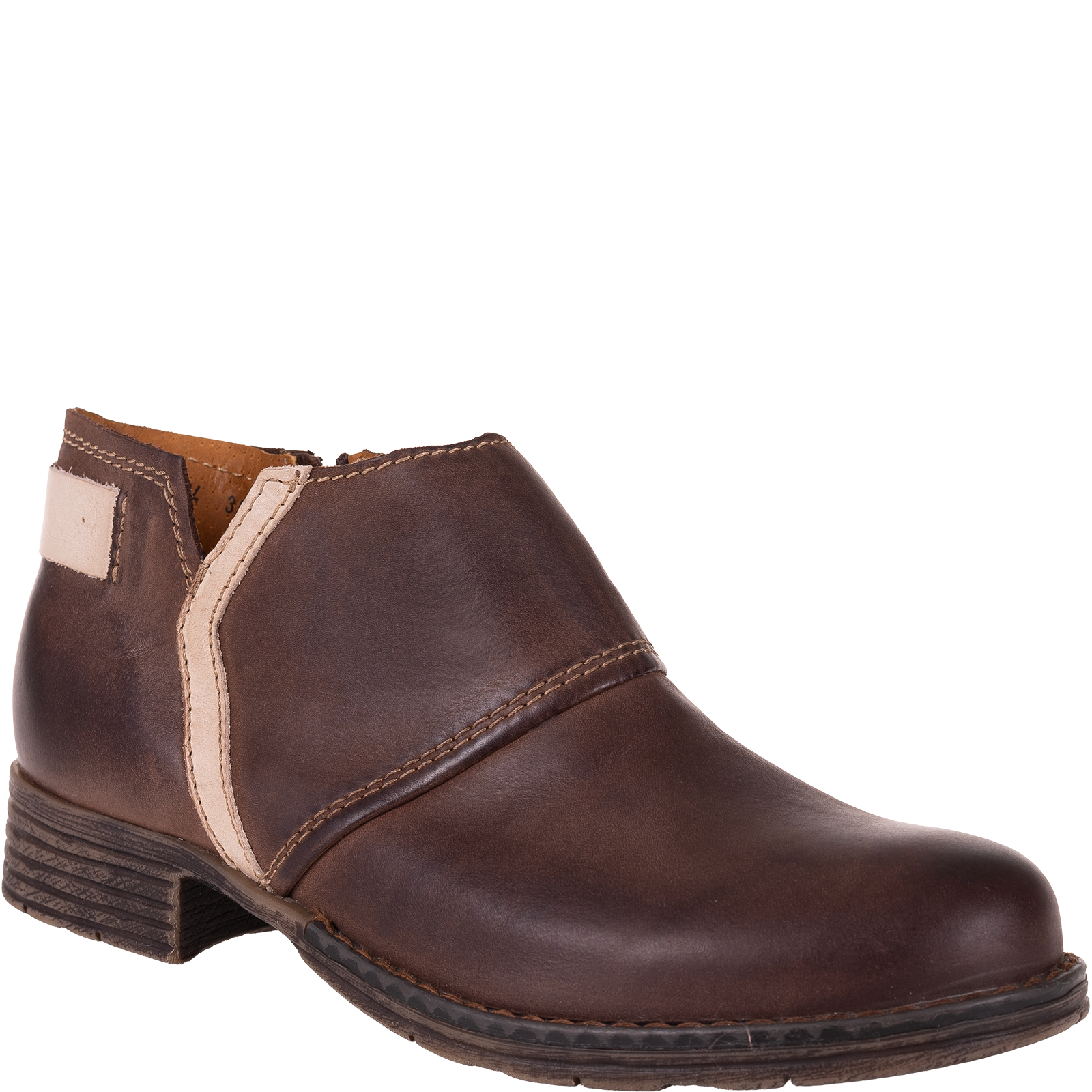 Syrena SST 1634 to wyjątkowe botki damskie wykonane w całości z wysokiej jakości skóry naturalnej. Model charakteryzuje się eleganckim, prostym fasonem z subtelnymi przeszyciami, które dodają mu ponadczasowego charakteru. Ciepły brązowy odcień i kontrastowy jasny detal przy pięcie sprawiają, że buty prezentują się stylowo i pasują do wielu stylizacji.