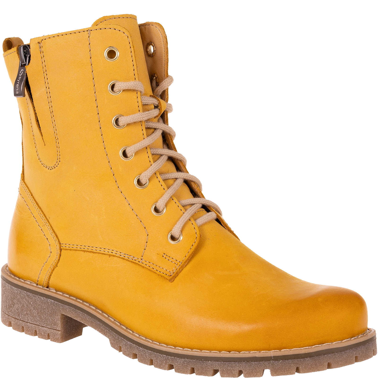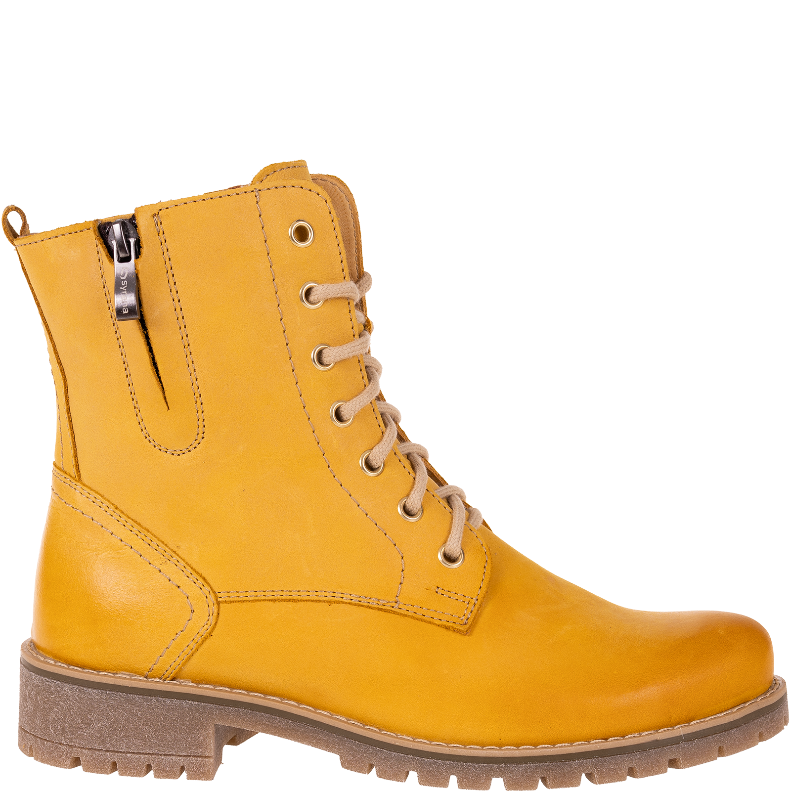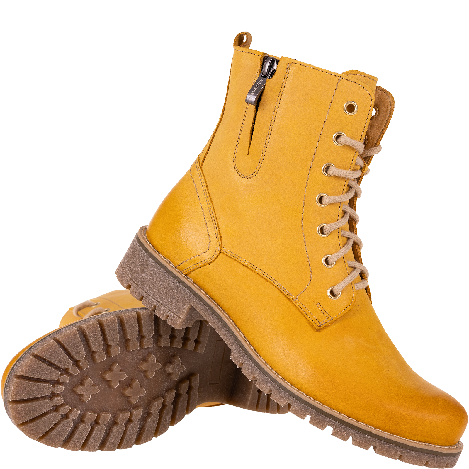 Stylowe botki damskie Syrena SST 4038 w kolorze żółtym, to doskonałe rozwiązanie na zimowe dni. Wykonane z wysokiej jakości skóry naturalnej, zapewniają elegancki wygląd oraz trwałość. Ocieplenie misiem wewnątrz buta gwarantuje ciepło i komfort noszenia, nawet podczas najzimniejszych dni. Dzięki zamkowi po wewnętrznej stronie i sznurowaniu, botki są wygodne i łatwe w zakładaniu.