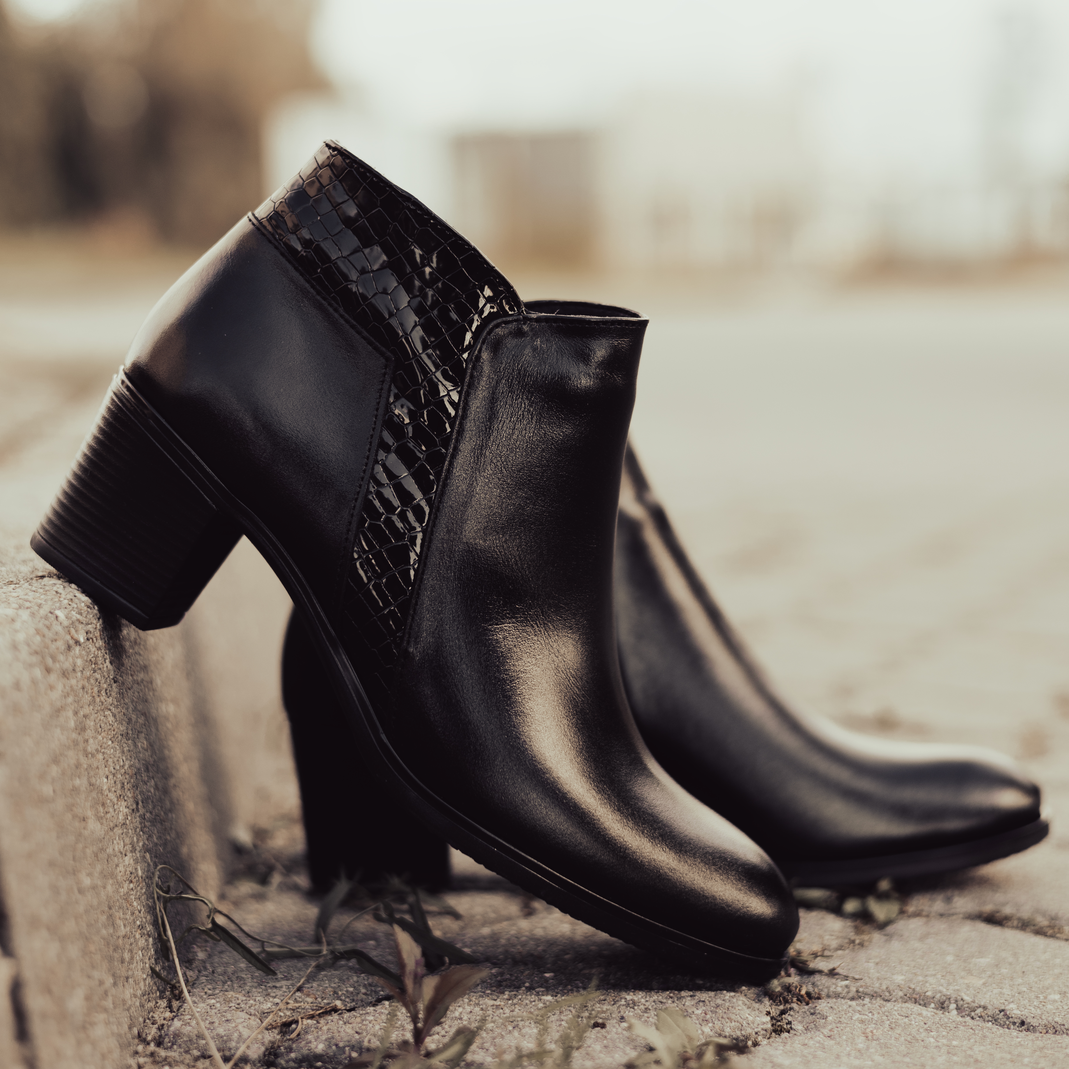 Cholewka botków została wykonana z wysokiej jakości skóry naturalnej, co gwarantuje trwałość i elegancję. Czarny kolor doskonale komponuje się z różnorodnymi stylizacjami, dodając im niepowtarzalnego charakteru. Wnętrze obuwia zostało ocieplone przyjemnym kocem obuwniczym, zapewniając Tobie ciepło nawet w chłodniejsze dni.