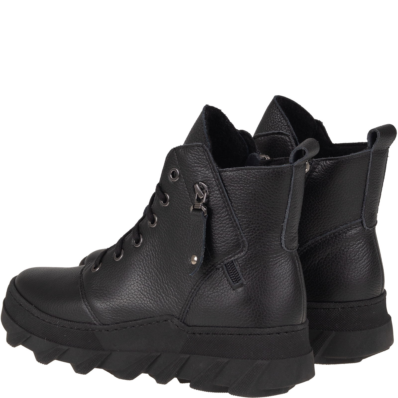 Botki damskie Syrena SR 1222 łączą wygodę i elegancję. Wykonane z wysokiej jakości czarnej skóry naturalnej, są idealnym wyborem na chłodniejsze dni. Wnętrze butów zostało ocieplone polarem obuwniczym, który zapewnia przyjemne ciepło i wygodę podczas noszenia. Dzięki zapięciu na suwak zakładanie jest szybkie, a sznurowadła pozwalają na idealne dopasowanie do stopy.