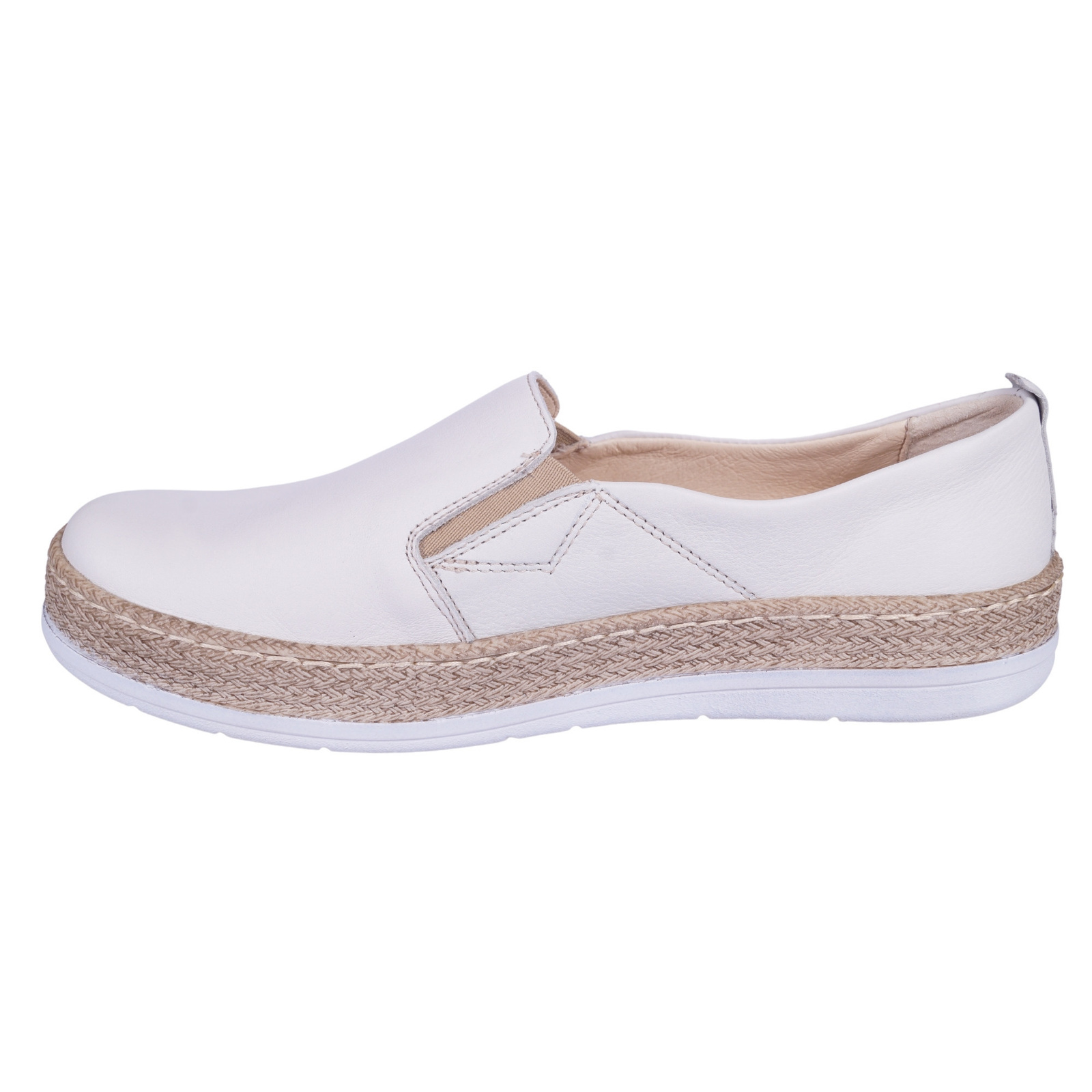 Komfortowe półbuty wykonane ze skóry naturalnej w kolorze białym. Wyprodukowane z polskich skór i kompozytów dają gwarancję najwyższej jakości produktu.