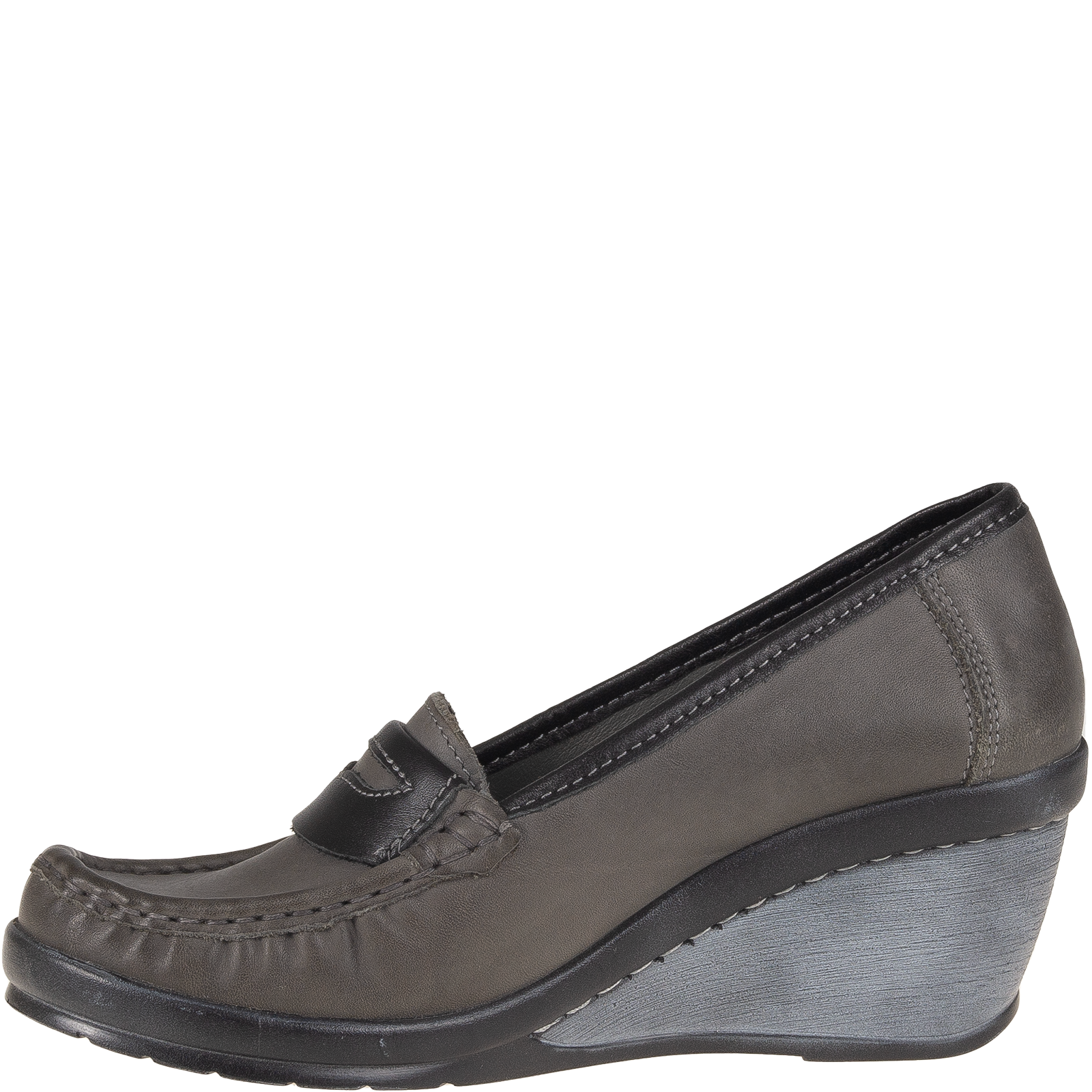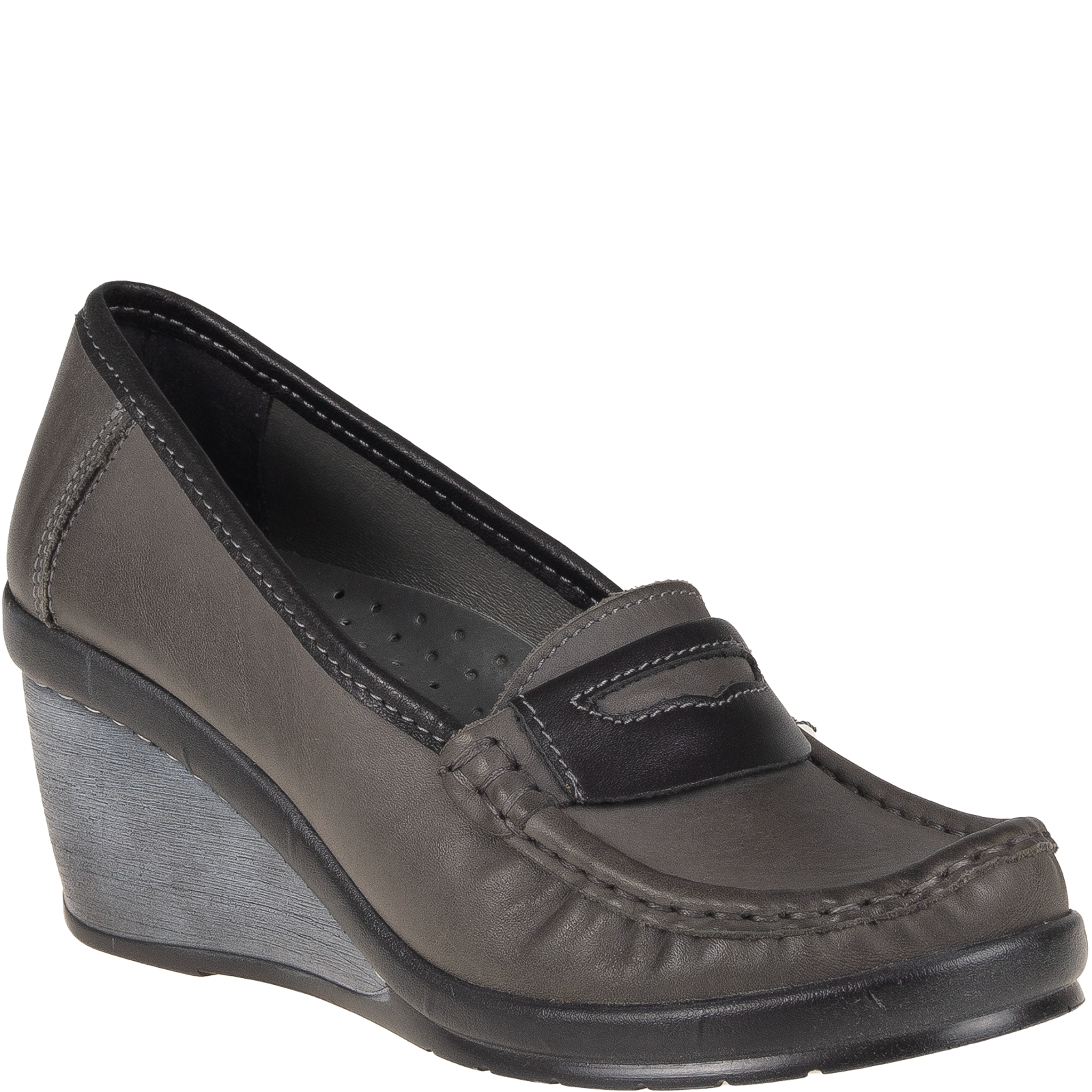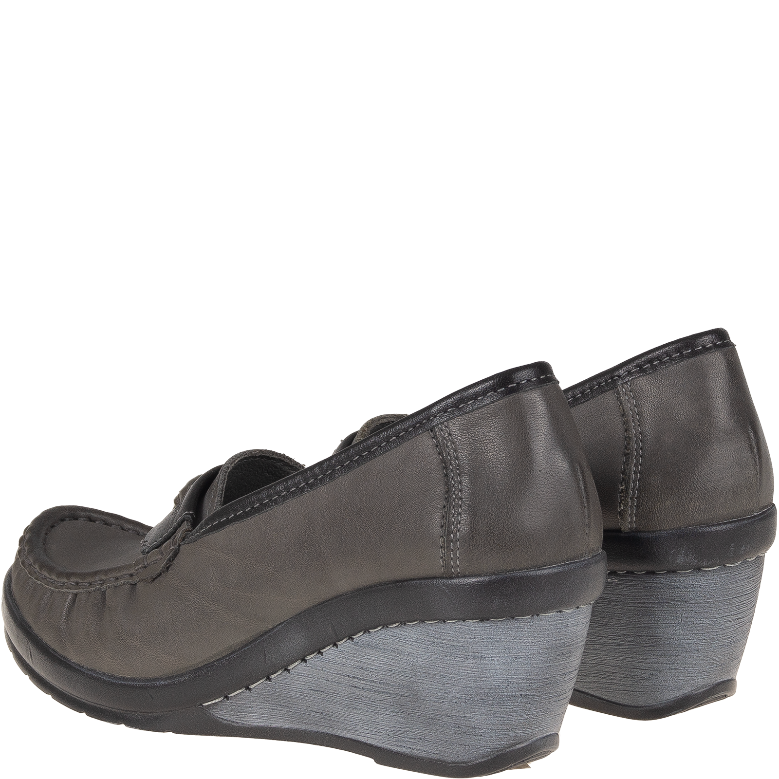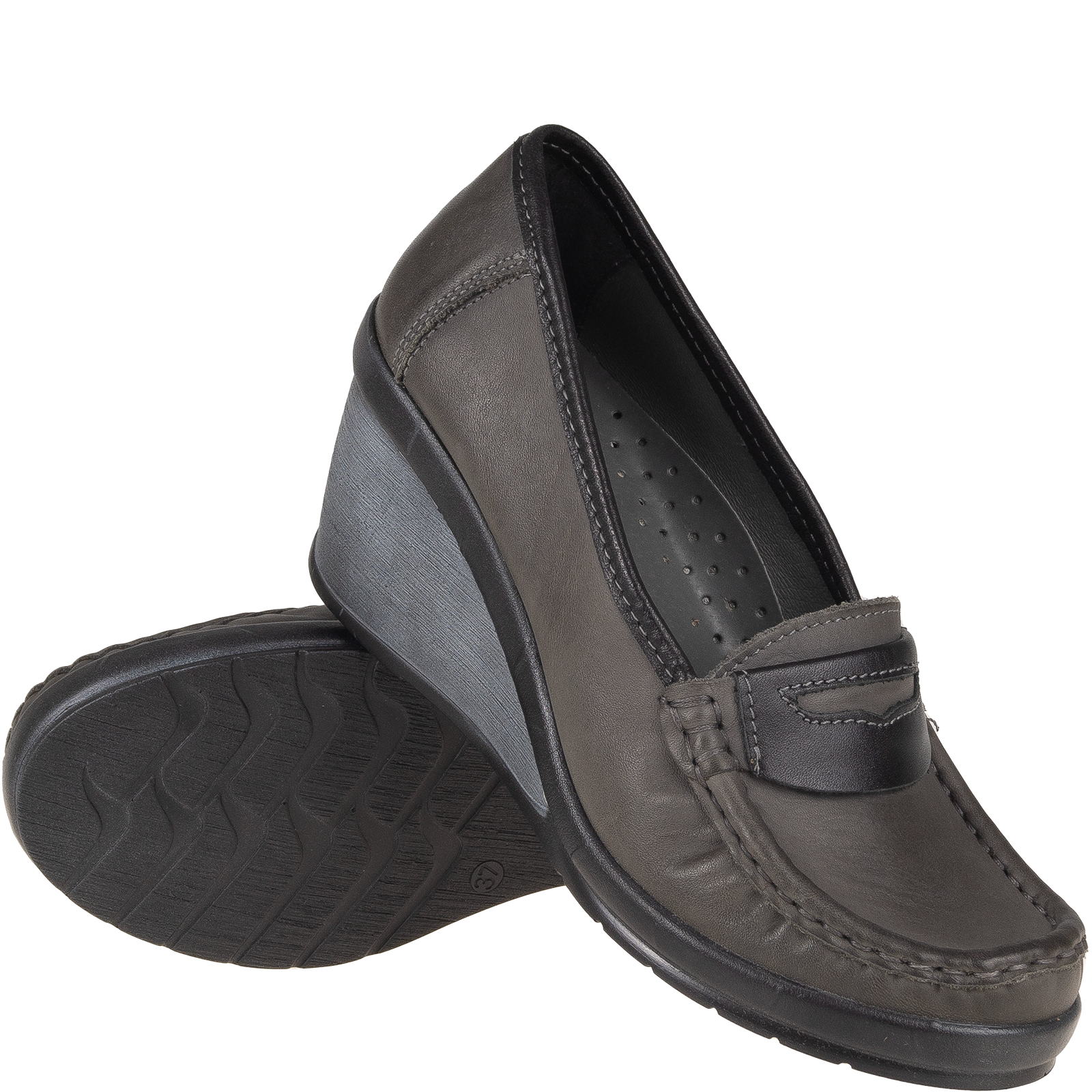 Półbuty na koturnie skórzane Syrena SST 1593/50 grafit-czarny