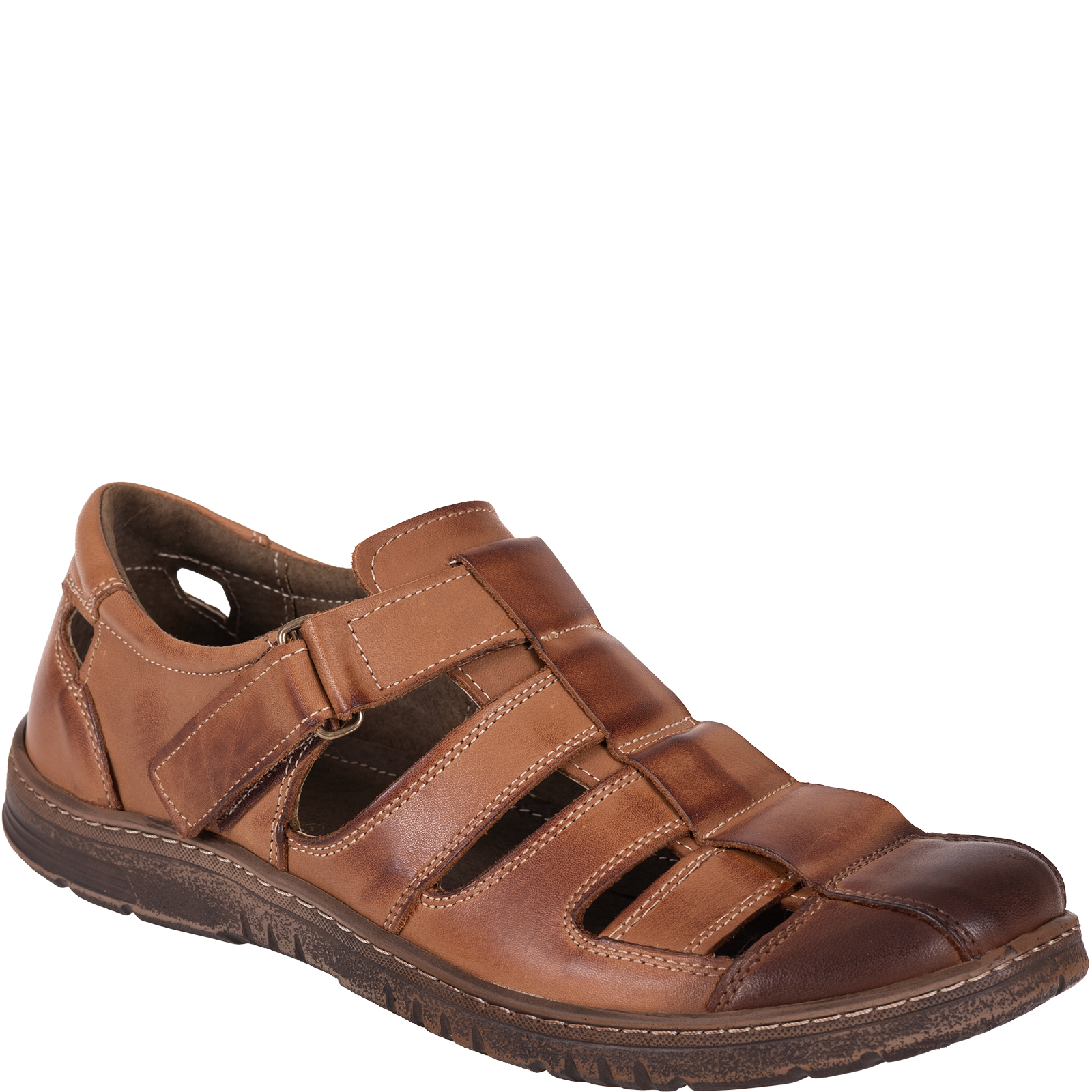 Syrena SI 145A-868 to męskie sandały, które łączą klasykę z wygodą użytkowania. Wykonane w całości z naturalnej skóry w ciepłym odcieniu brązu, gwarantują przewiewność i trwałość – doskonałe na lato i wiosenne dni.