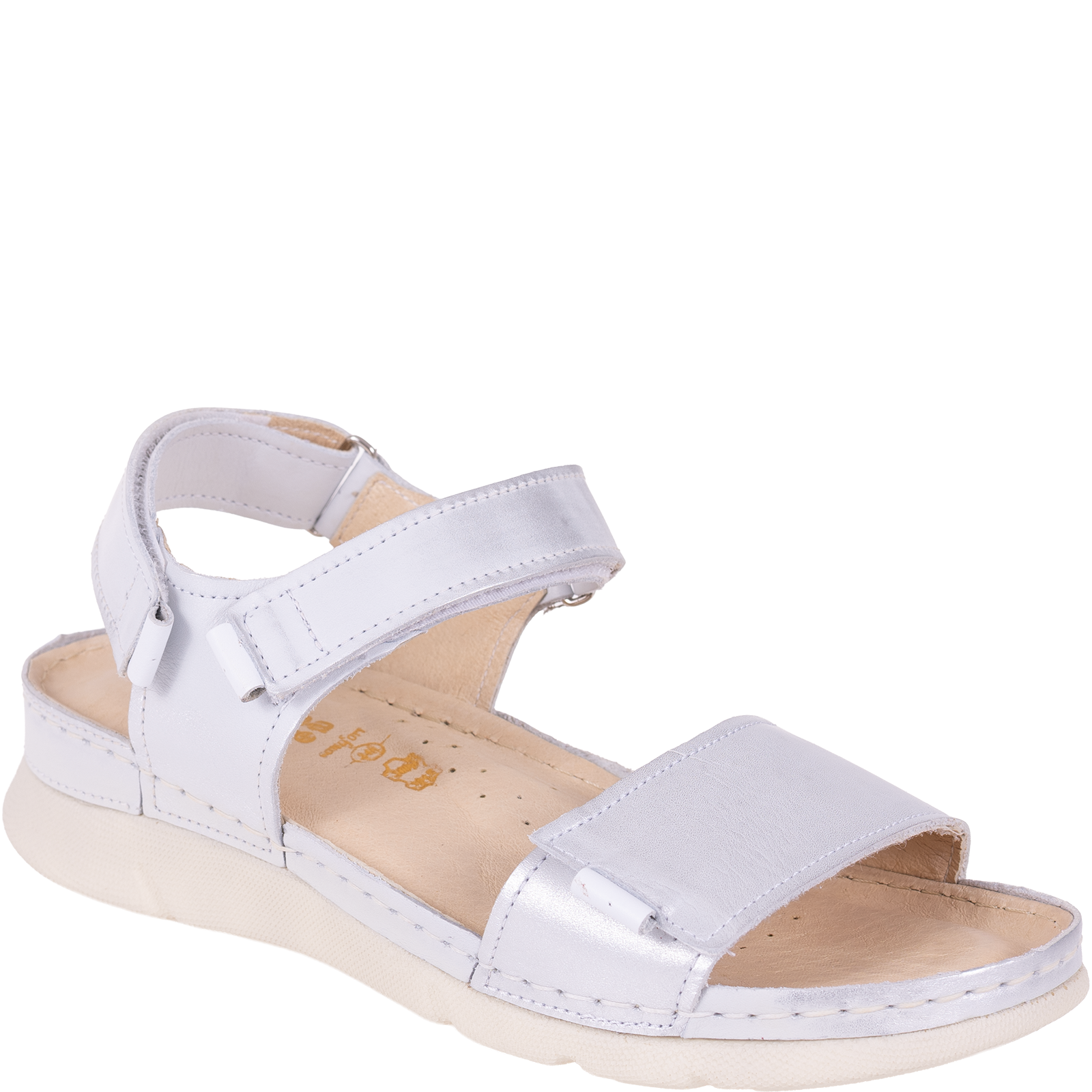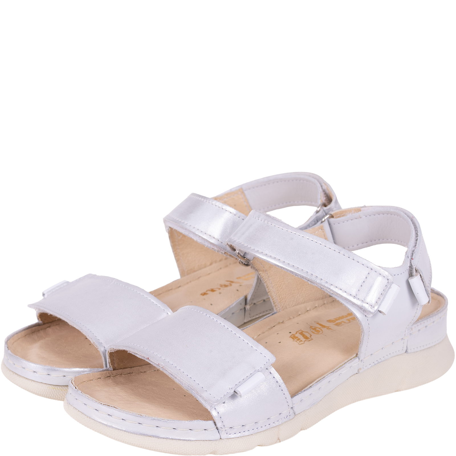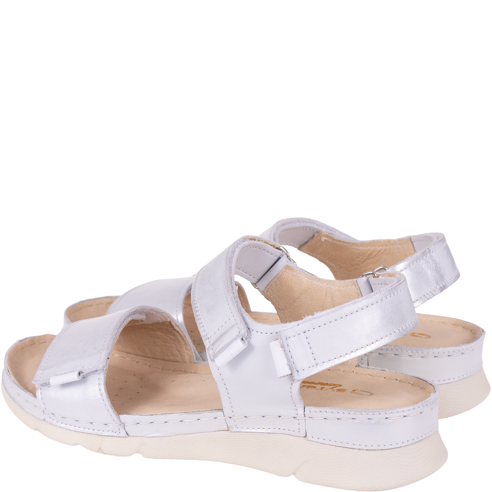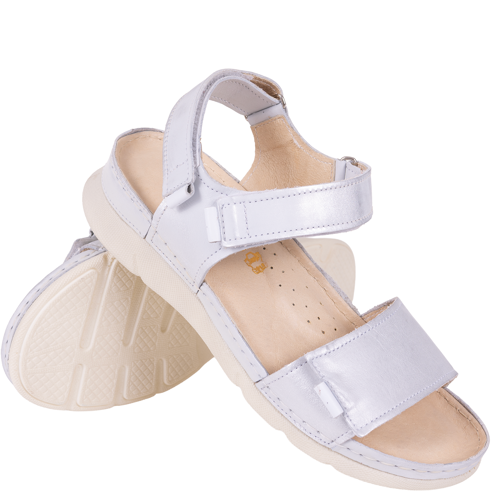 Sandały skórzane damskie marki Syrena SST 990 biało-srebrne