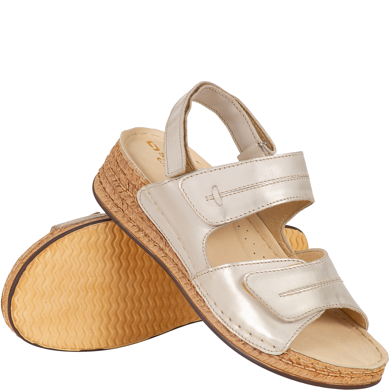 Sandały skórzane damskie marki Syrena SST 993 beżowo-złote