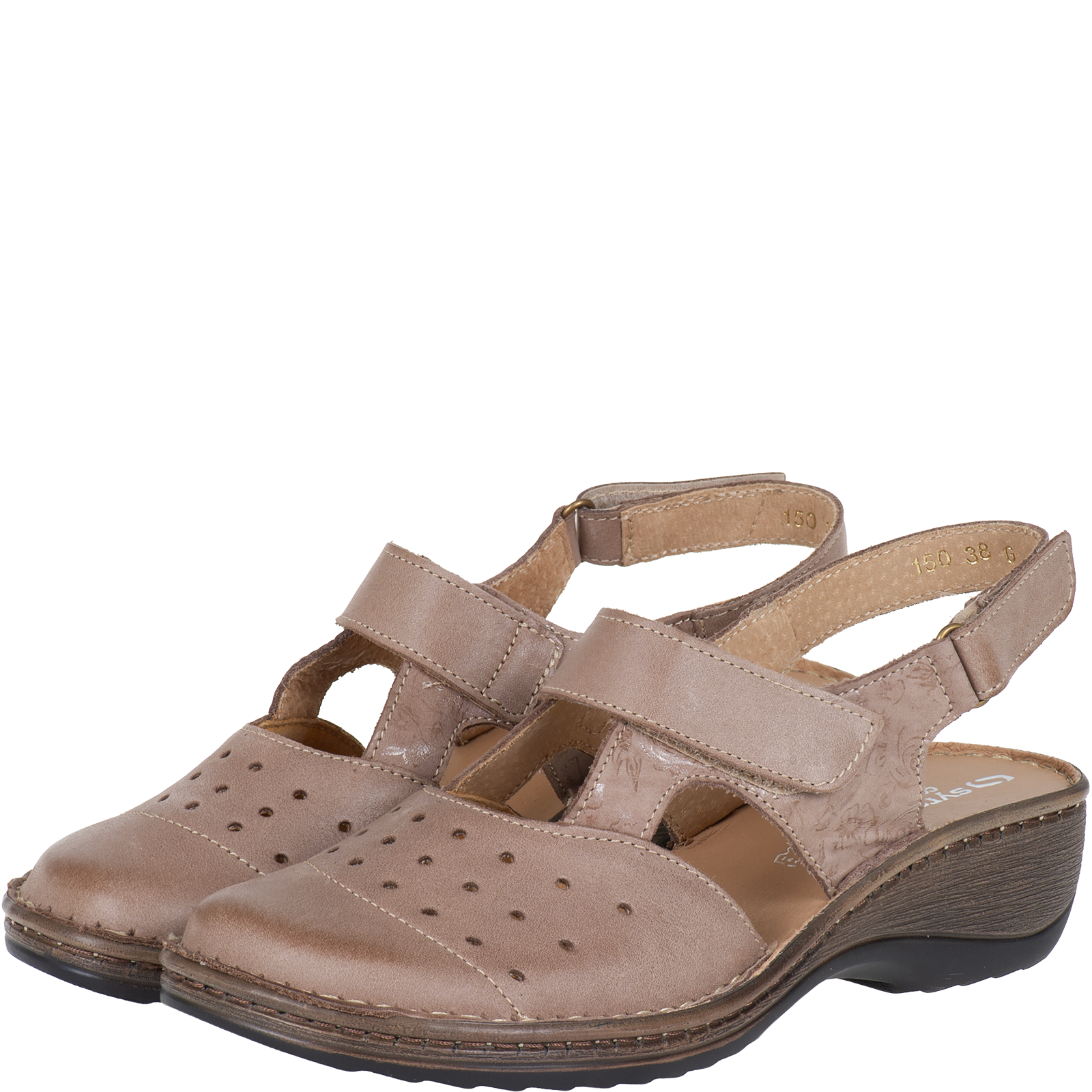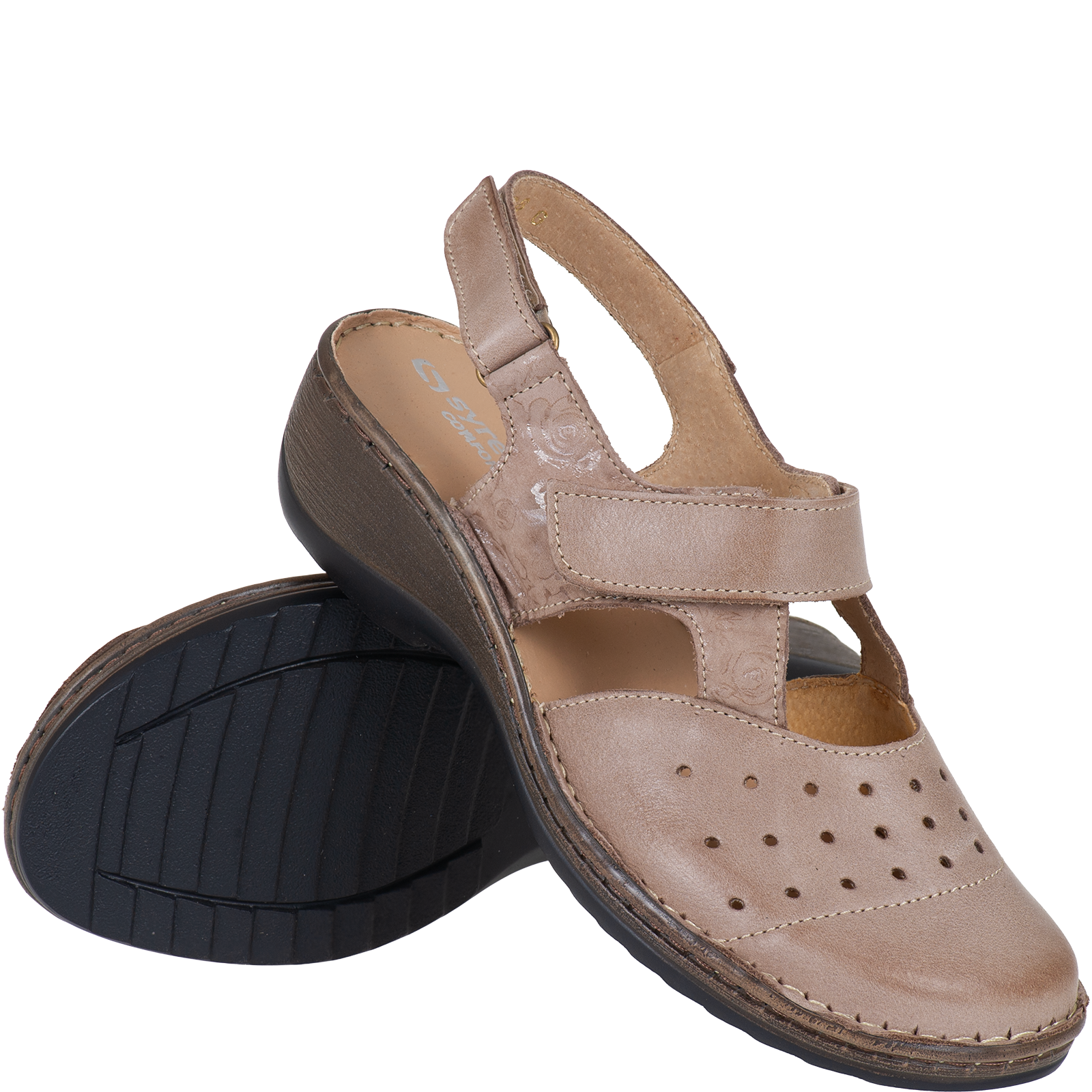 Sandały skórzane na koturnie - Syrena SH 150 beżowe
