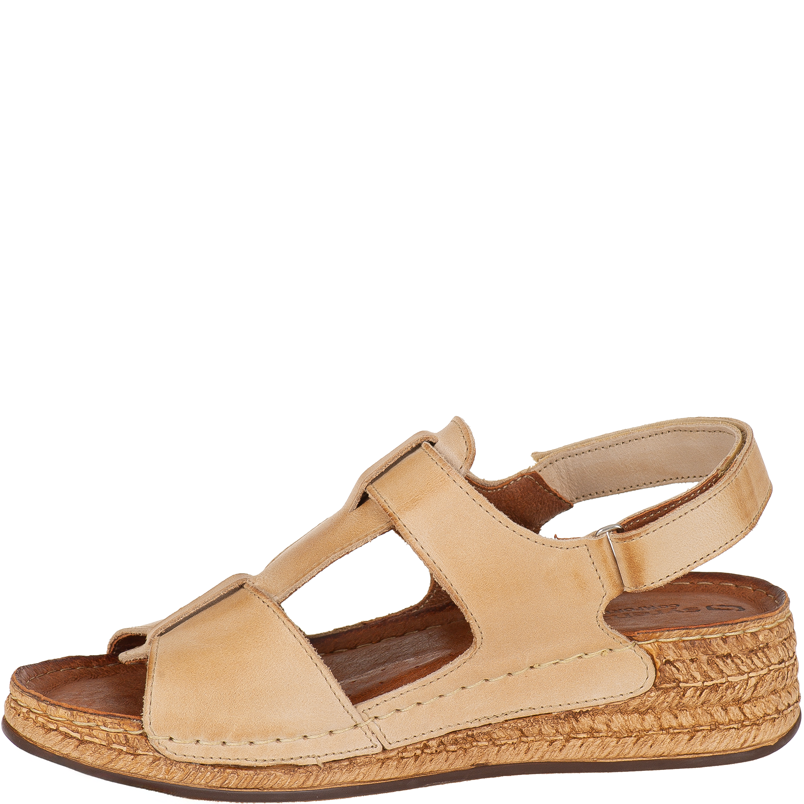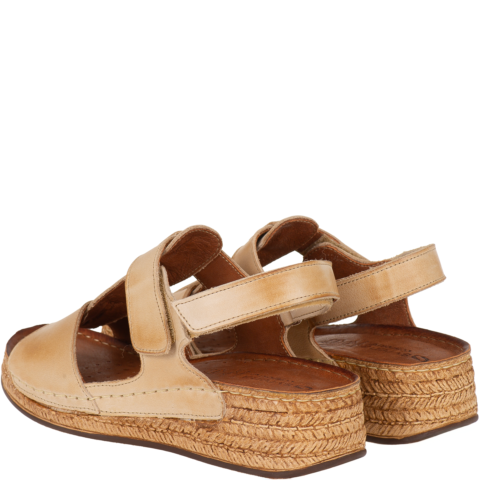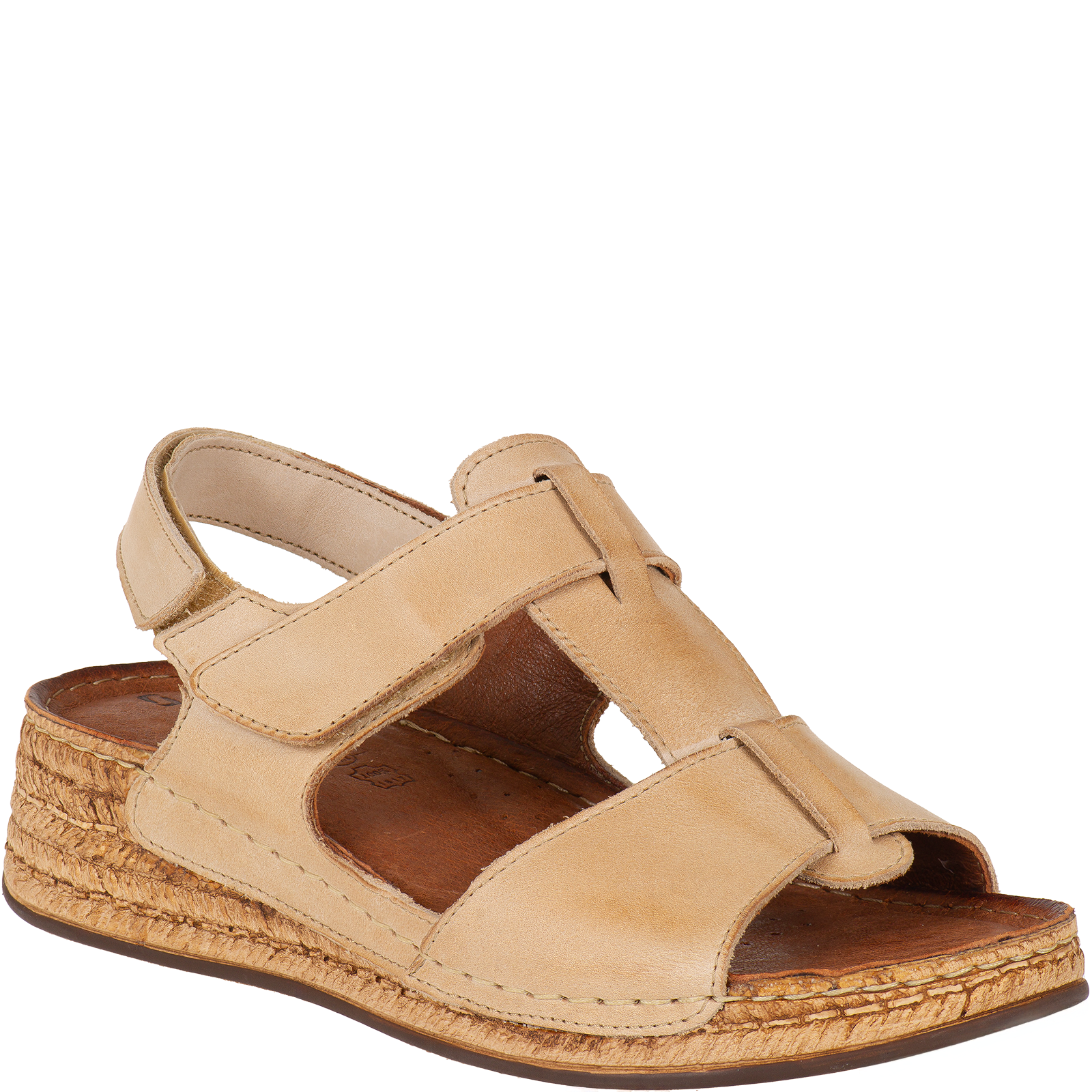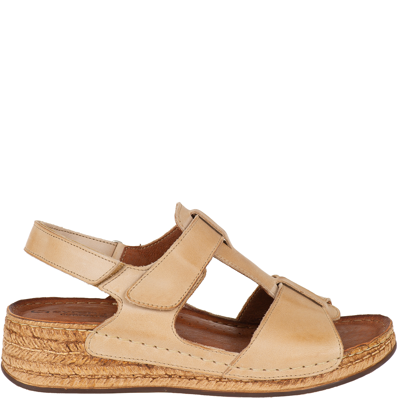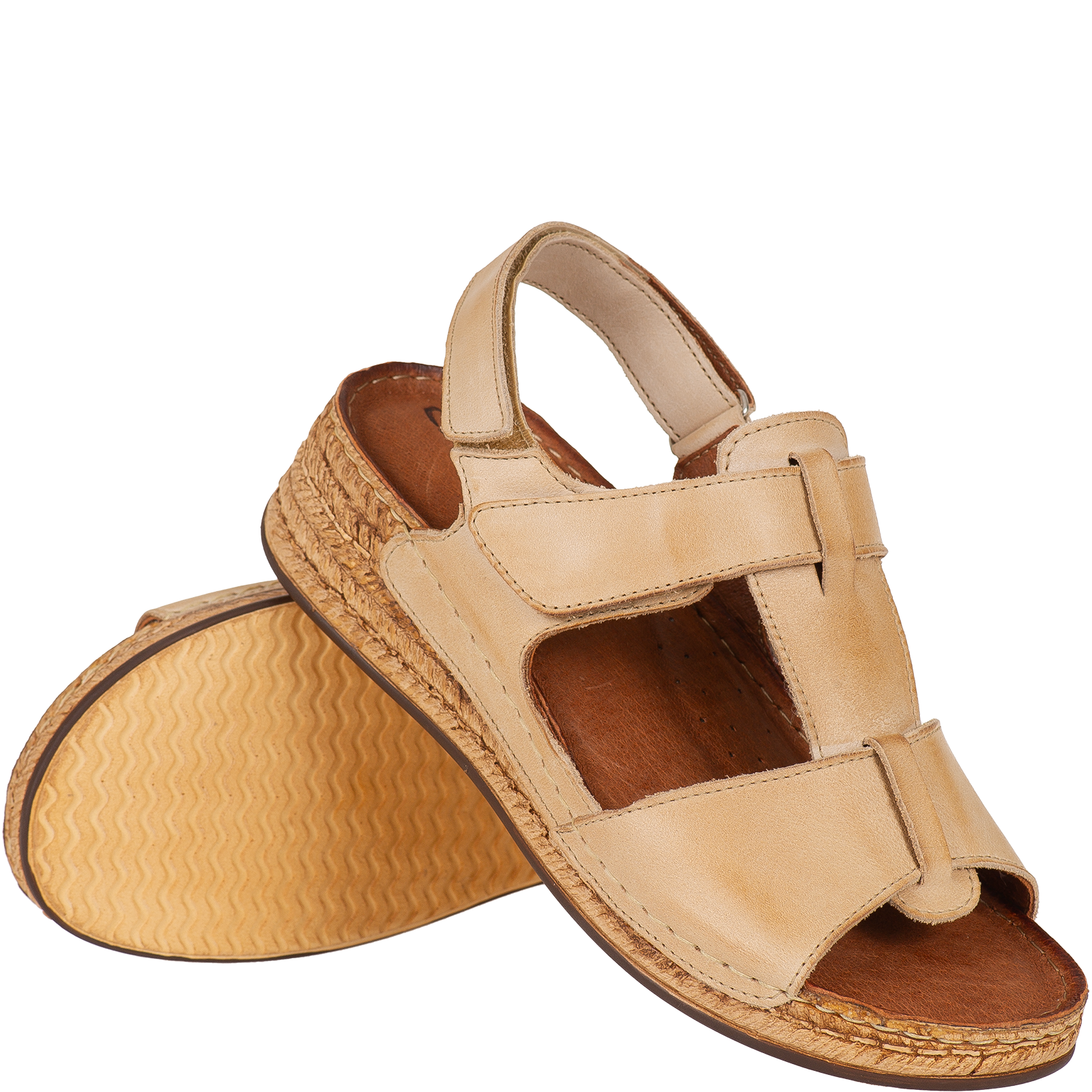 Sandały Syrena SST 995 beżowe - skórzane, na rzep, 4 cm koturna