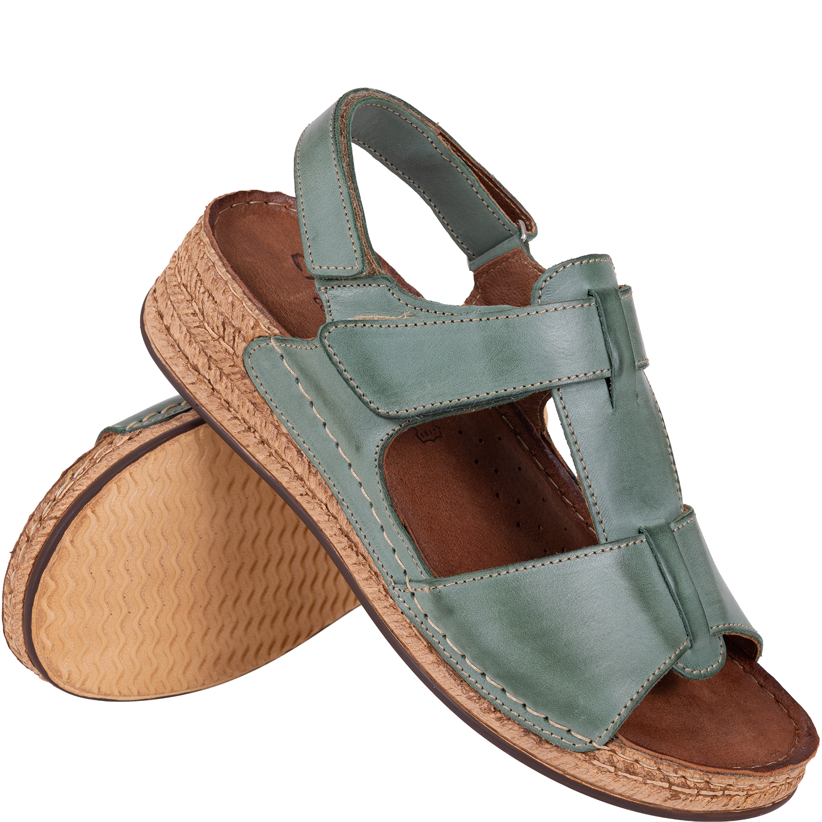 Model Syrena SST 995 w kolorze zielonym to doskonałe połączenie wygody i letniego stylu. Dzięki naturalnej skórze licowej oraz miękkiej wkładce sandały gwarantują komfort nawet podczas wielogodzinnego noszenia. Regulowane zapięcie na rzep ułatwia dopasowanie buta do stopy, a stabilna 4-centymetrowa koturna zapewnia idealne podparcie i lekkość kroku. To model stworzony dla kobiet ceniących elegancję i funkcjonalność.