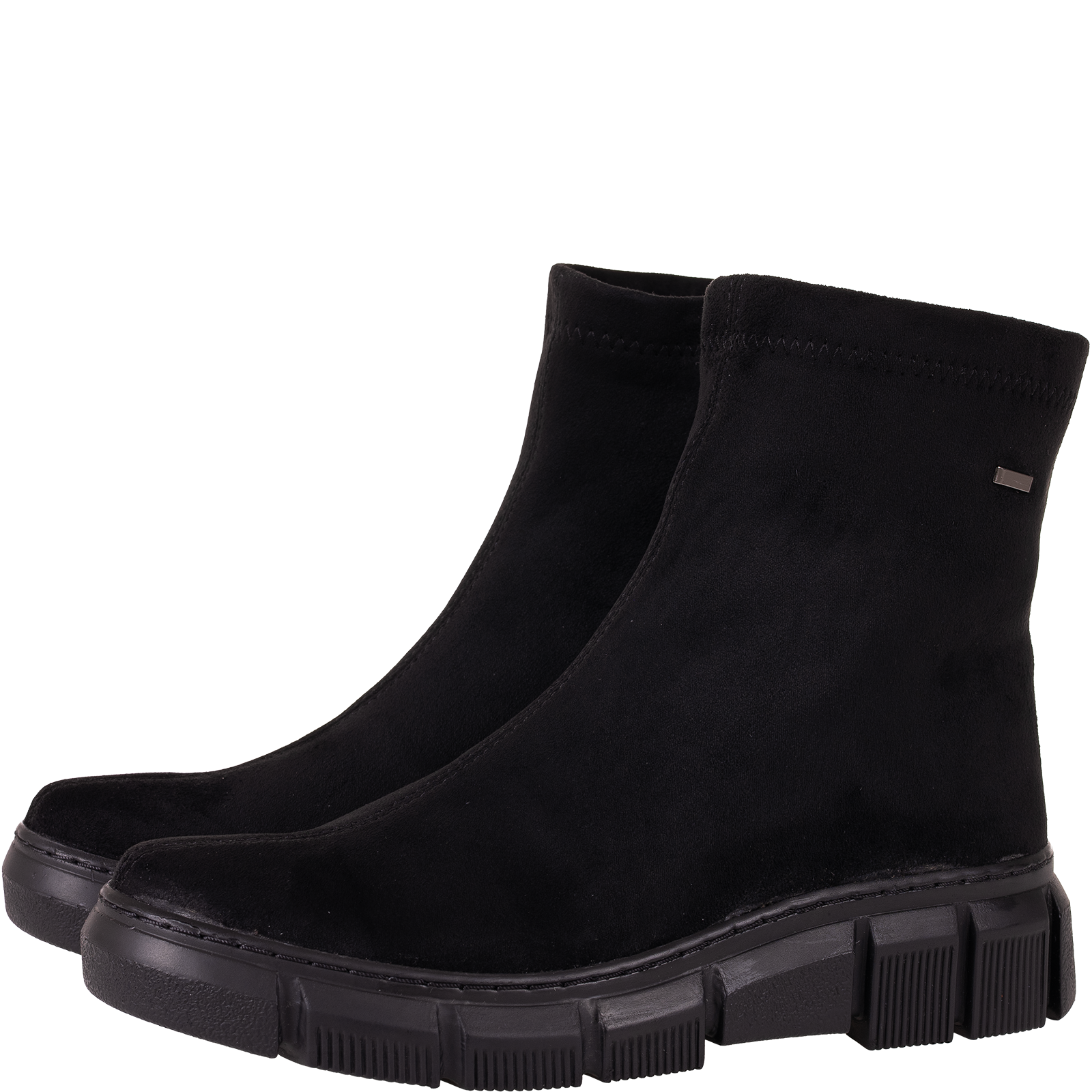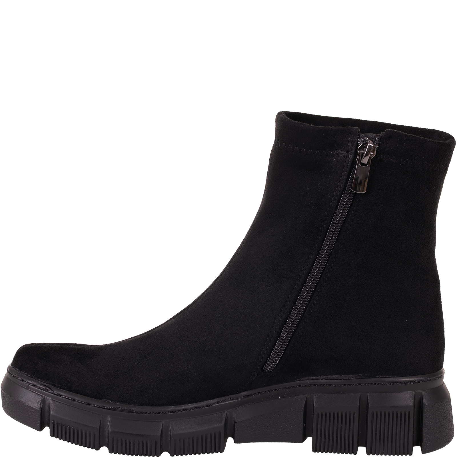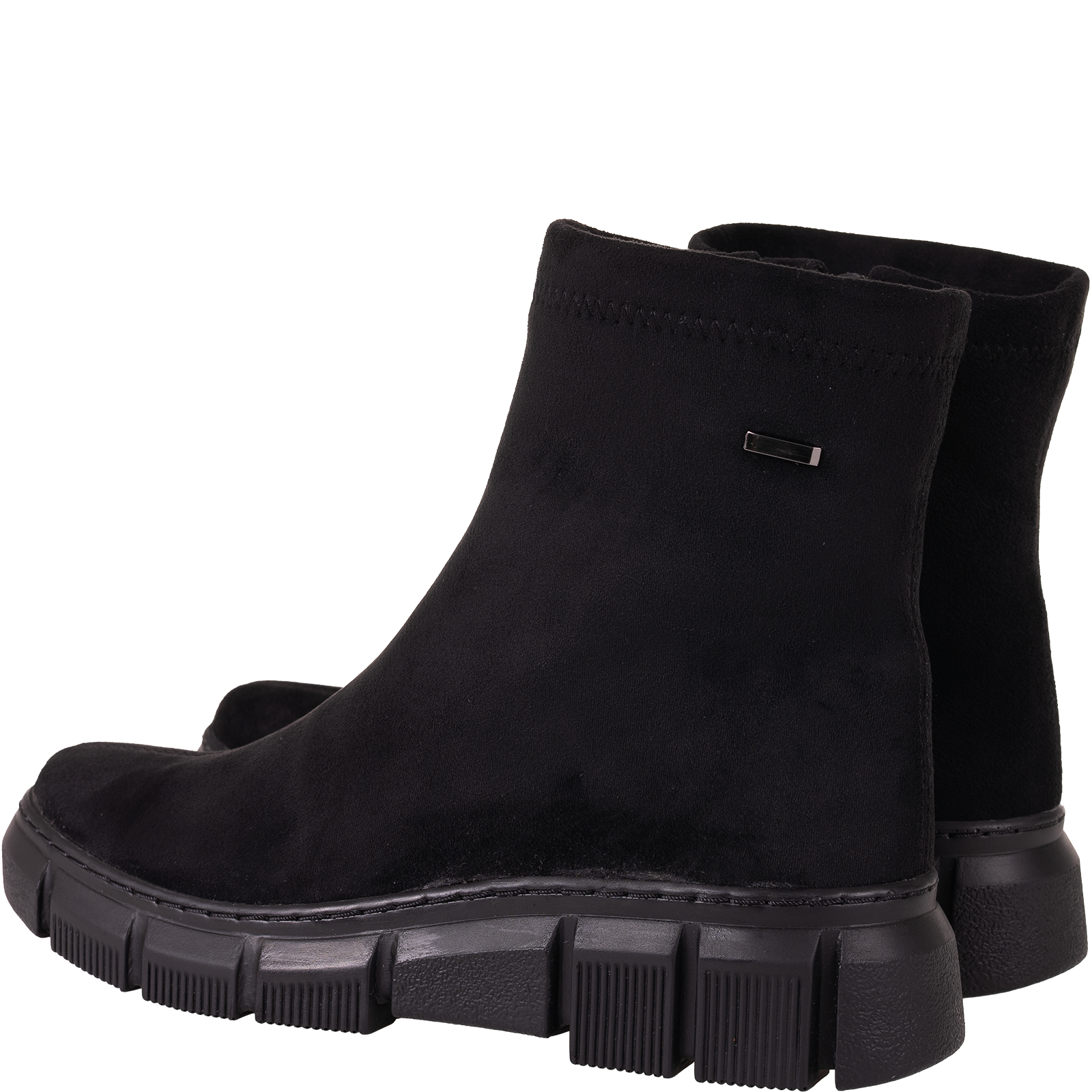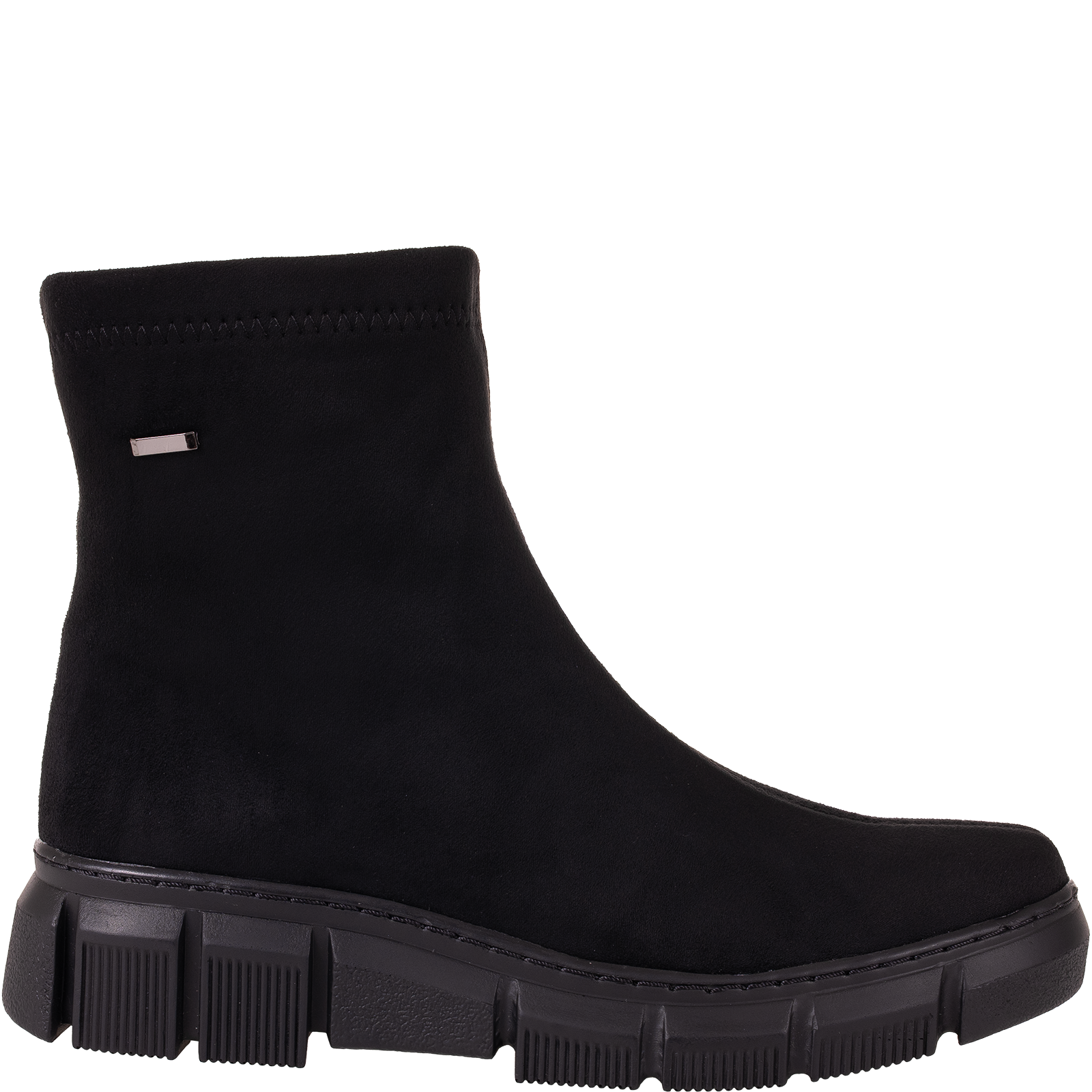 Model Syrena SH Komfort 506S to propozycja dla kobiet, które cenią modny wygląd, lekkość oraz wygodę na co dzień. Te czarne botki wykonane są z elastycznej tkaniny stretch przypominającej delikatny zamsz, dzięki czemu świetnie dopasowują się do stopy i prezentują się wyjątkowo elegancko.