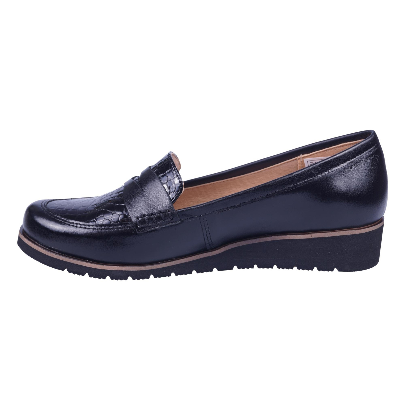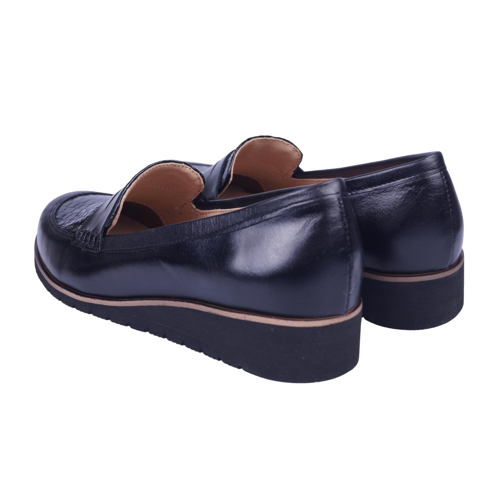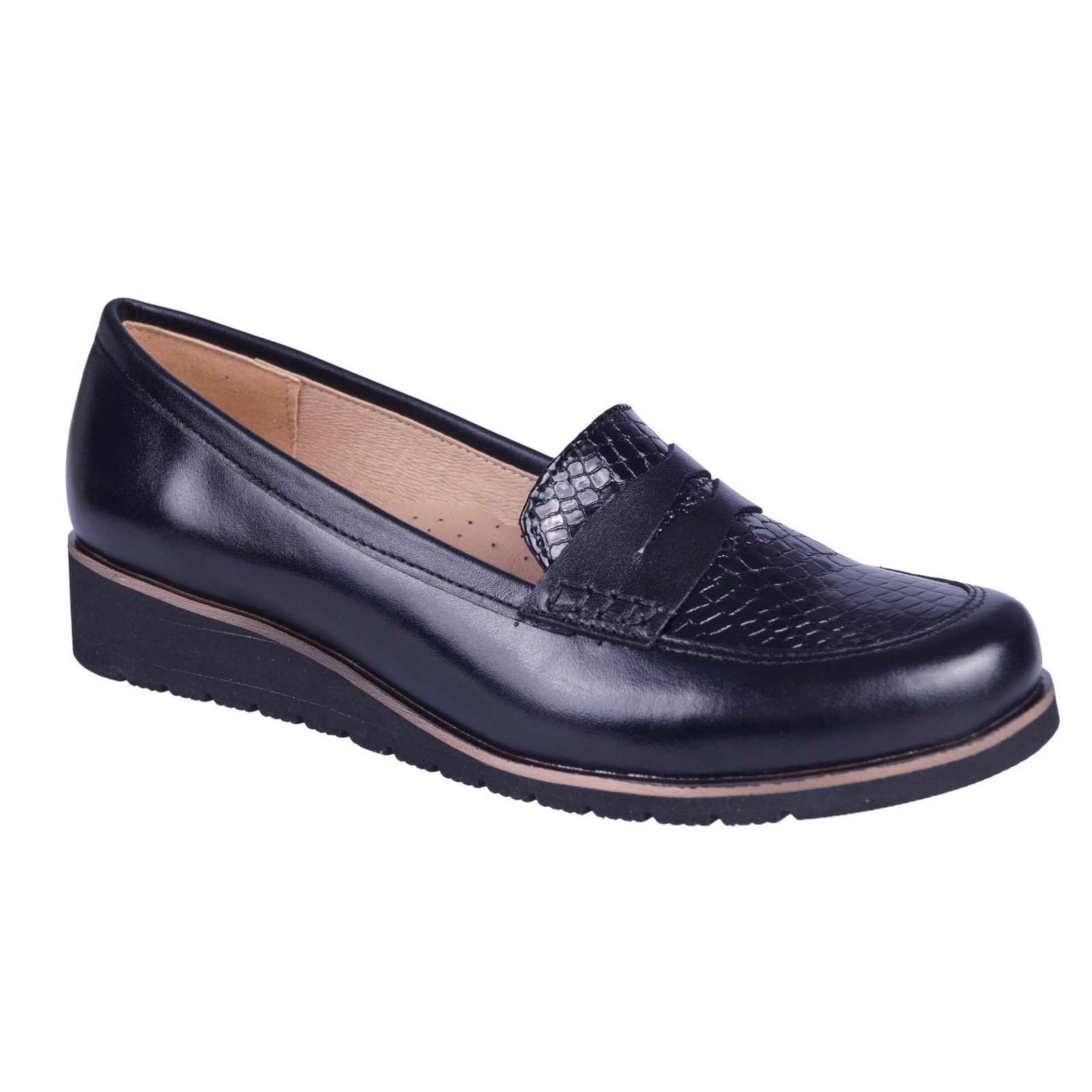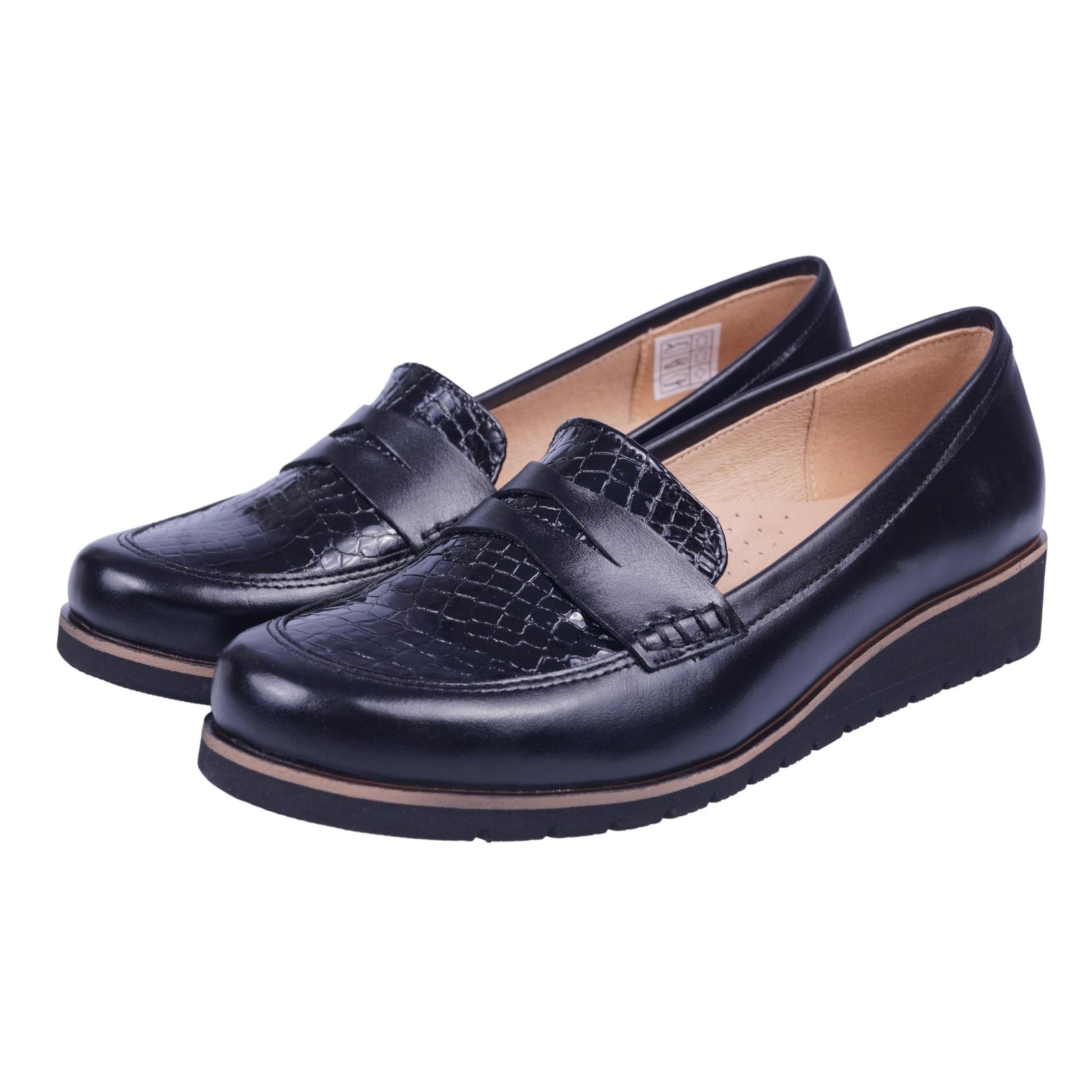 Półbuty zostały wykonane w całości ze skór naturalnych, gustowne połączenie skóry licowej z tak zwaną łuską dodaje elegancji.