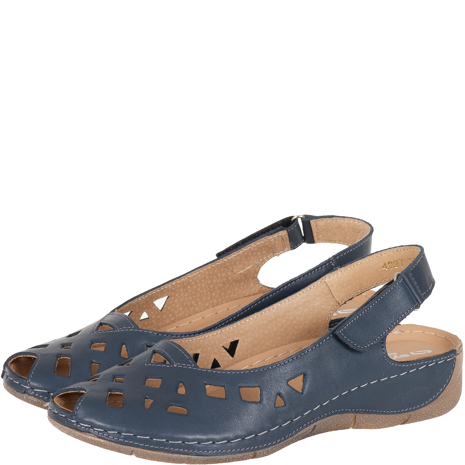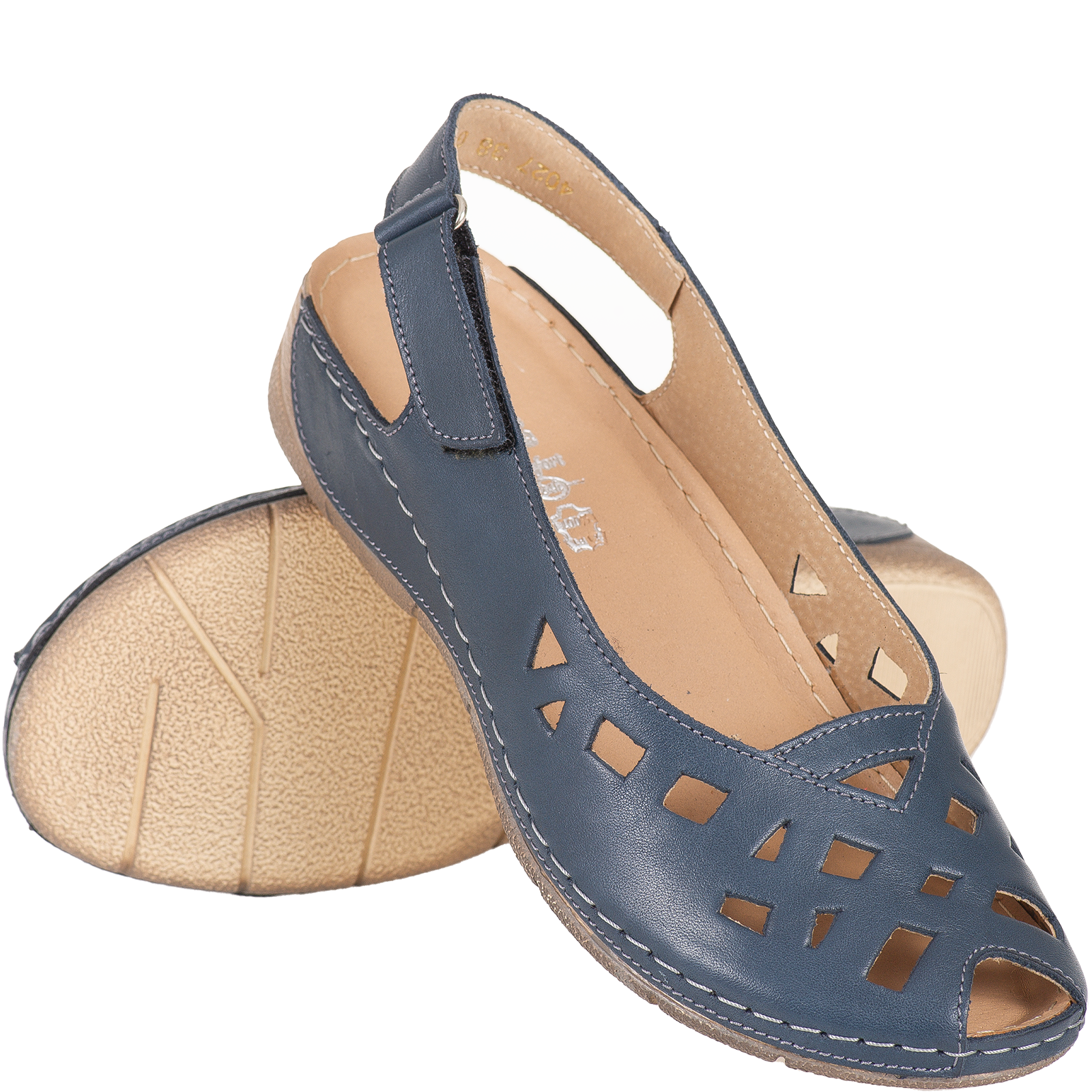 Sandały damskie polskiej marki Syrena SH 4027 – skórzane buty na lato w kolorze granatowym