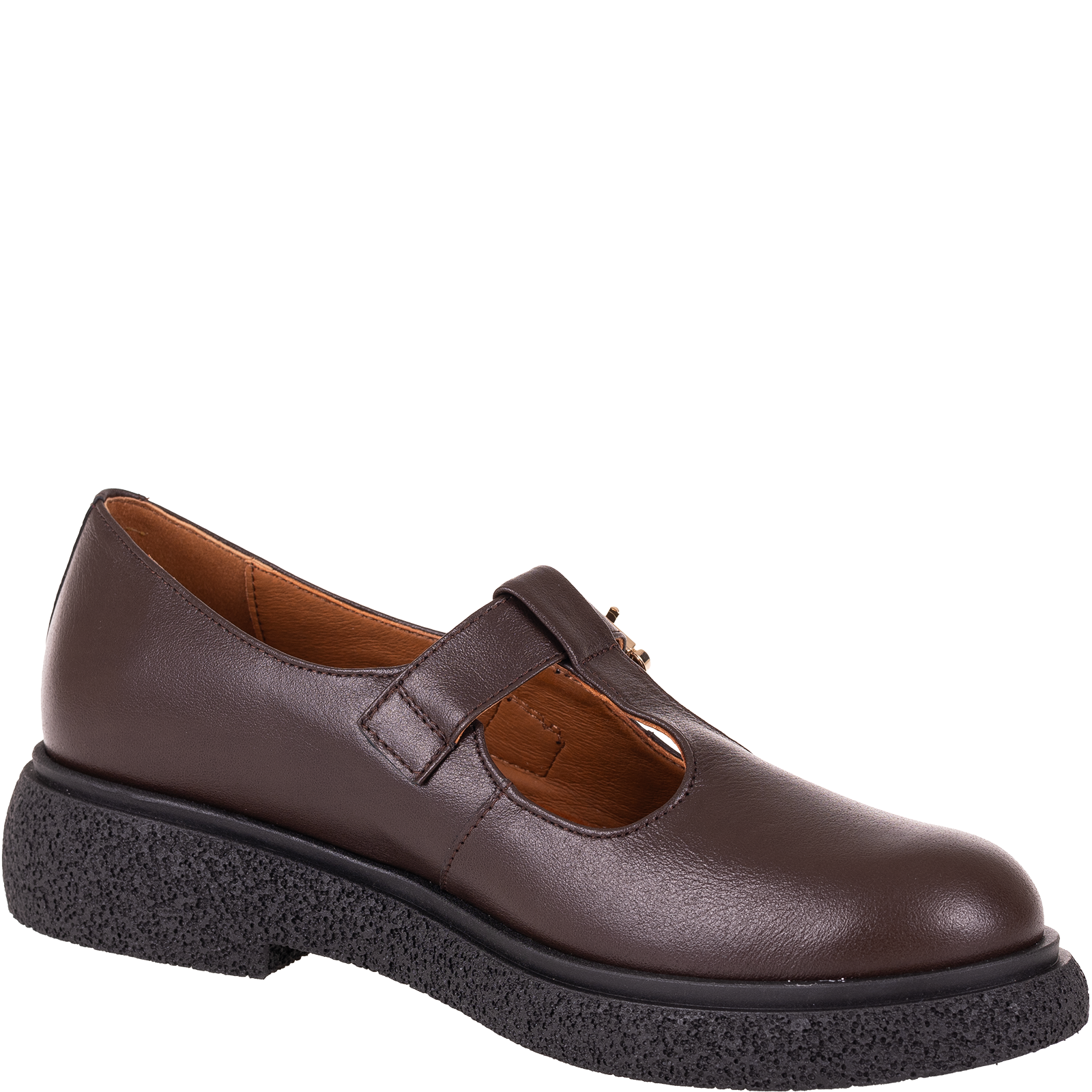 Syrena SGO 2093 - czekoladowe półbuty damskie ze skóry naturalnej