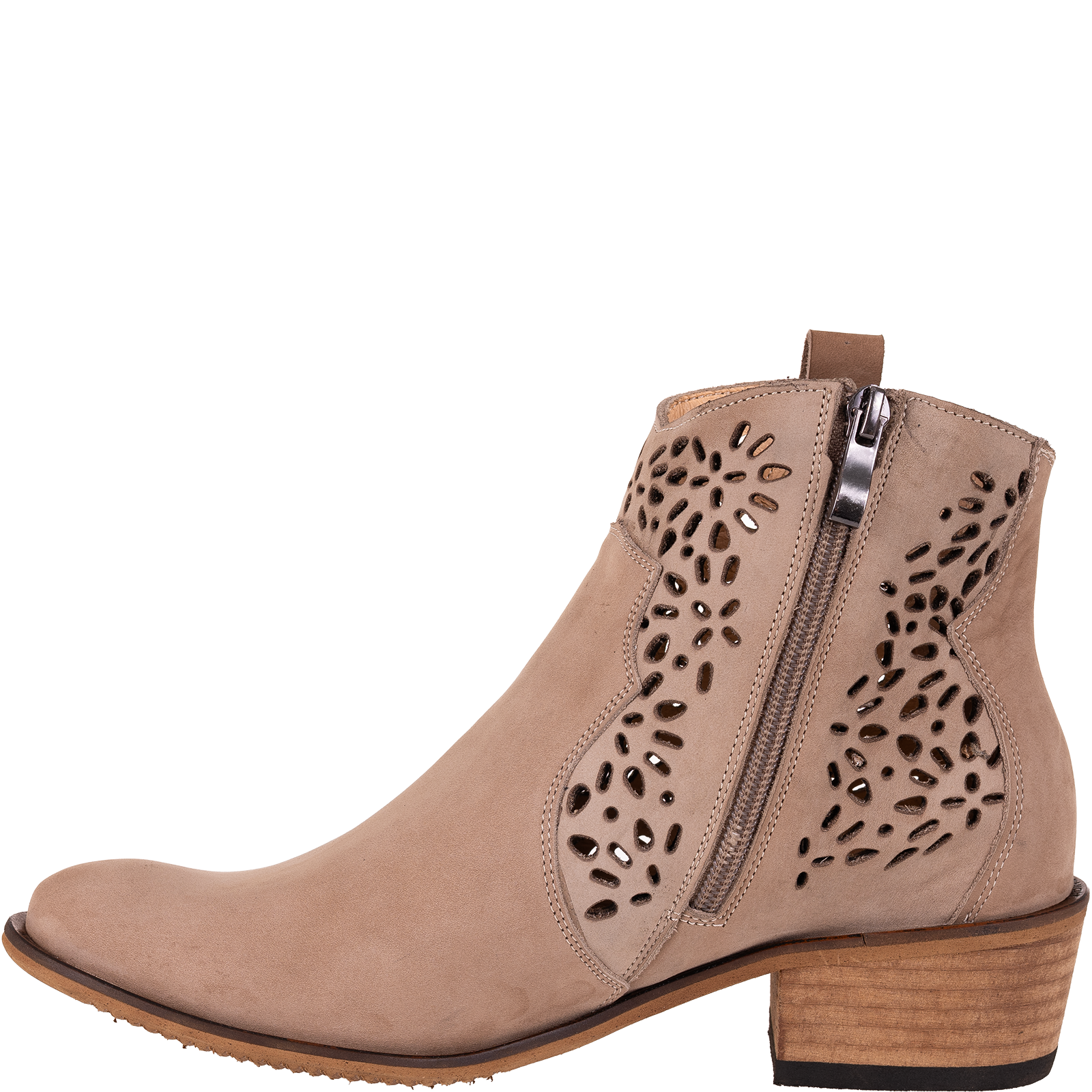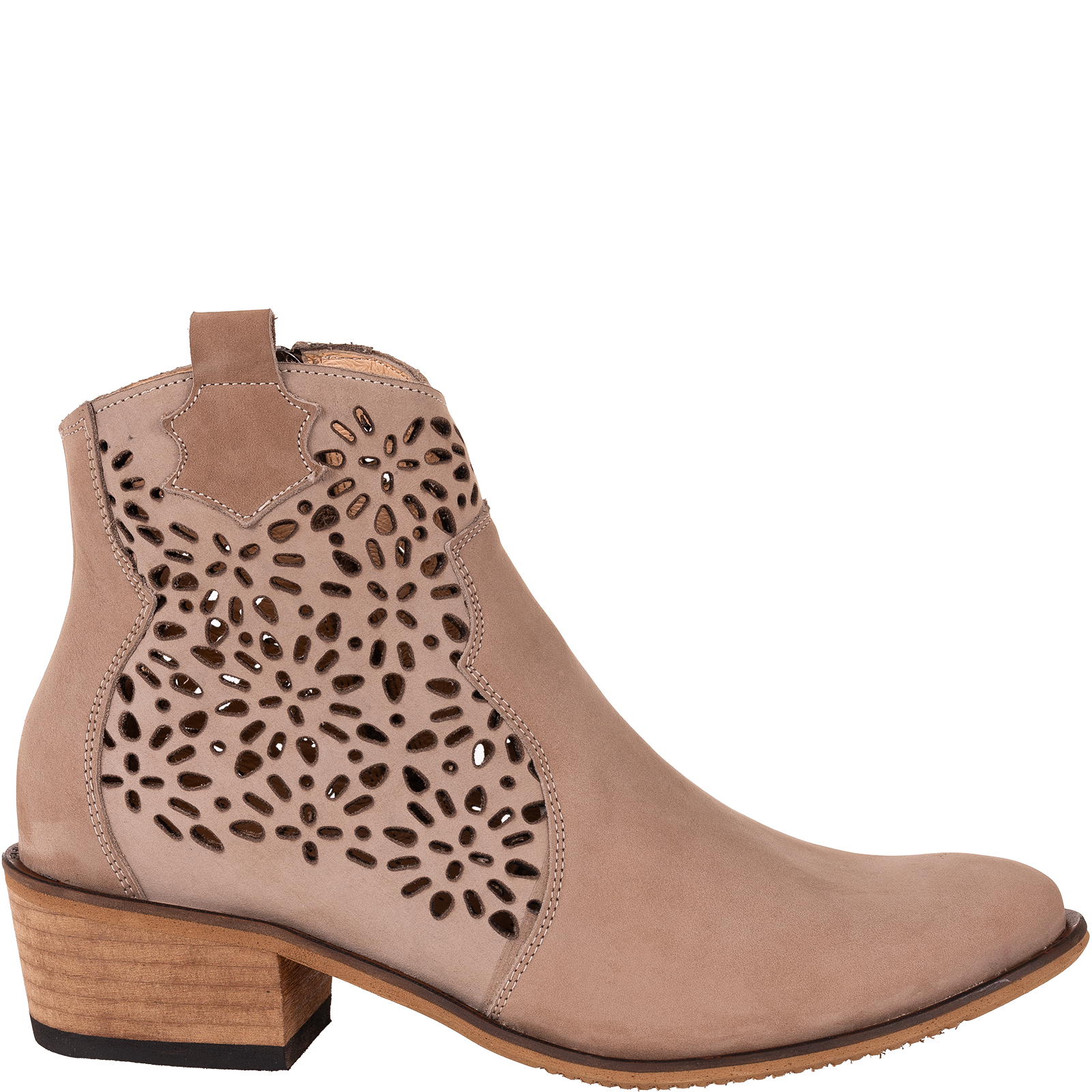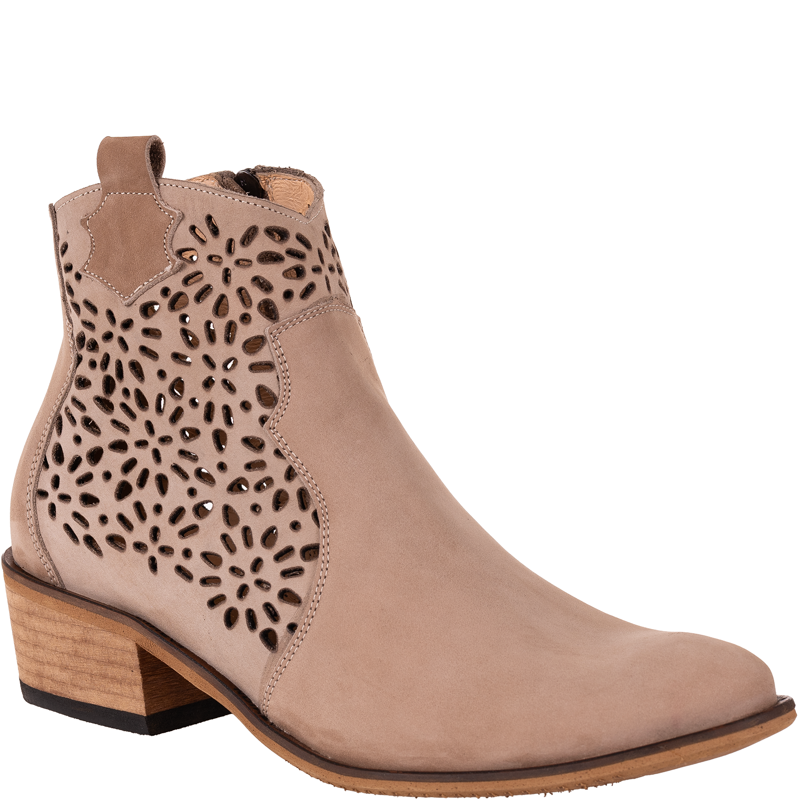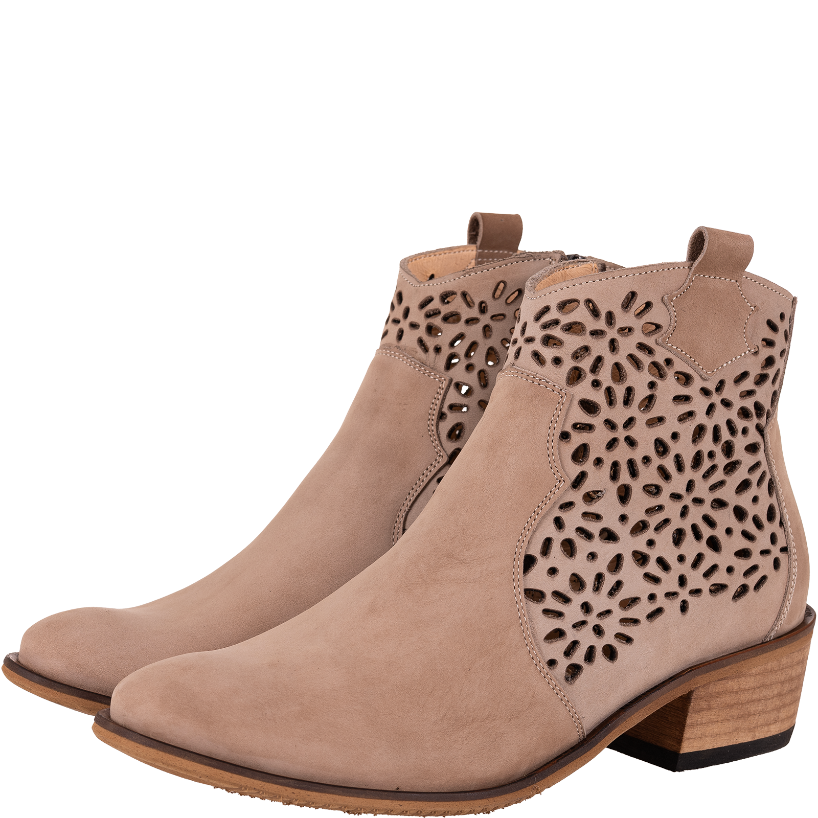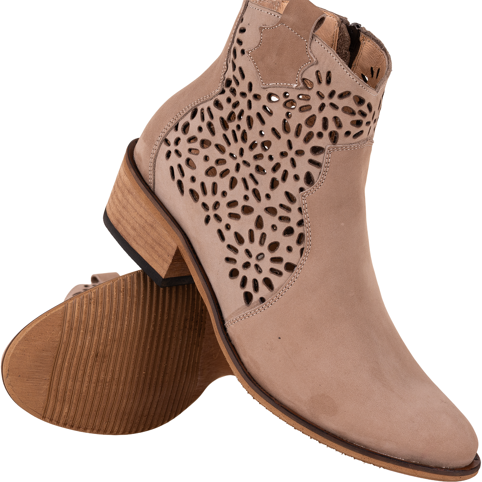 Naturalny nubuk to materiał nie tylko trwały i estetyczny, ale również oddychający. Ażurowe wycięcia w przedniej części cholewki podkreślają kobiecy charakter butów, zapewniając jednocześnie odpowiednią wentylację.