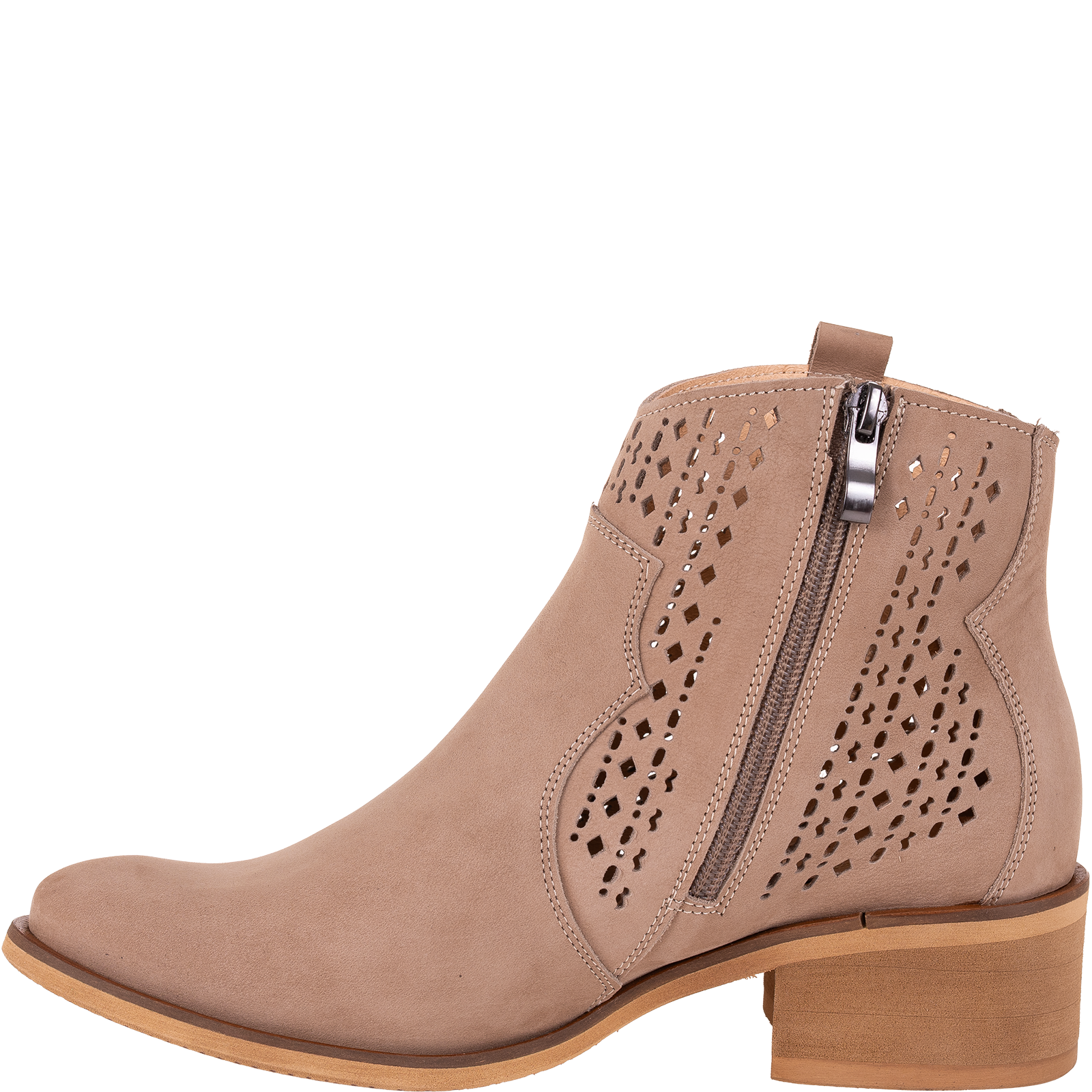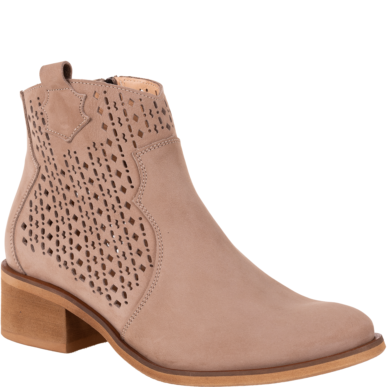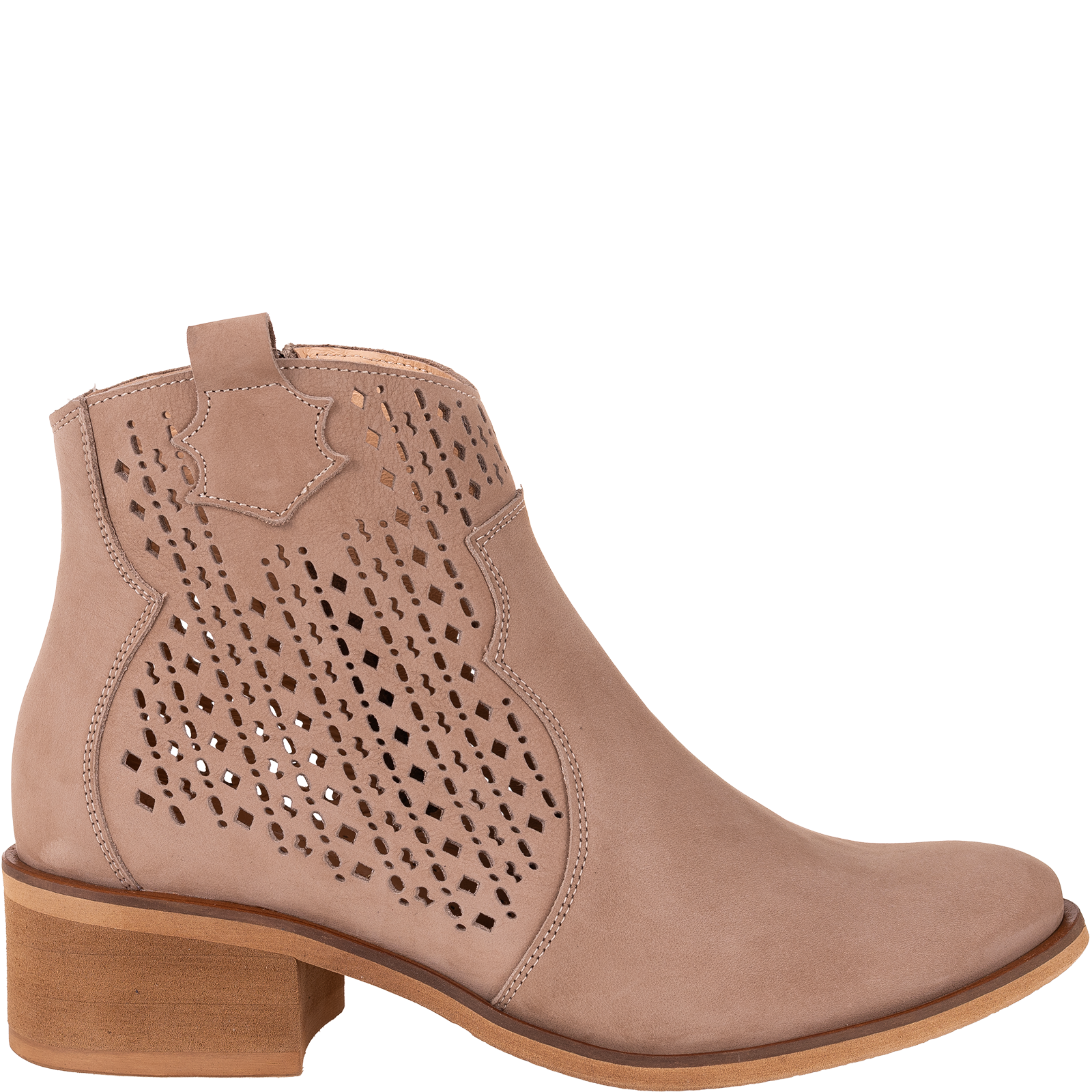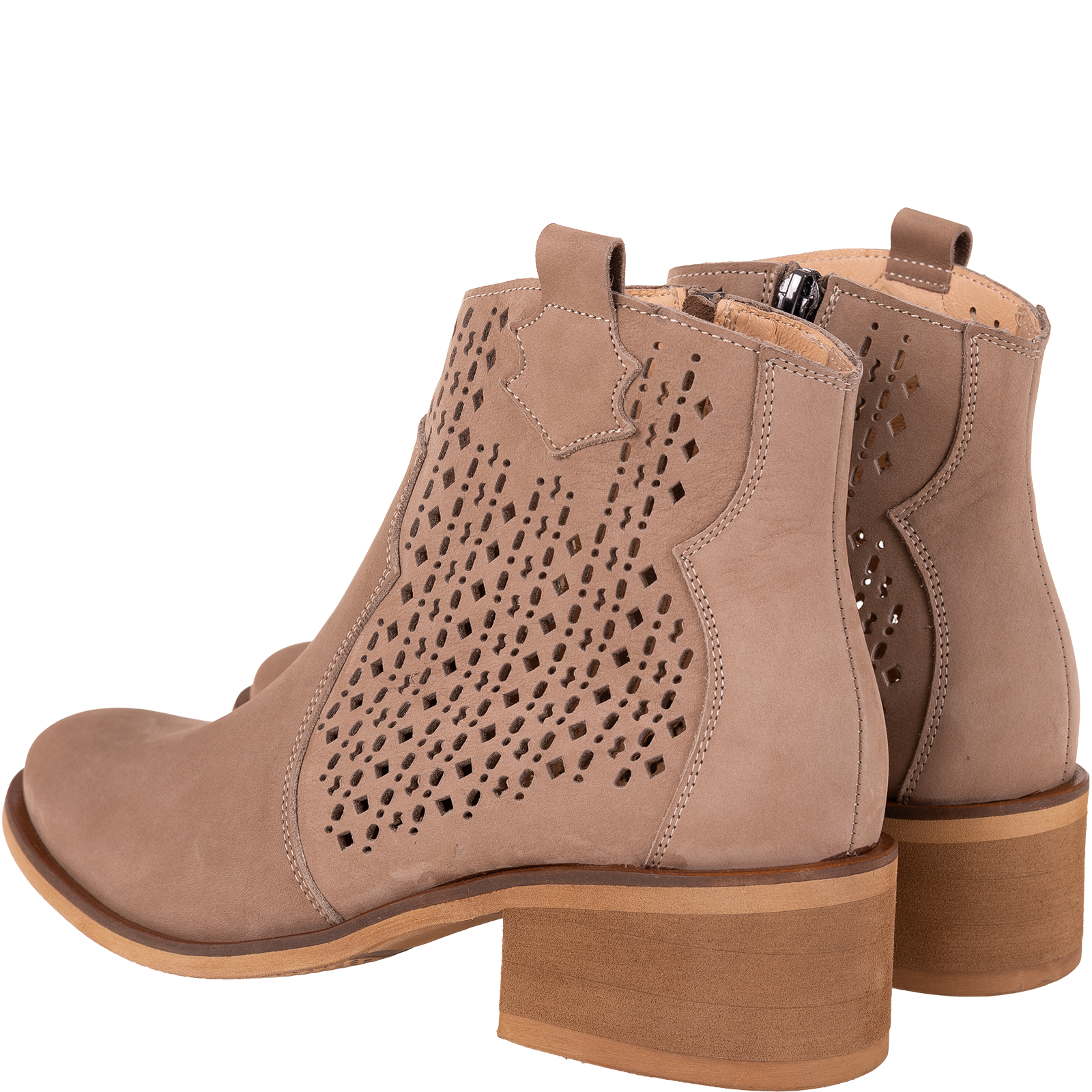 Naturalny nubuk to materiał nie tylko trwały i estetyczny, ale również oddychający. Ażurowe wycięcia w przedniej części cholewki podkreślają kobiecy charakter butów, zapewniając jednocześnie odpowiednią wentylację.