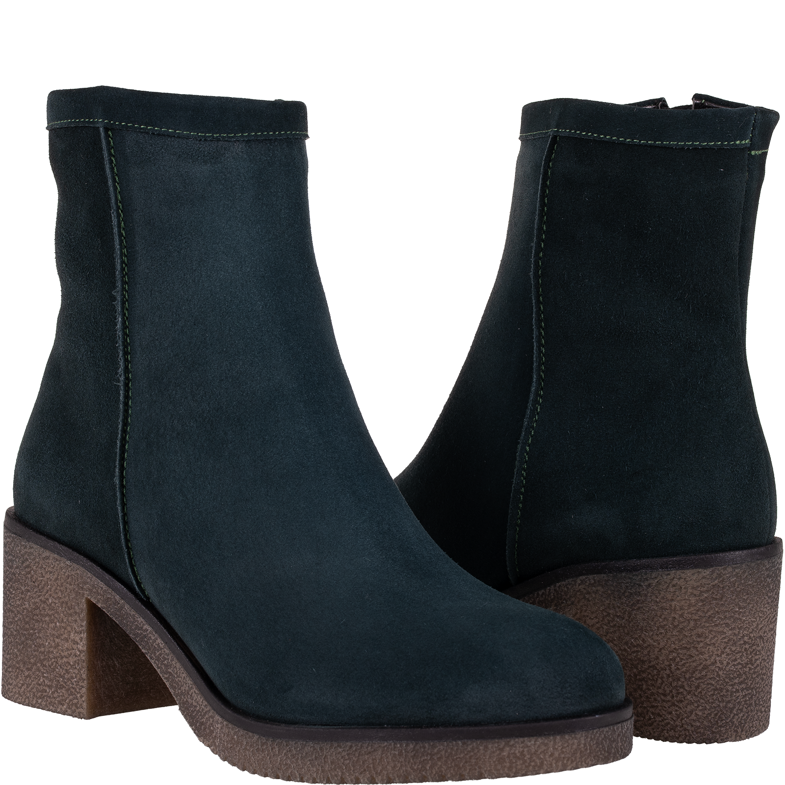 Zielone botki damskie Syrena STA 4130 - welurowe, ocieplane i stylowe