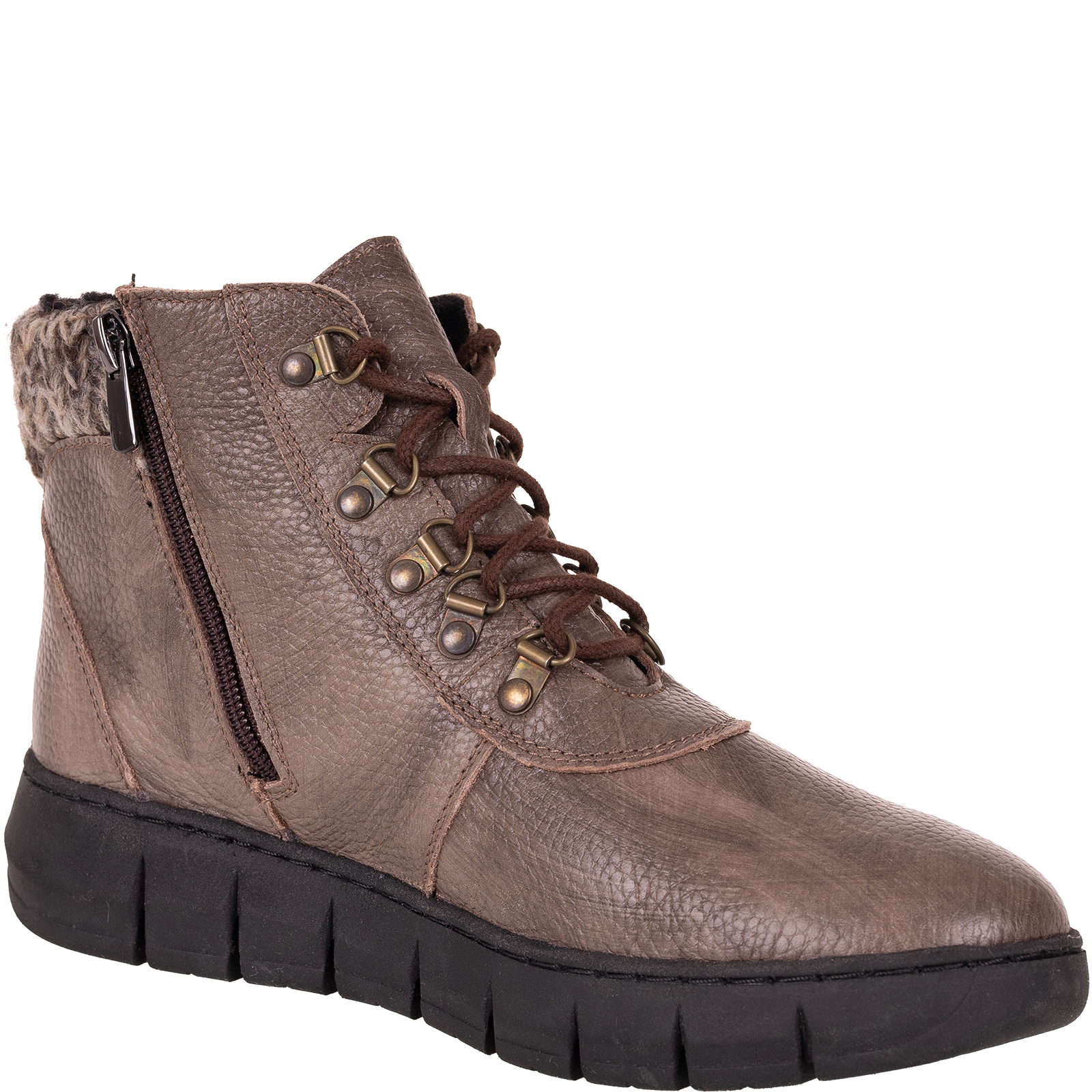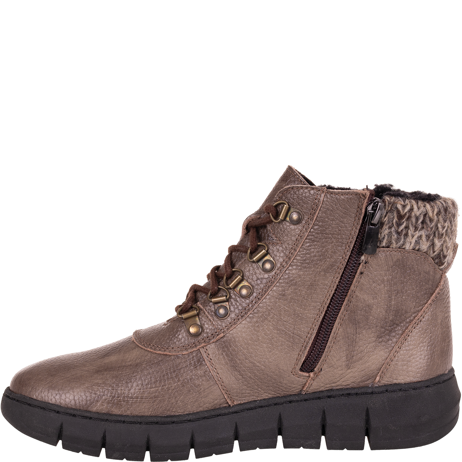 Buty posiadają podwójny system zapięcia – tradycyjne sznurowanie pozwala dopasować obuwie do kształtu stopy, a boczny zamek błyskawiczny umożliwia szybkie zakładanie i zdejmowanie. To praktyczne rozwiązanie dla kobiet ceniących wygodę i funkcjonalność w codziennym użytkowaniu.